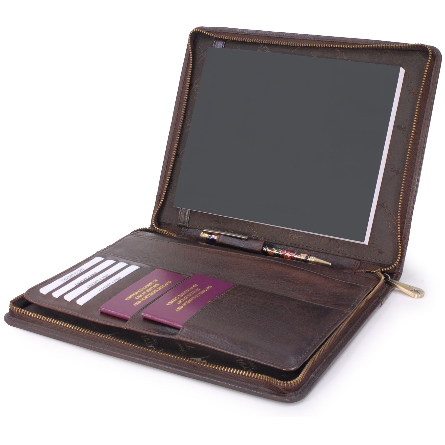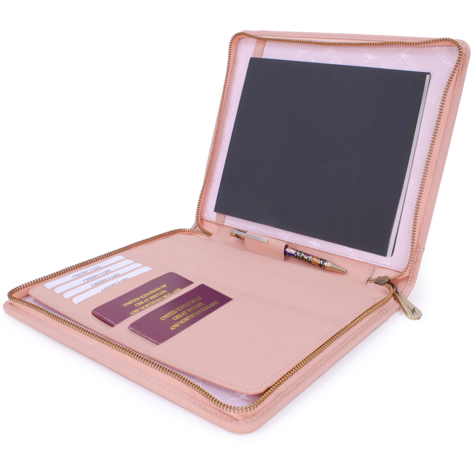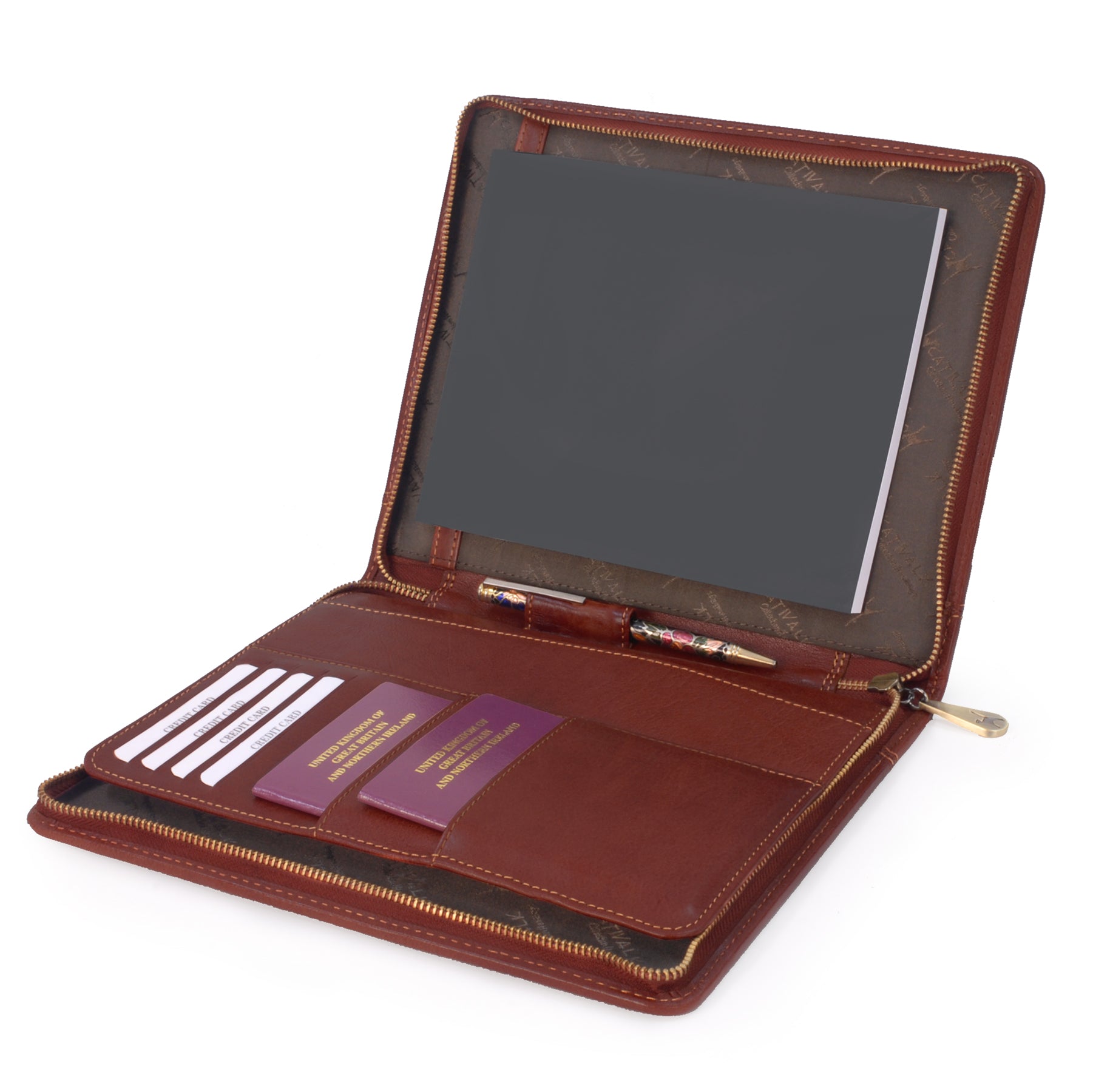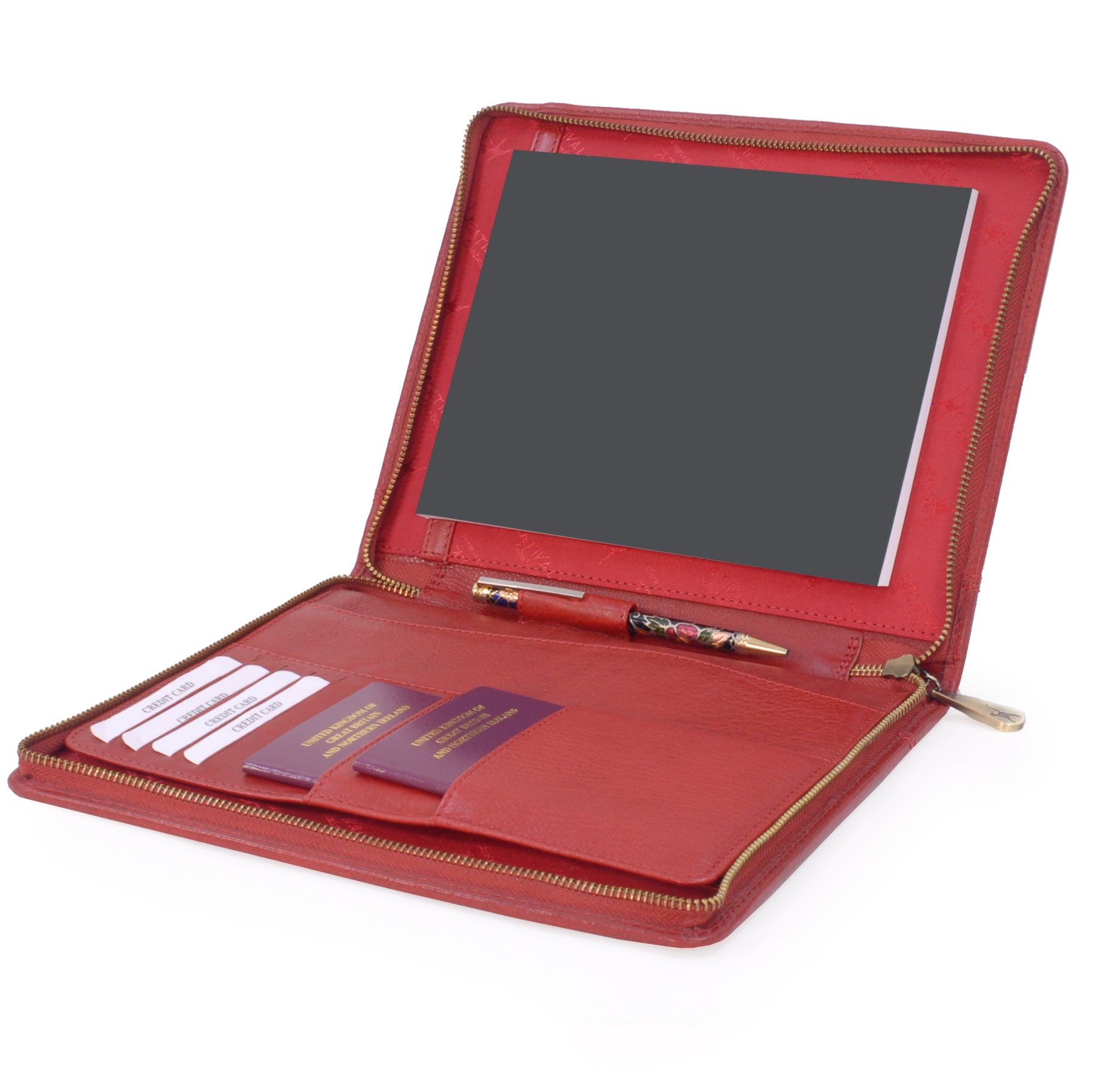This neat zip folder is designed to be comfortably carried under the arm. Organisational features include pockets for pen, business cards and A5 notepad. You can tuck a tablet behind the interior leather sleeve.Fits: (iPad, iPad Mini, iPad Air, iPad Pro 11”, tablets, Galaxy Tab 3, 4, 5, A etc.)