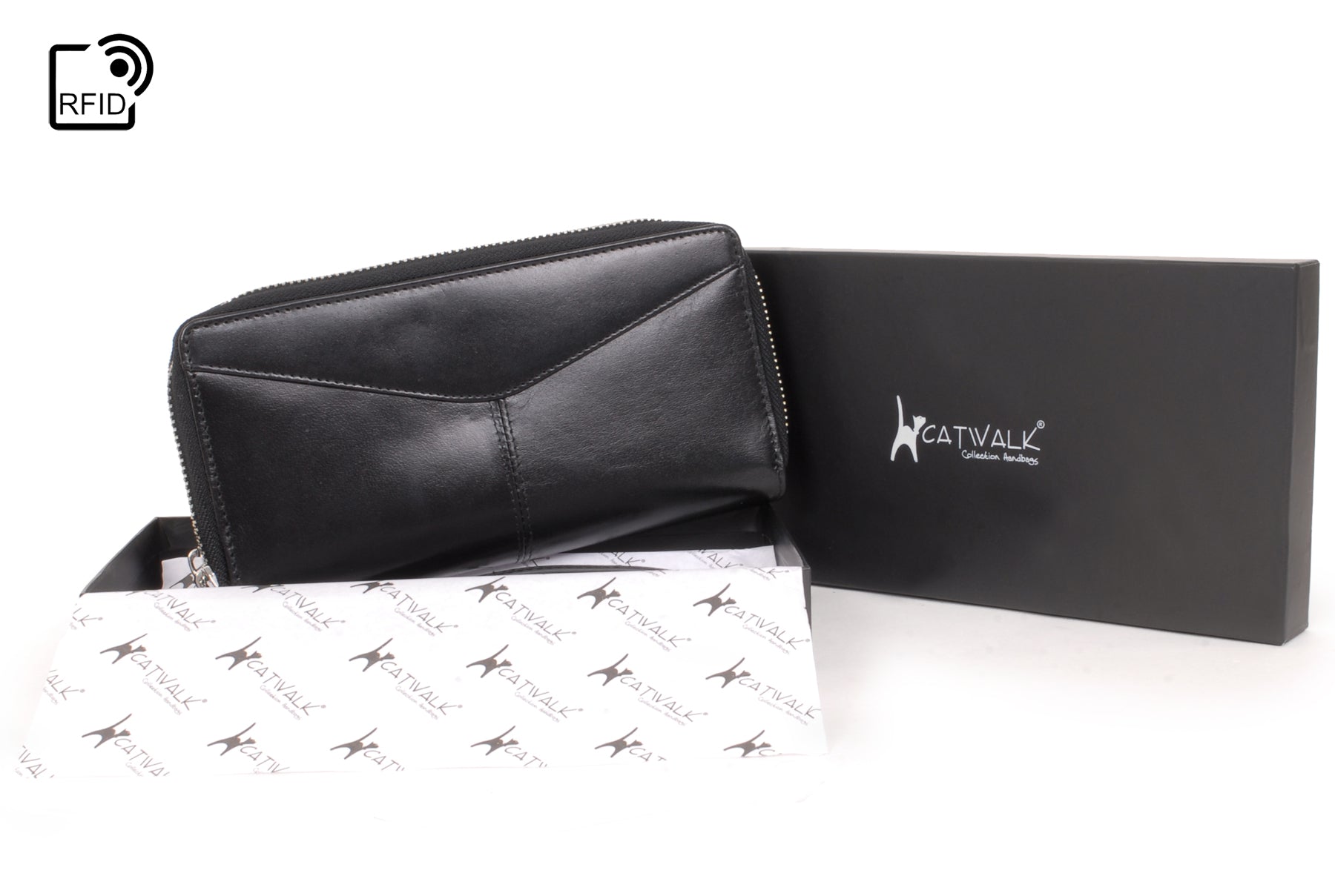 Inside, the purse is lined with a combination of soft leather and Catwalk Collection’s signature branded fabric. It is fitted with Nationally Accredited RFID Protection to help block external scanners and reduce the risk of contactless card or identity fraud. The solid silver zip pulls are detailed with the brand’s signature cat logo, adding a refined finishing touch.