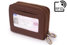 Pockets: 2 Main Compartments containing 12 Concertina Pockets for Cards + 1 Concertina Pocket for Coins + 4 Open Side Pockets for Notes + 1 Outer Rear Pocket for ID
