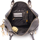 Double handles are elegantly rolled. The bag can be stylishly hand-held or hooked over the lower arm. An adjustable, detachable leather strap enables the bag to be worn over-the-shoulder or hands-free across-the-body.