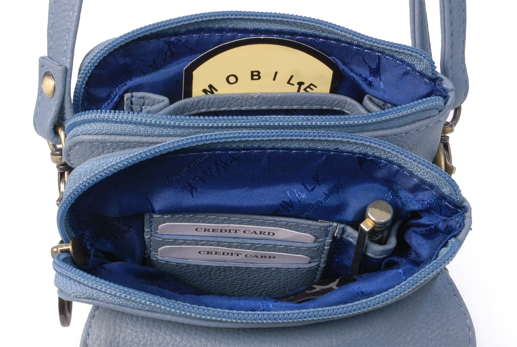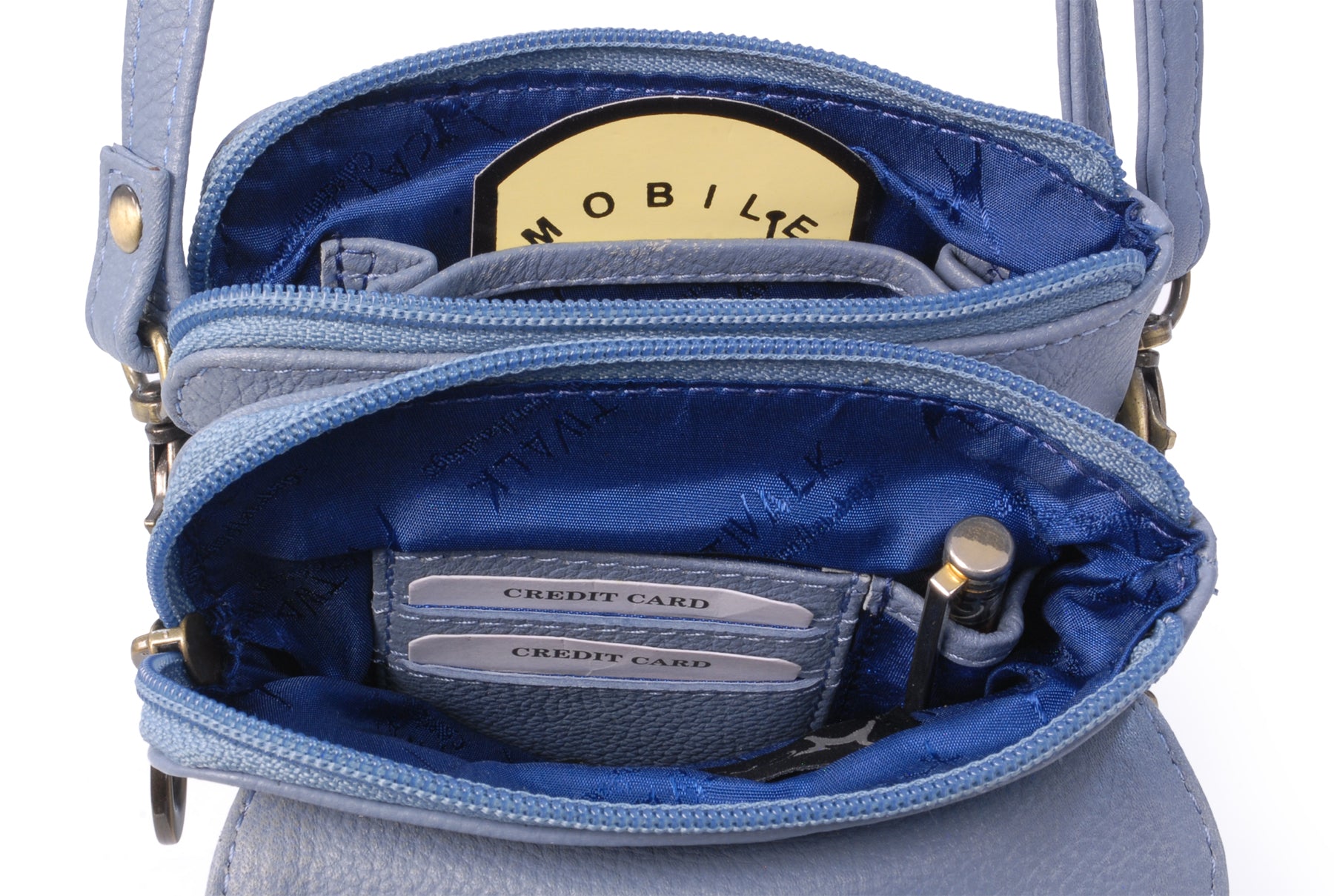 This is a small, slim fitting cross-body bag for those essential items such as purse and make-up.