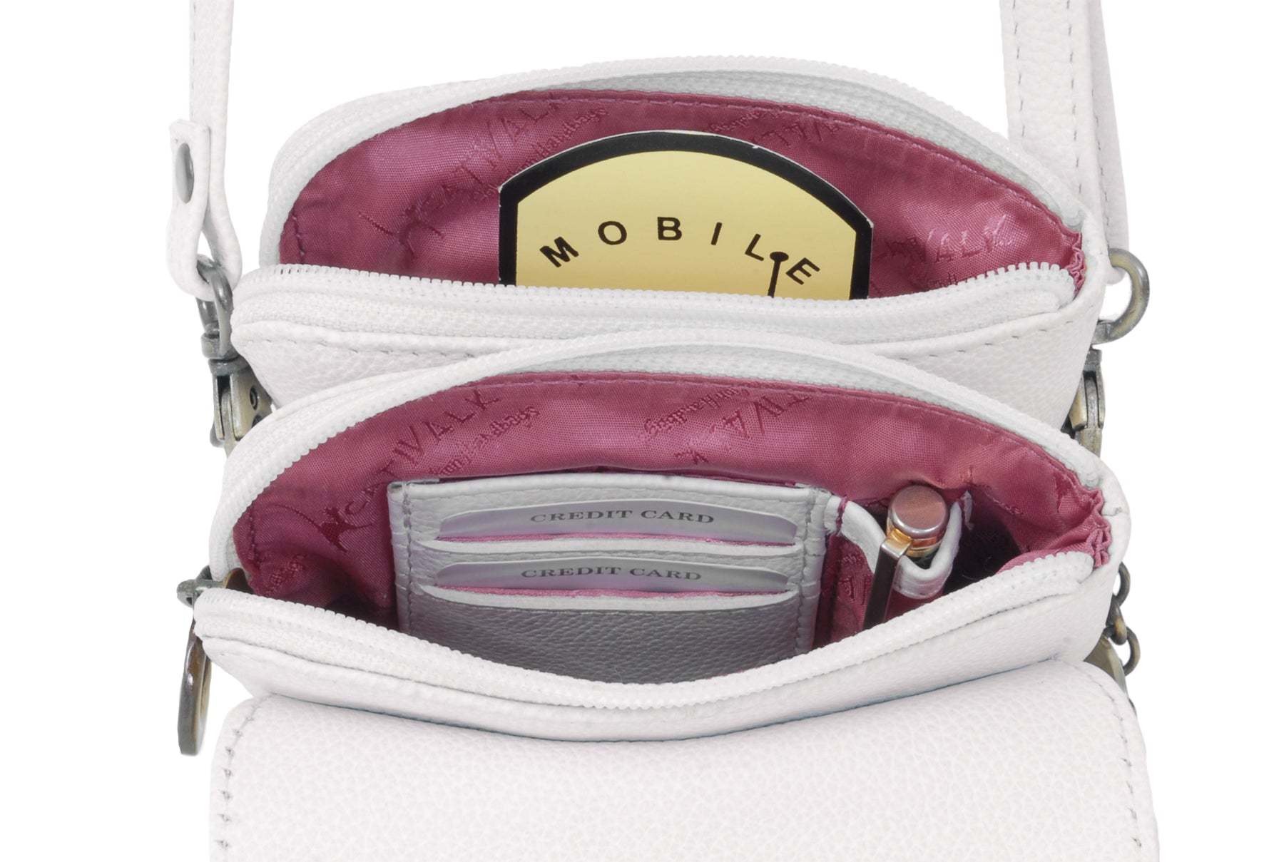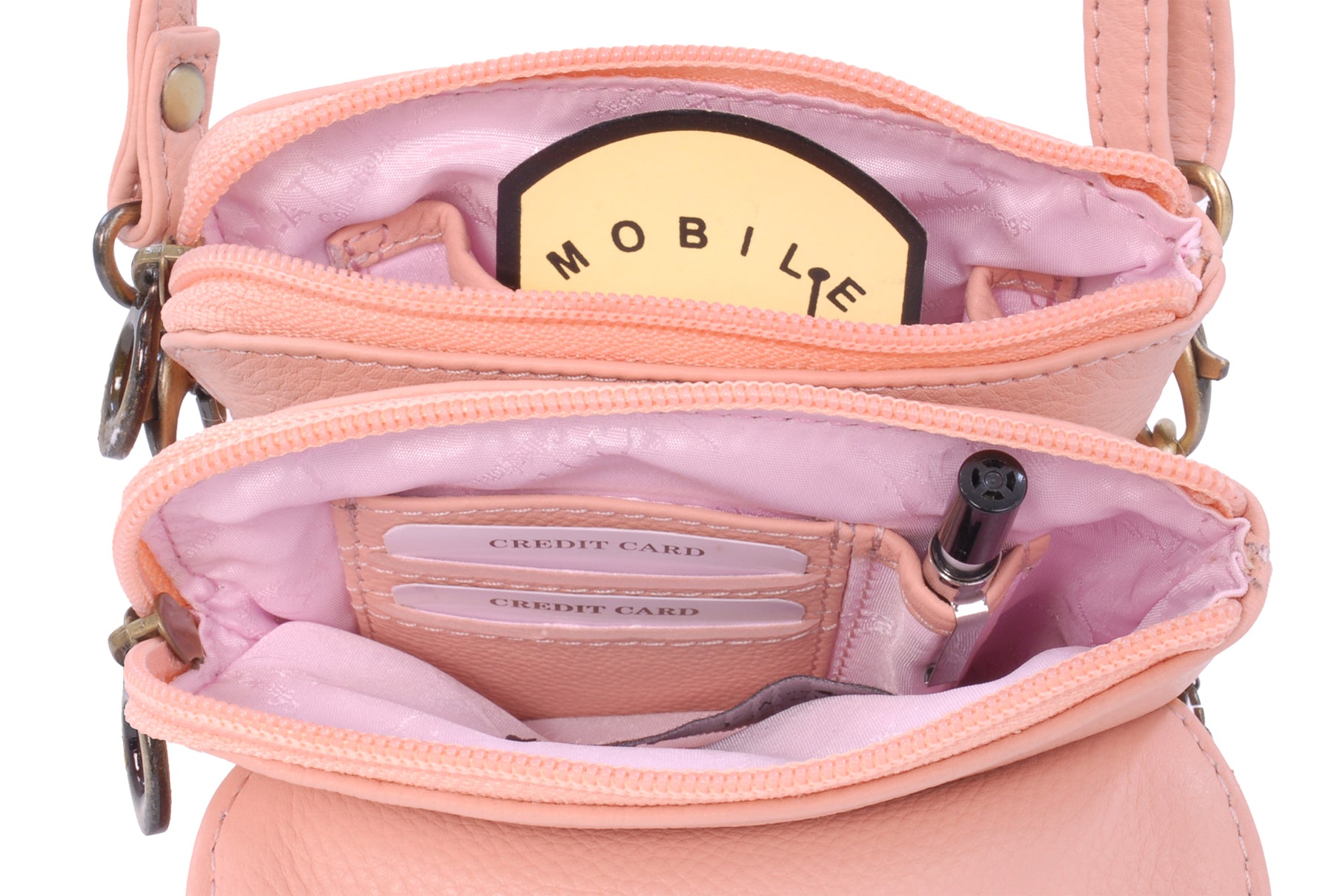 Pockets: 2 Main Compartments + 1 Leather Topped Mobile Phone Holder + 1 Pen Holder + 2 Credit Card Holders + 1 Outer Rear Zipped Pocket