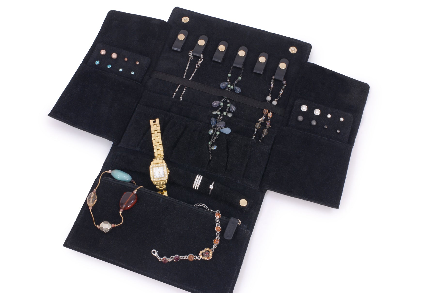 Keep jewellery secure at home or while travelling with this foldable jewellery organiser.