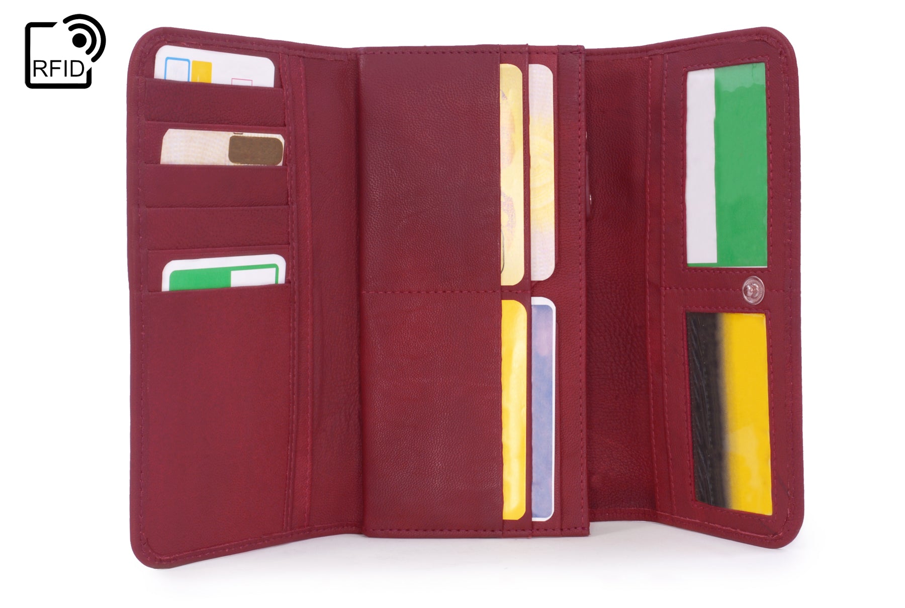 Pockets: 1 Zipped Coin Pocket + 2 Concertina Pockets + 2 Note Sections + 1 Slim Open Pocket + 12 Credit Card Holders + 2 Windows/ID Holders + 1 Outer Rear Zipped Pocket