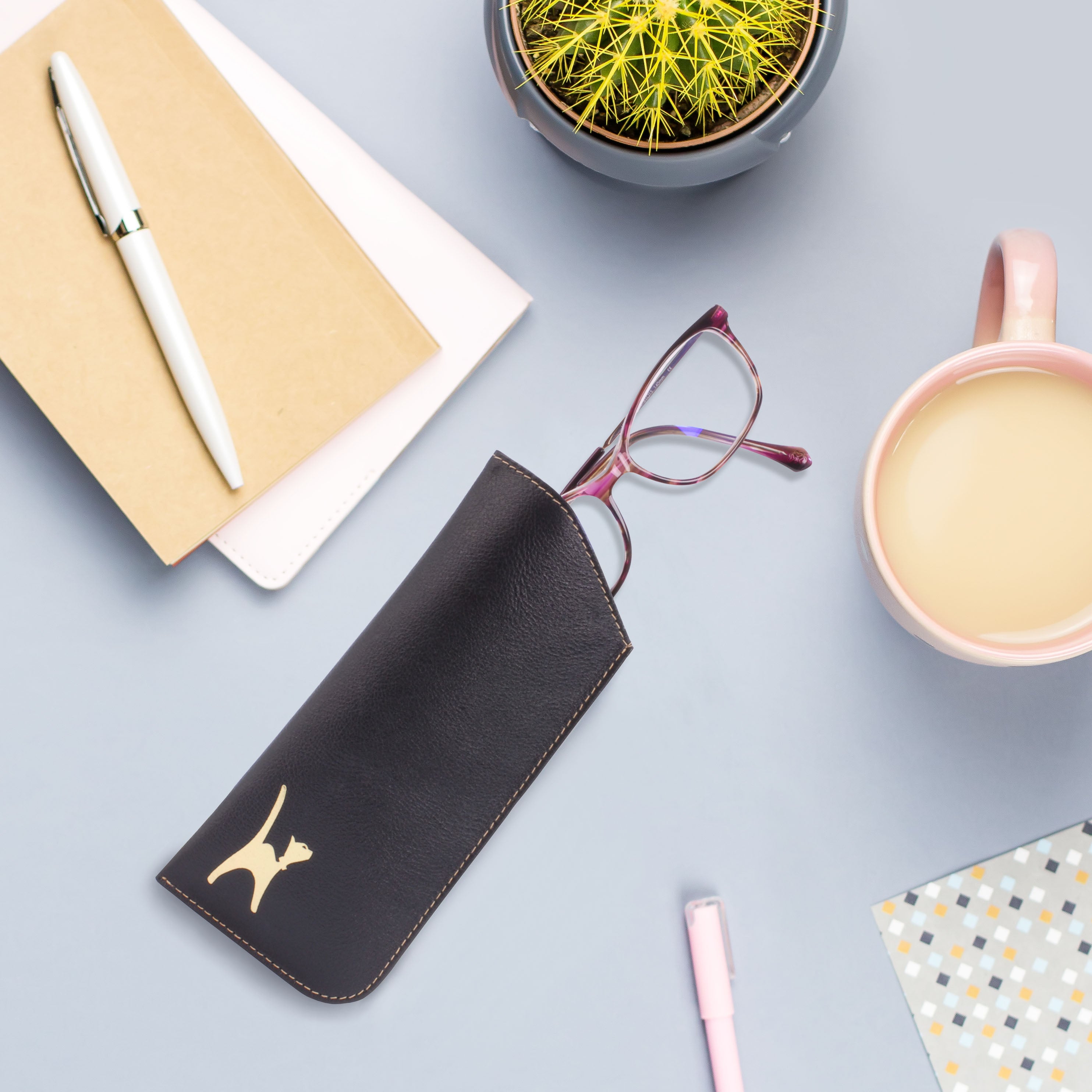 A simple yet elegant pouch to protect and store your shades or eyeglasses. This leather glasses holder is suitable for all standard size glasses.