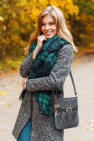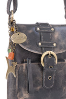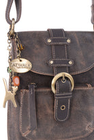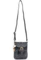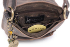 An adjustable leather strap enables the bag to be worn over-the-shoulder or hands-free across-the-body.