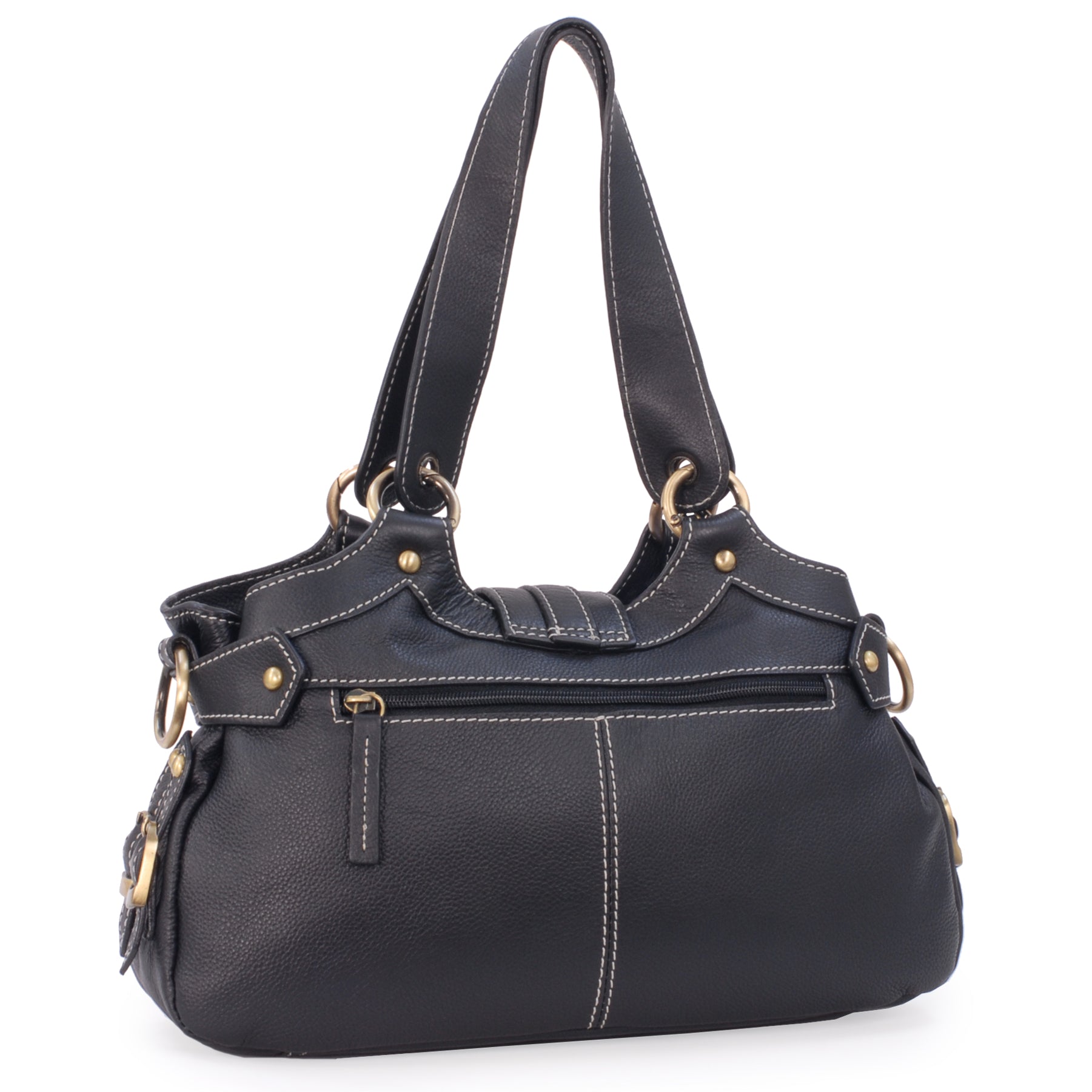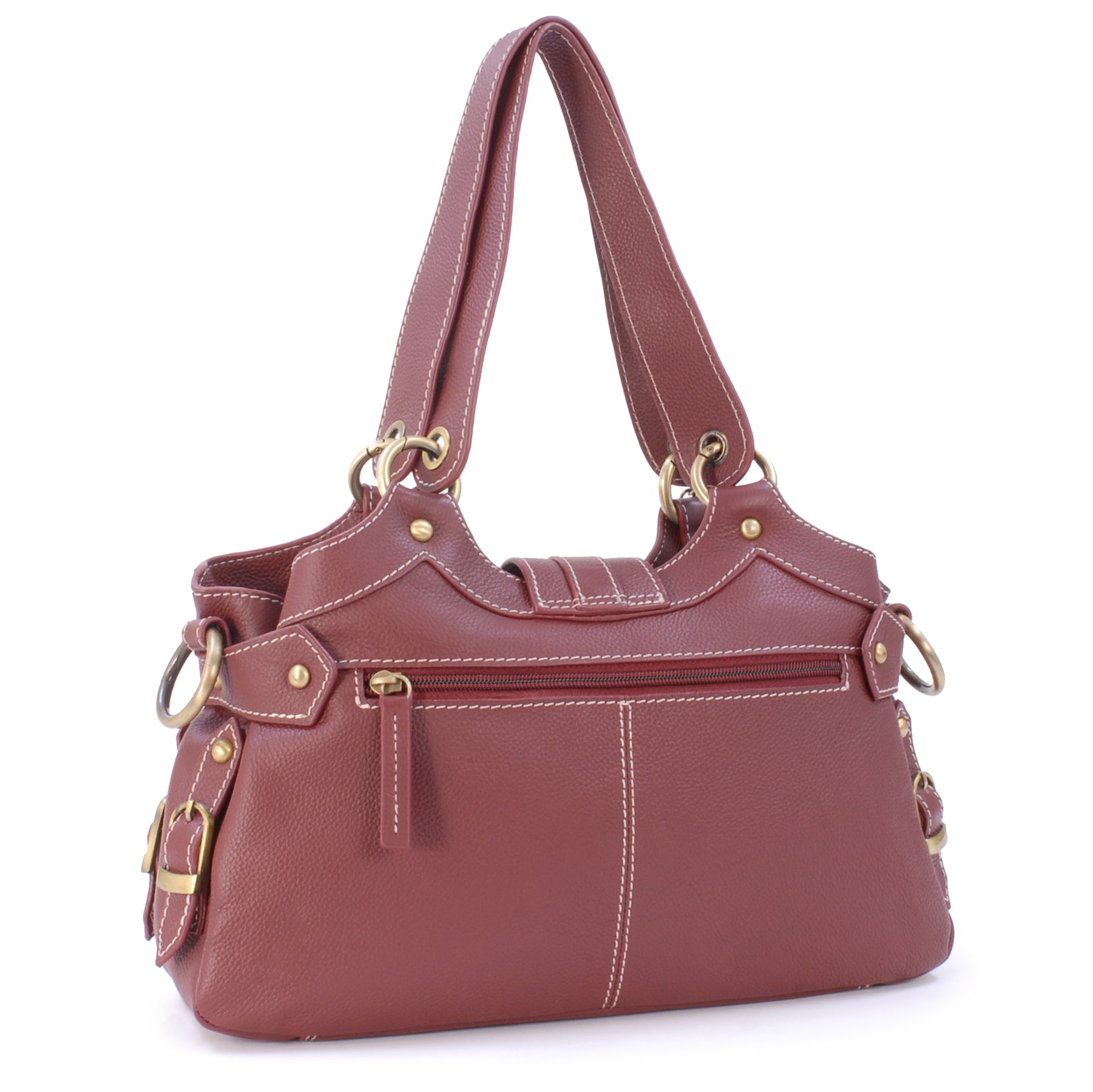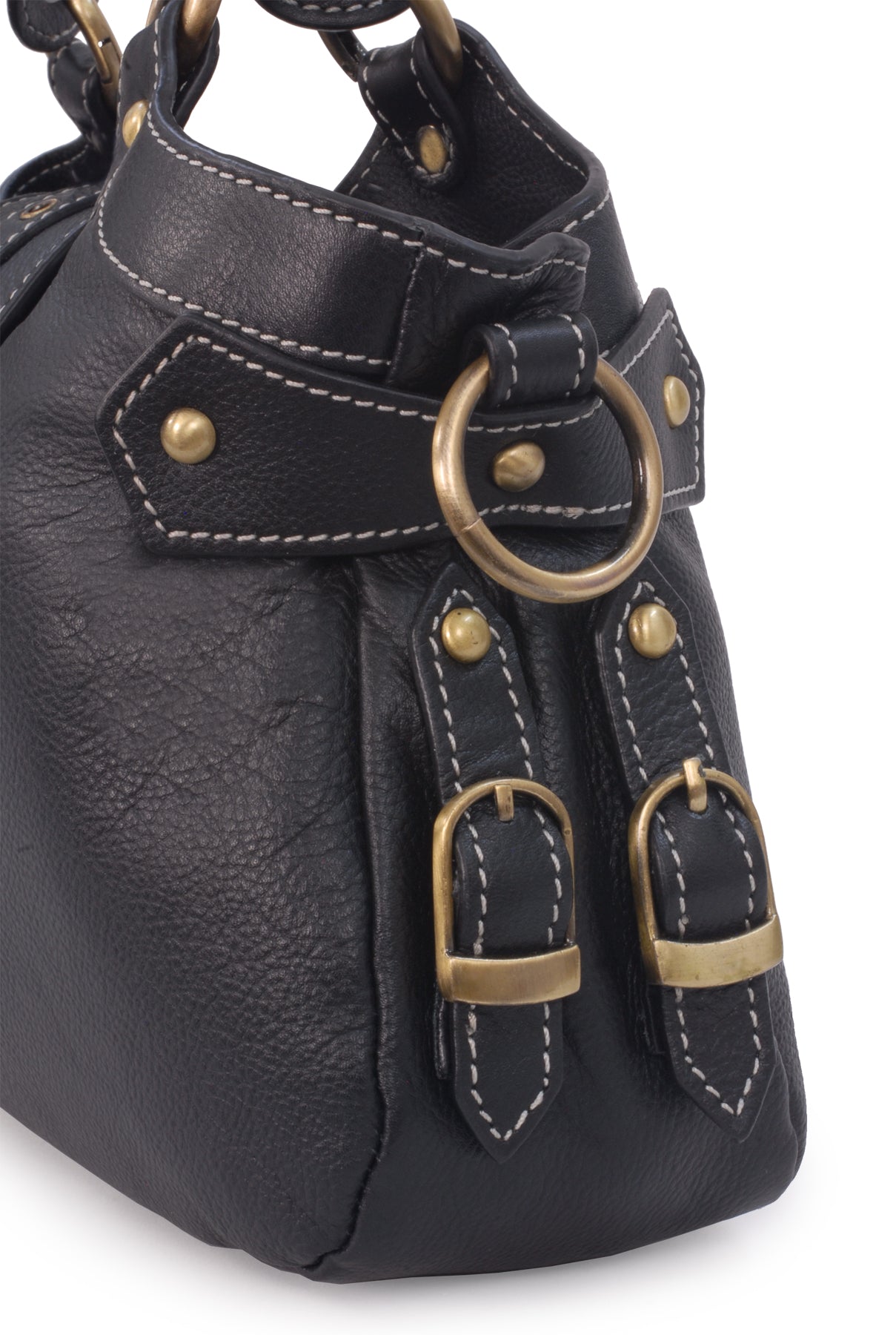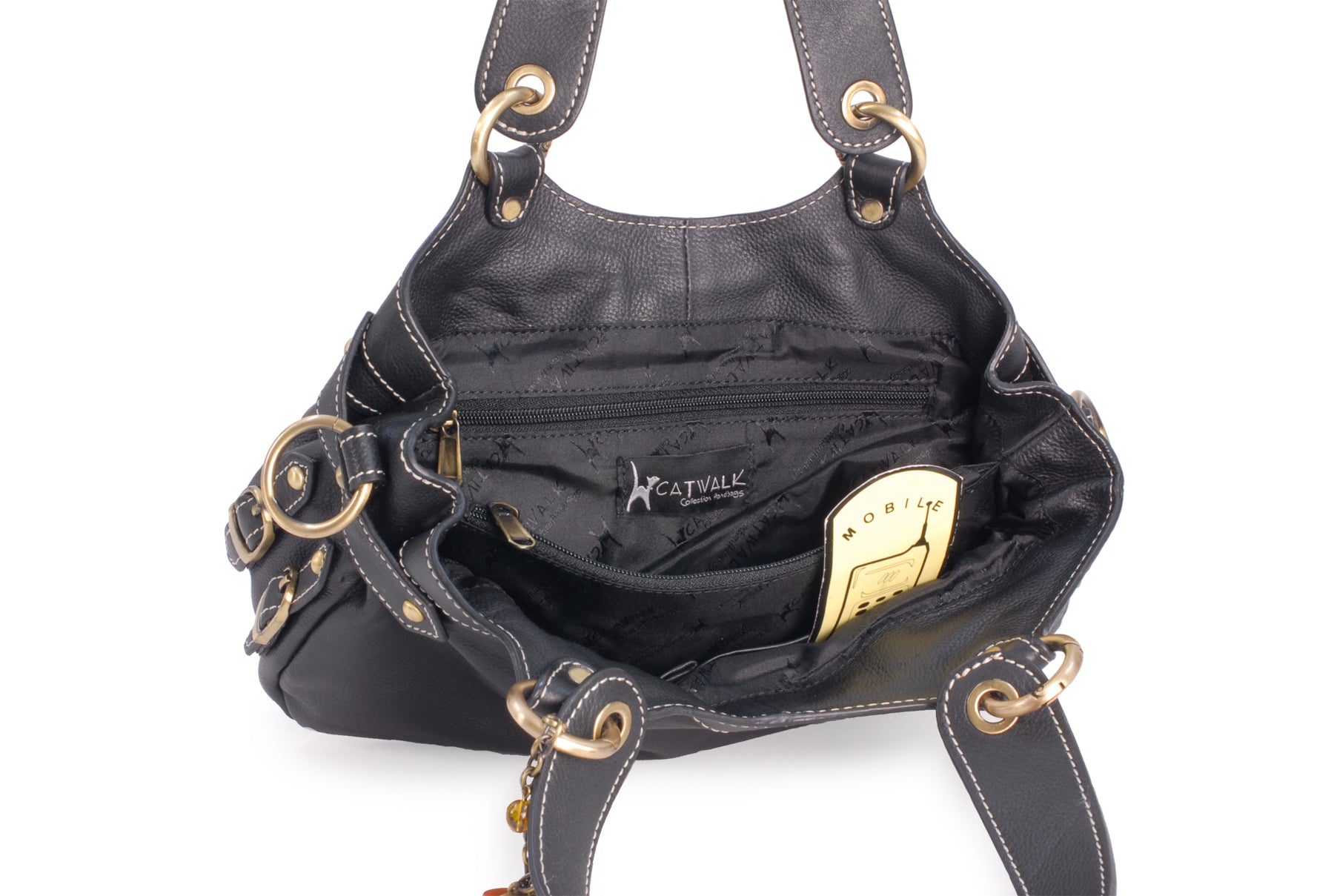 Pockets: 2 Main Compartments + 1 Central Zipped Compartment + 1 Interior Side Zipped Pocket + 1 Leather topped Mobile Phone Holder + 1 Leather topped Extra Open Pocket + 1 Outer Rear Zipped Pocket