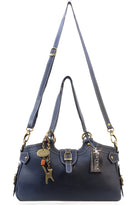 Flat double handles are shaped for a comfortable fit over the shoulder. An adjustable, detachable strap allows the bag to be worn hands-free cross-body.