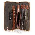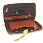 A neat, slim leather jewellery case designed for travel and everyday use. Compact and practical, this organiser fits easily into handbags and luggage, keeping valuables secure and accessible.