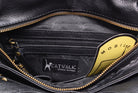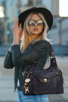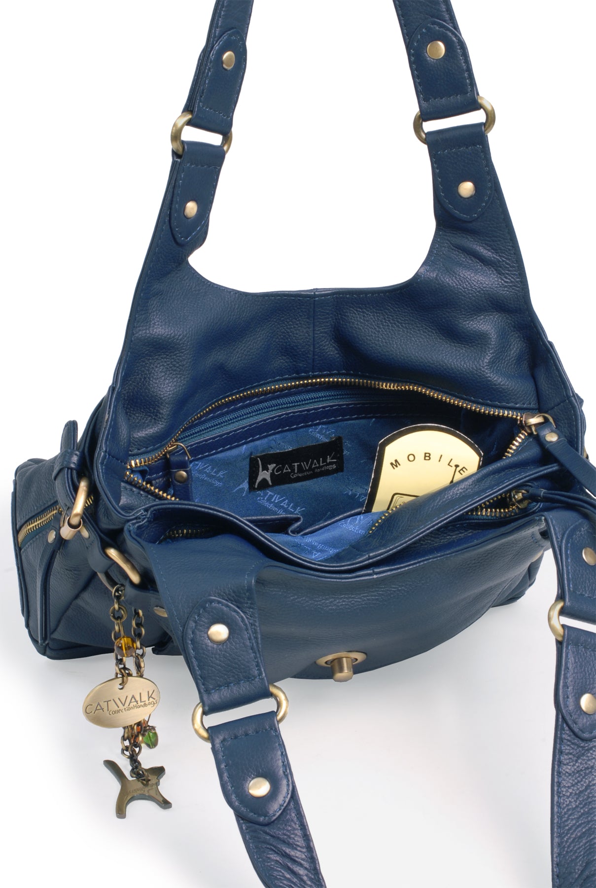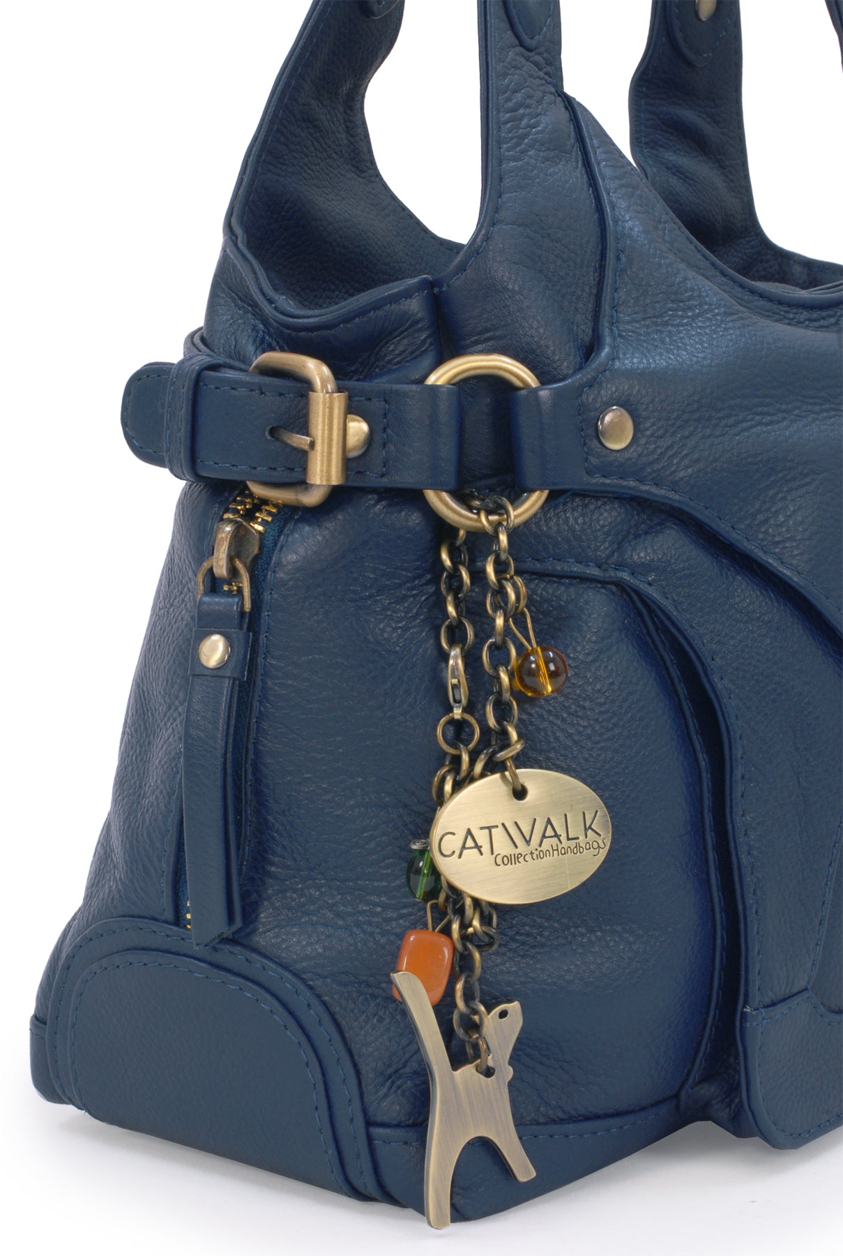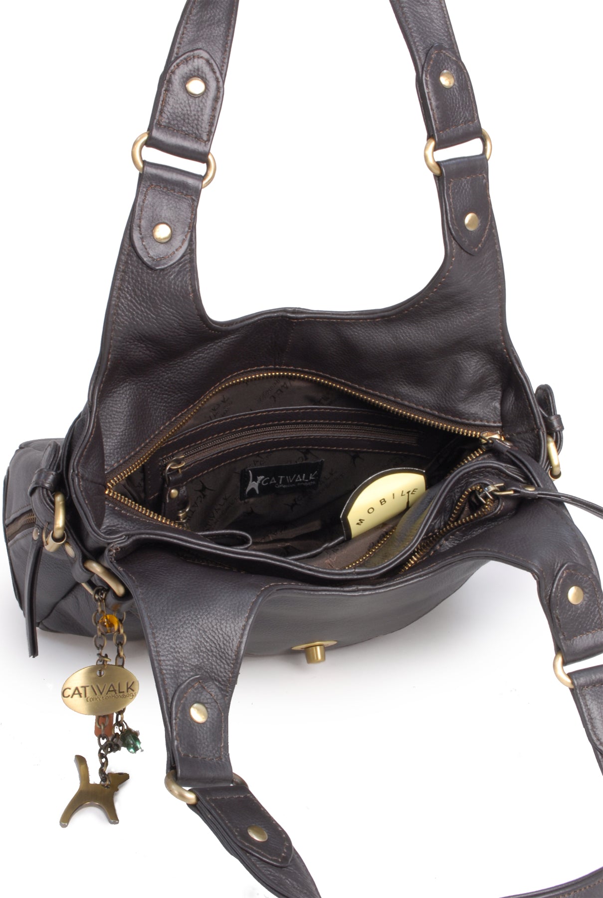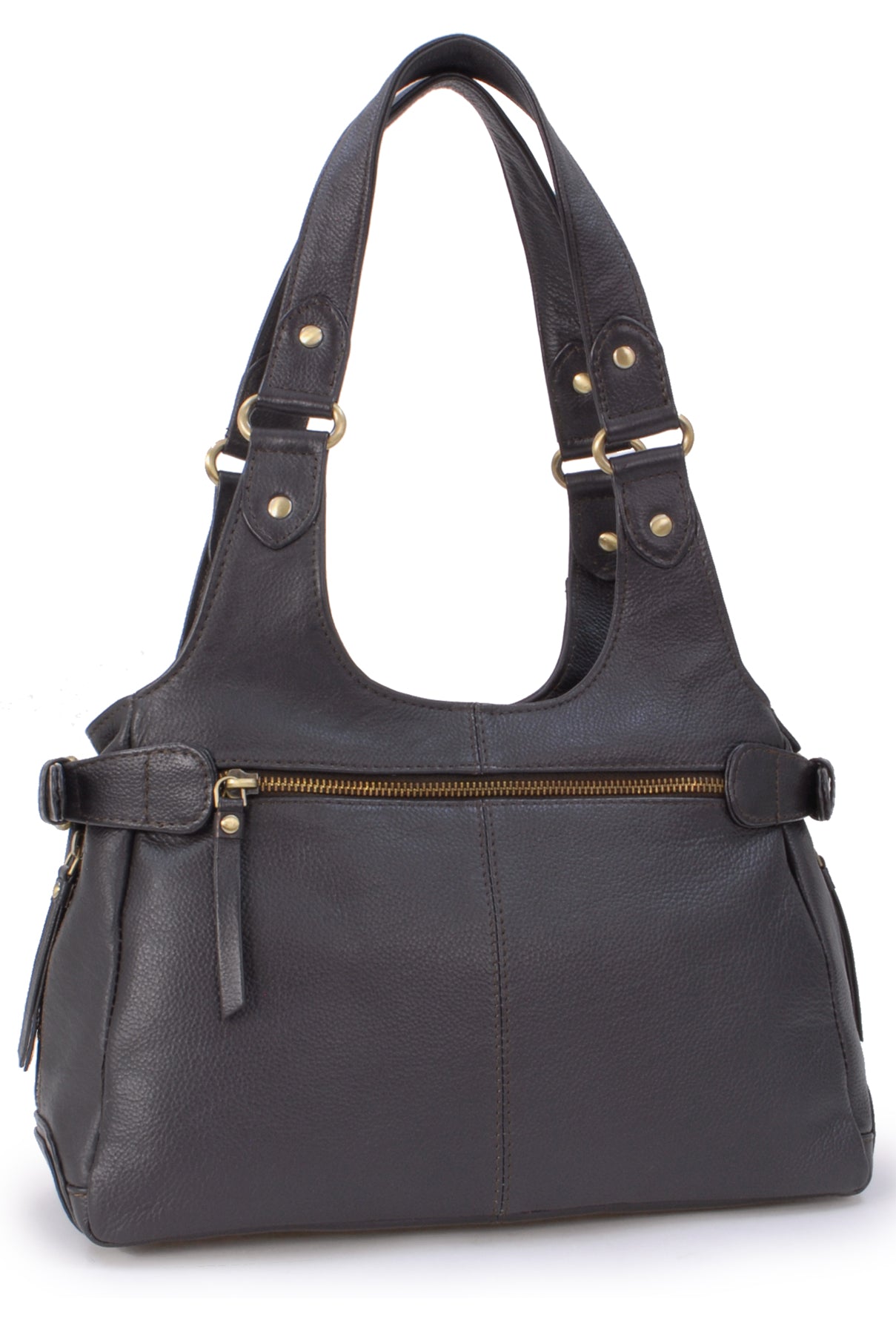 The bag's unique character is defined by the placement of secure, chunky antique brass metal zippers which not only look stunning but make the bag completely streetwise.