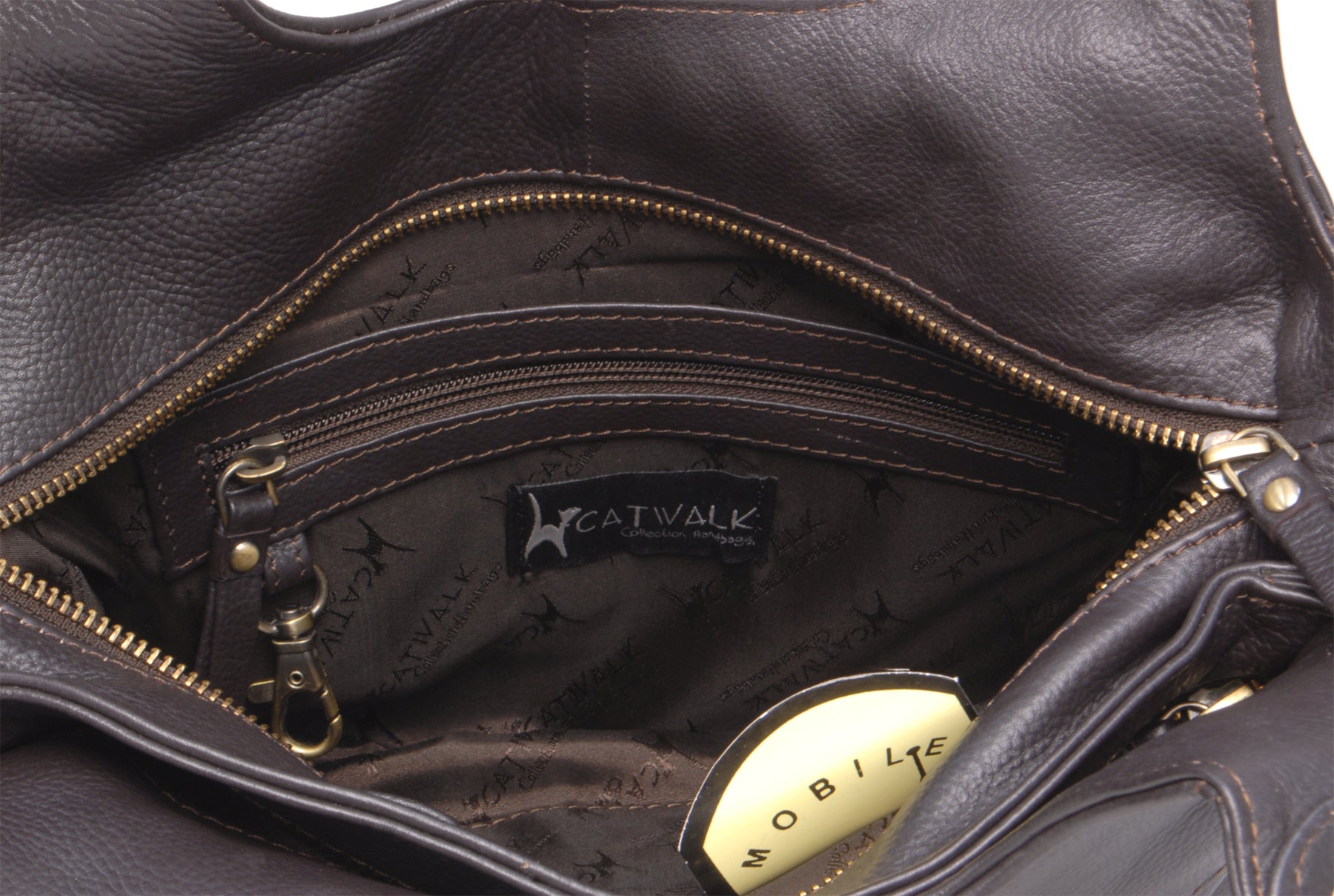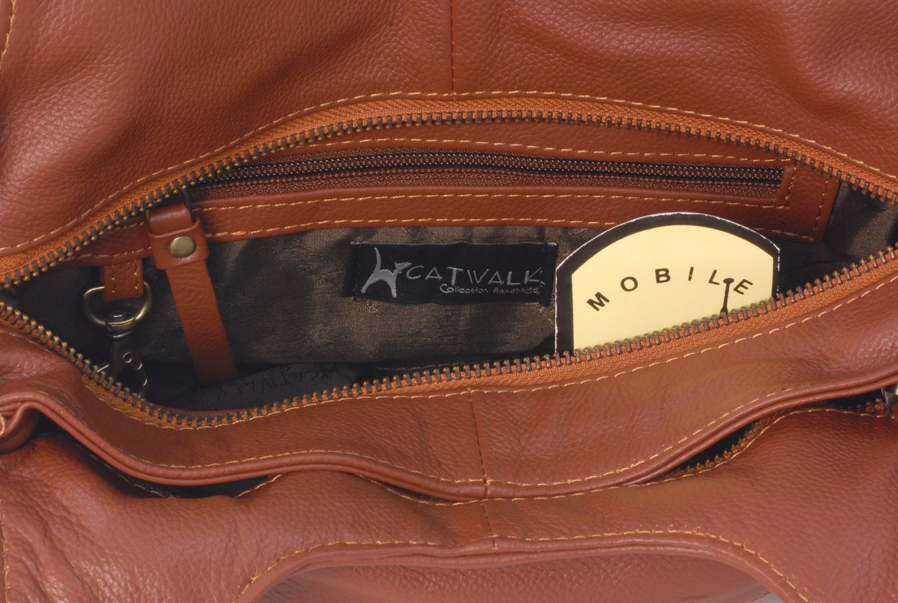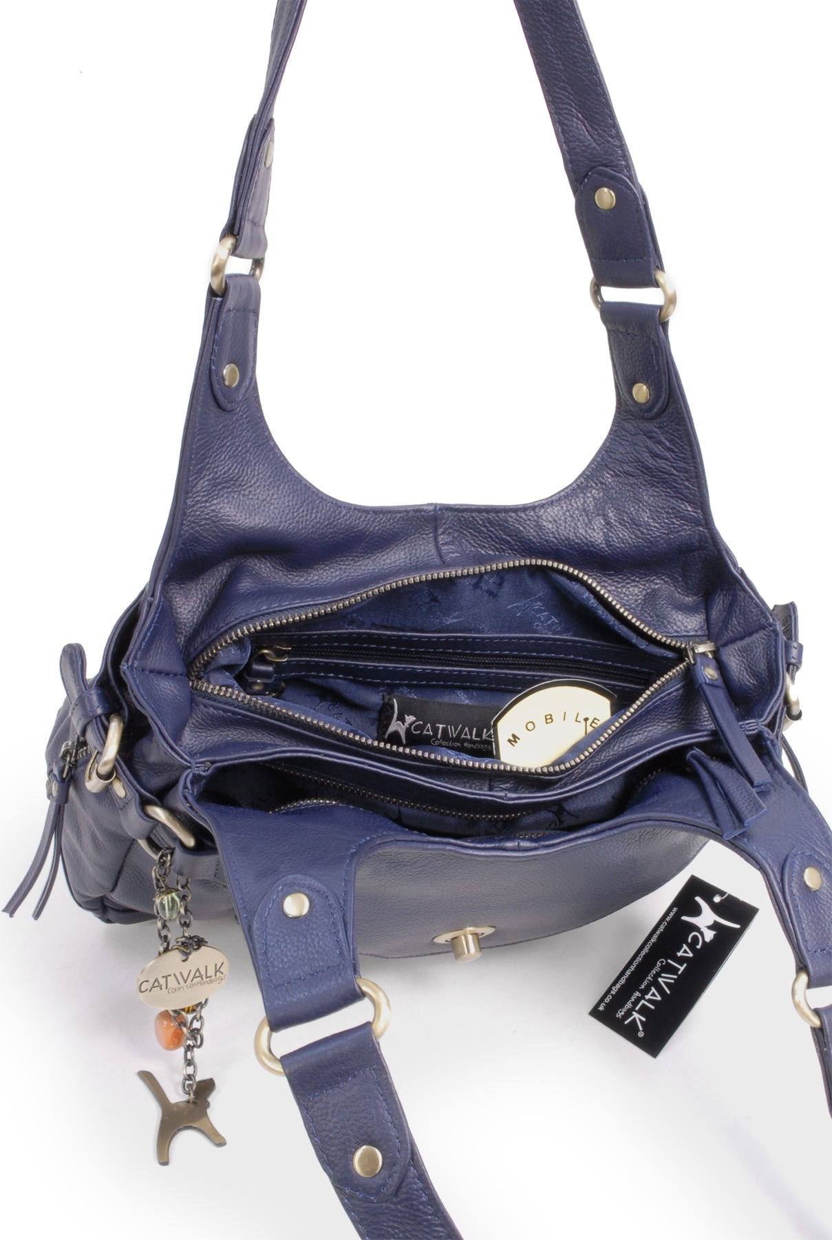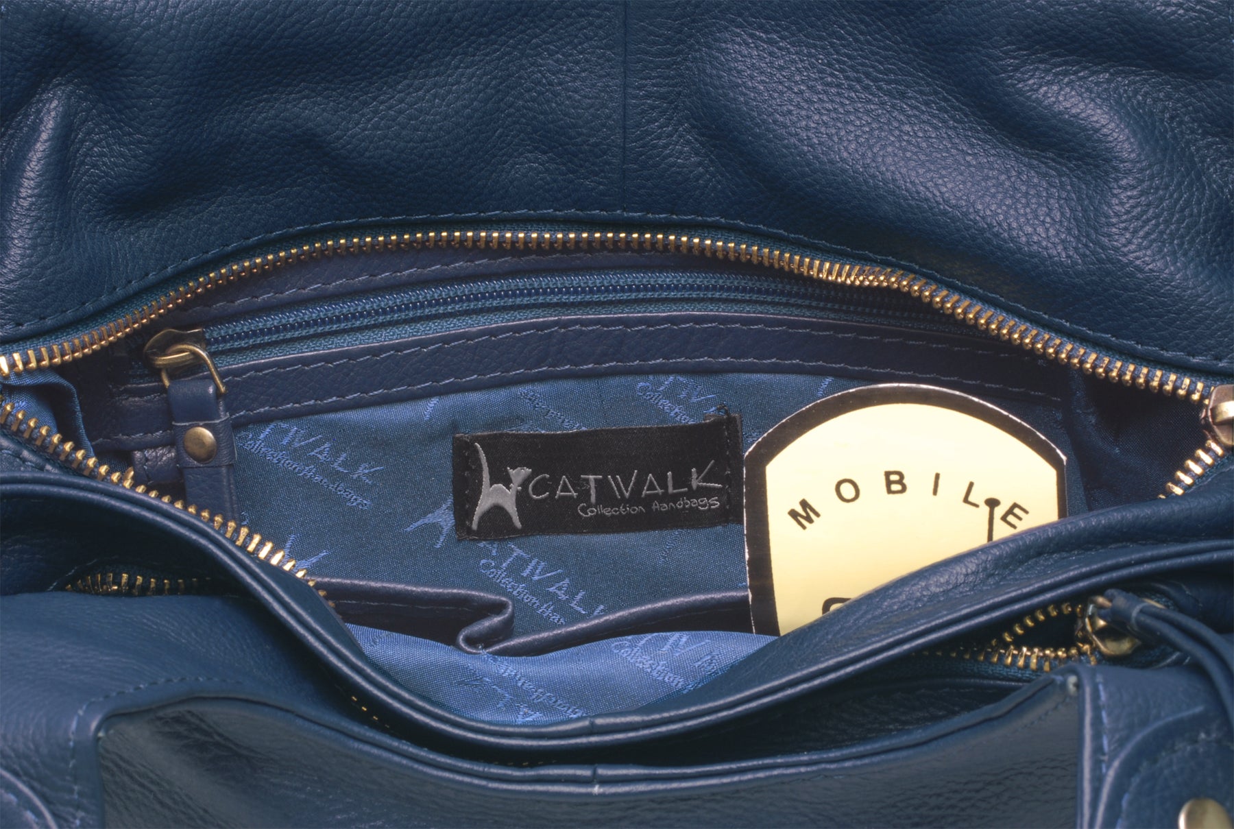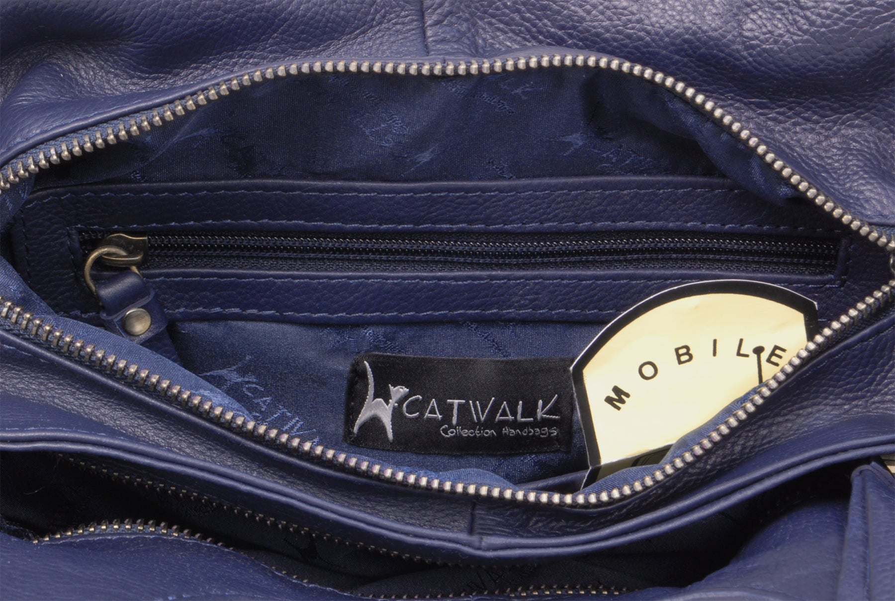 Pockets: 2 Main Compartments + 1 Interior Zipped Pocket + 1 Spring Clip Key Fob + 1 Leather topped Mobile Phone Holder + 1 Leather topped Interior Open Pocket + 1 Front Pocket + 1 Rear Zipped Pocket + 2 Side Zipped Pockets