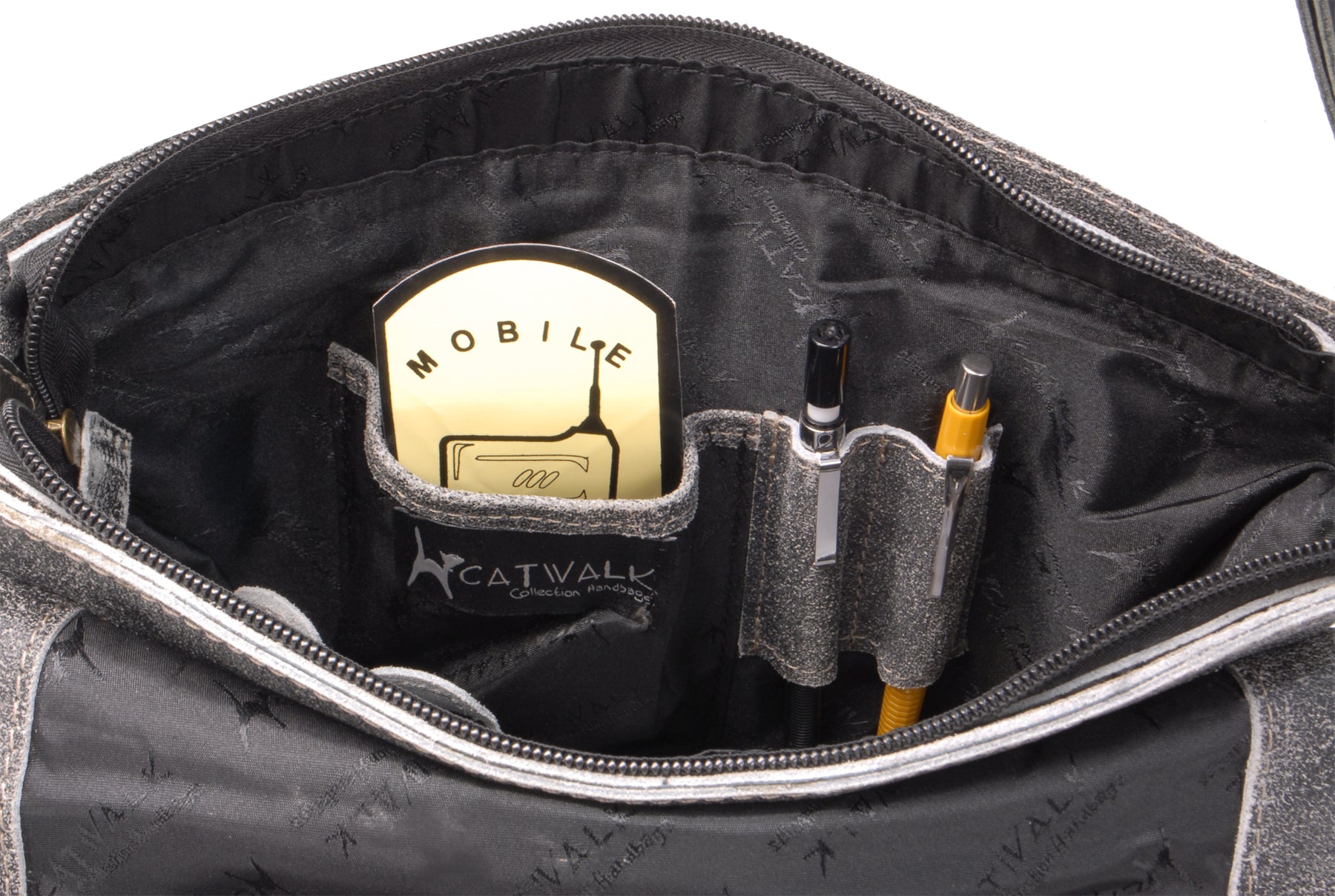 Pockets: 1 Main Compartment + 1 Open Front Pocket + 1 Outer Rear Zipped Pocket + 1 Interior Rear Zipped Pocket + 3 Credit Card Holders + 2 Lipstick Holders + 1 Zipped Coin Pocket + 1 Mobile Phone Holder + 2 Pen Holders