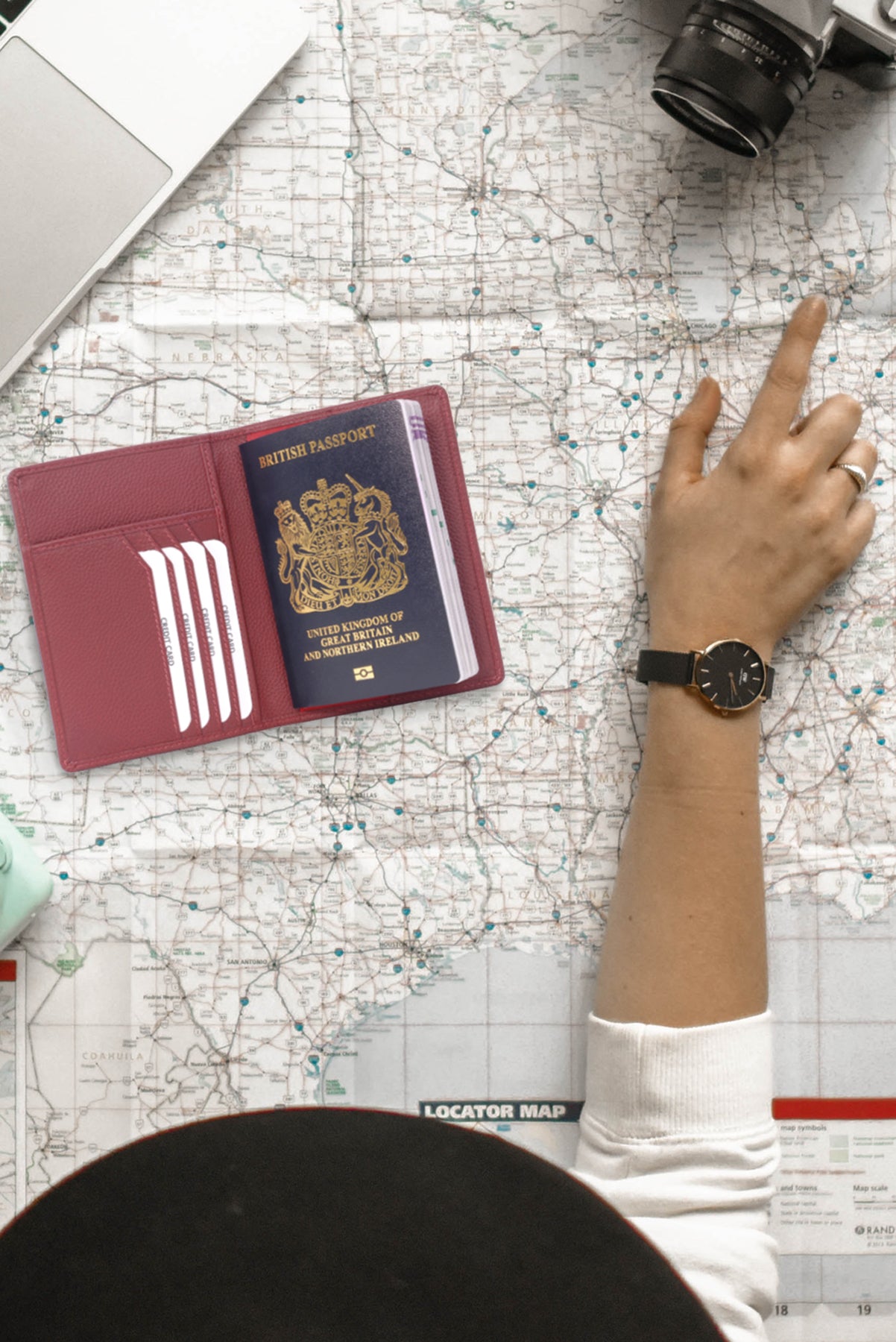 This leather passport holder provides an elegant way to stay organised when travelling.
