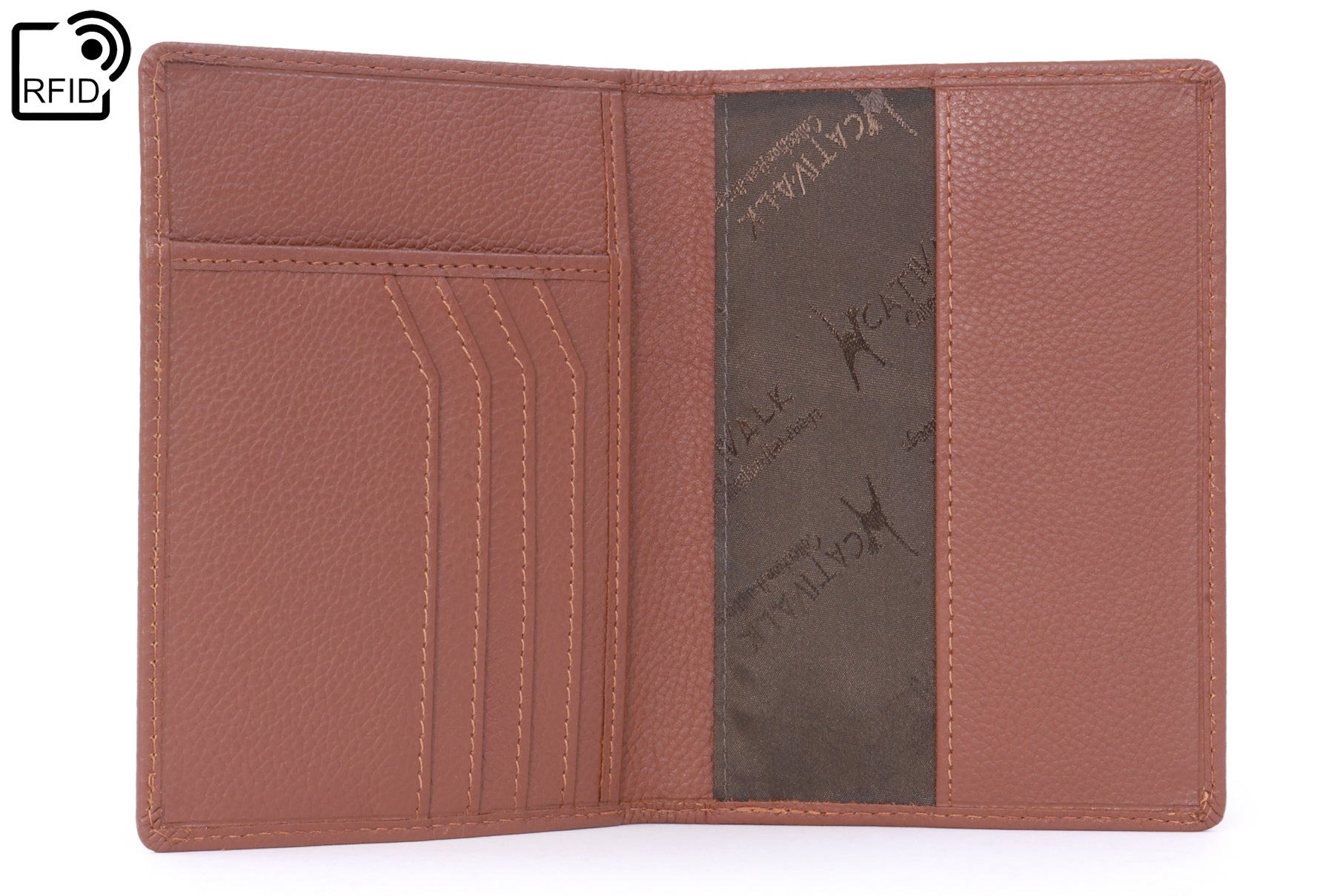 Contrast stitching highlights the fine features of the passport holder. The front panel is beautifully imprinted with the signature logo.