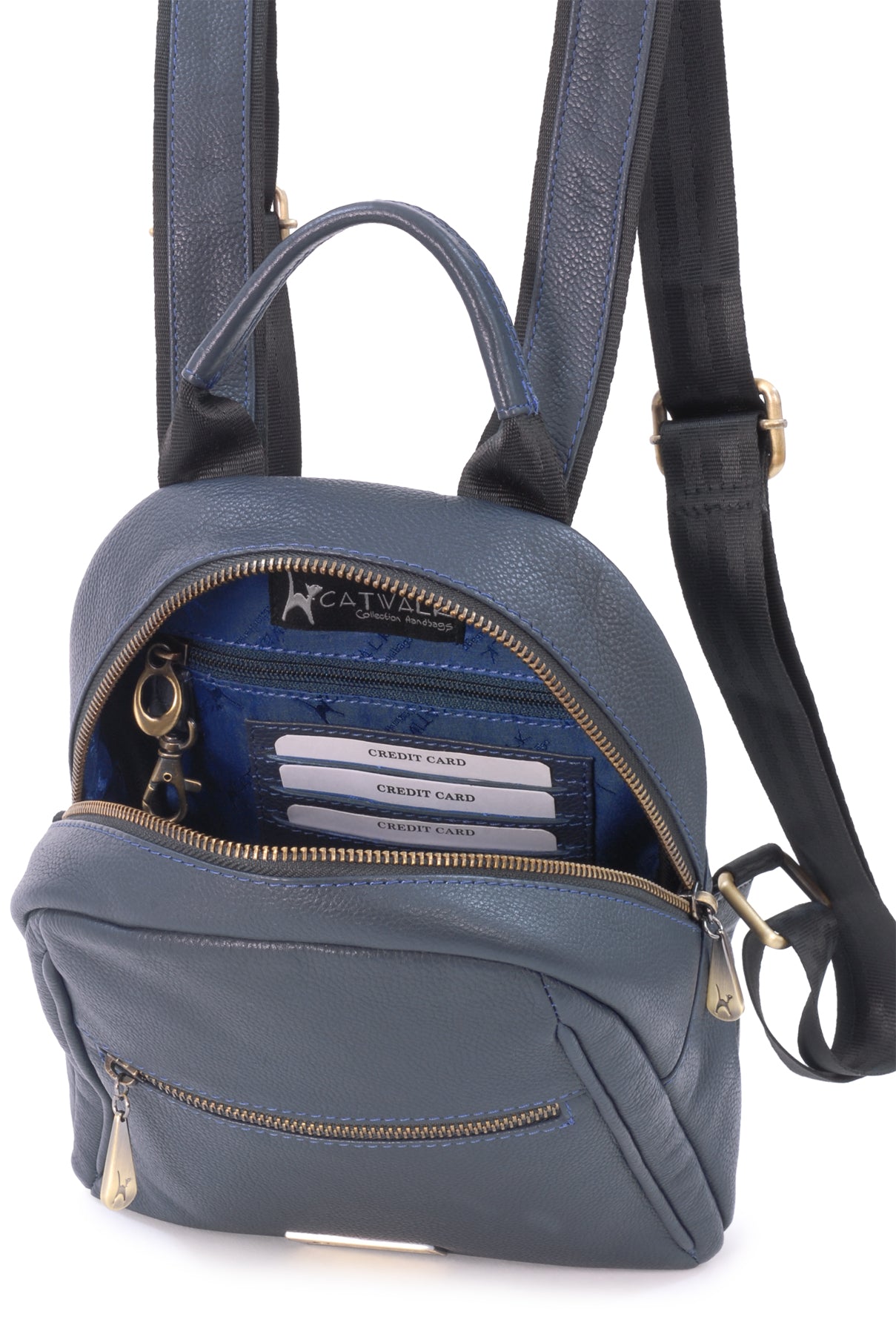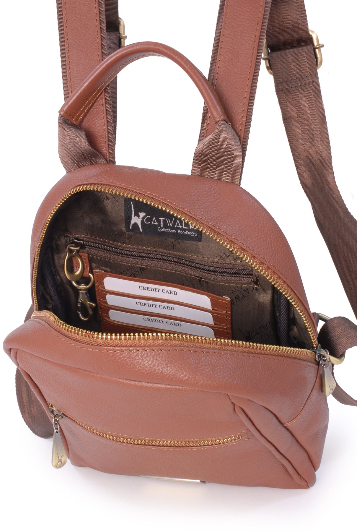 A STYLISH LEATHER BACKPACK WITH SECURE ZIP FASTENING