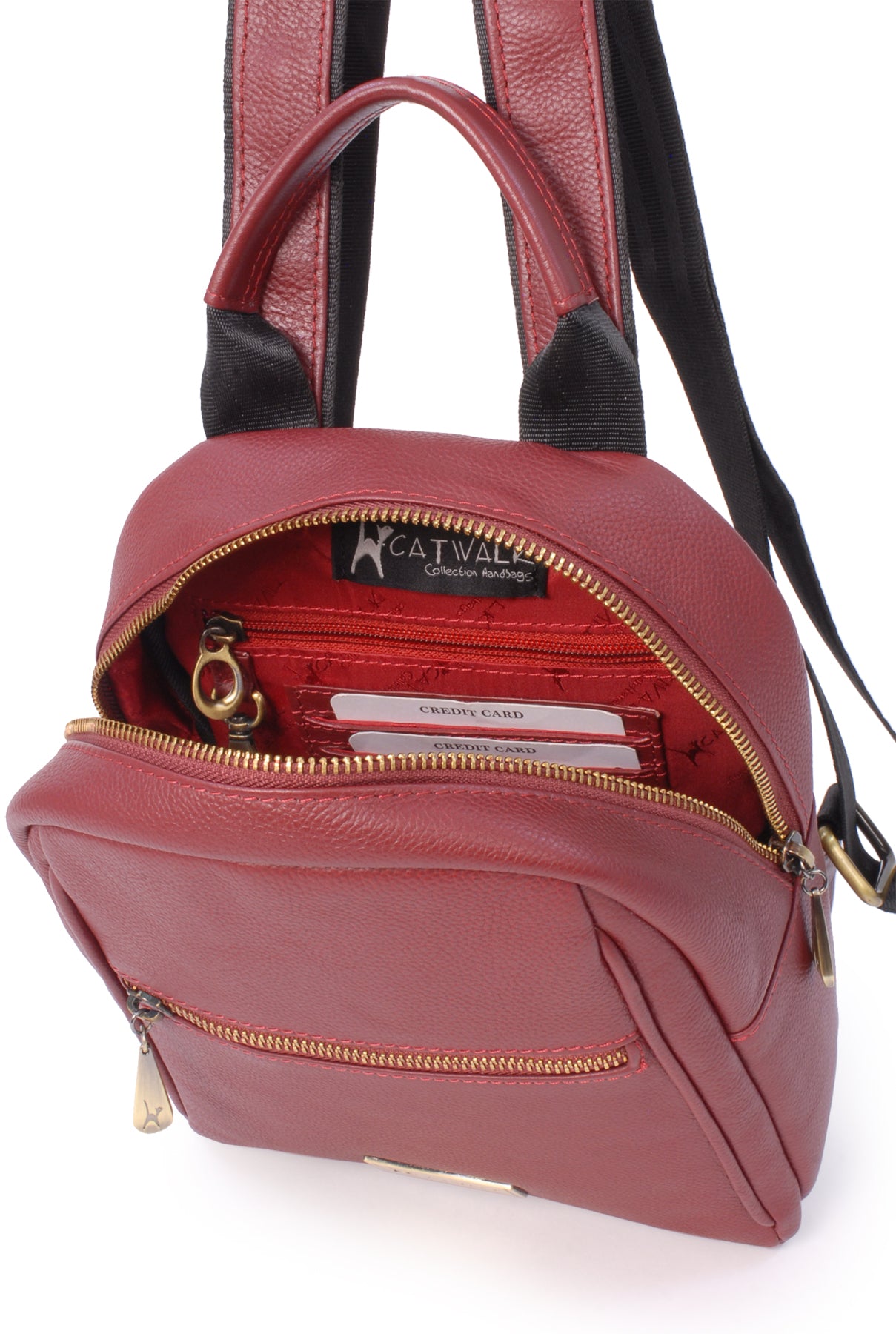 The bag opens wide for easy access and fastens securely with a metal zip. The Catwalk Collection Cat Logo is stylishly imprinted onto the brass zip pull.