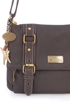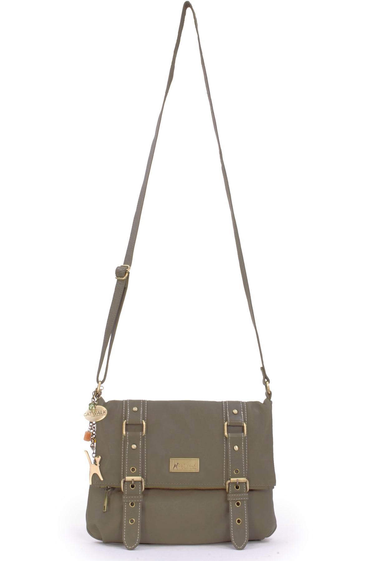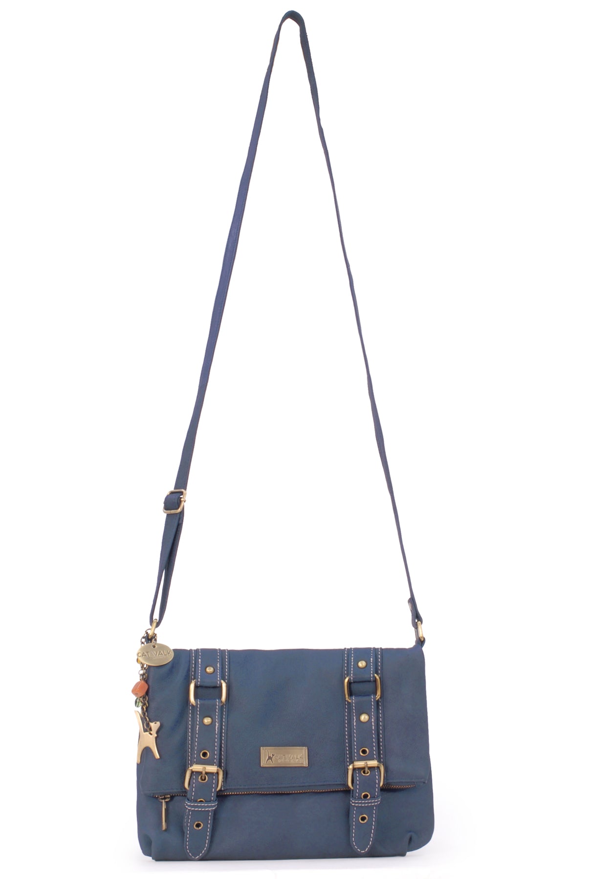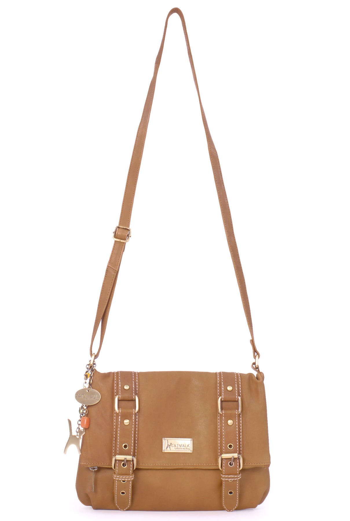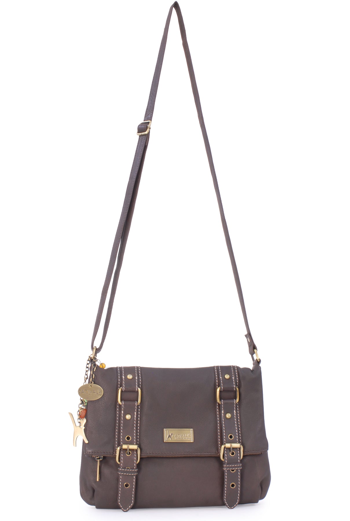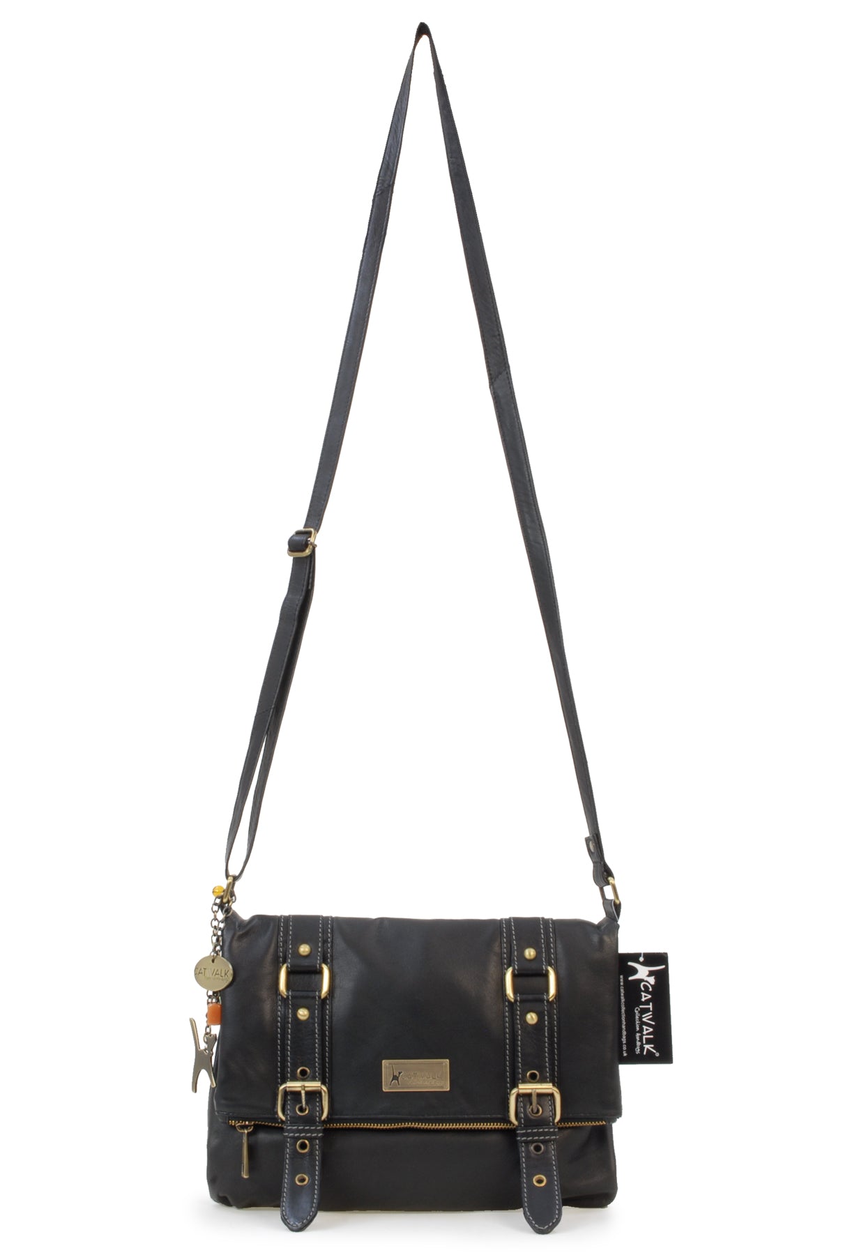 The long strap is fully adjustable with a sliding brass grip for the perfect fit and there are no buckles to snag clothes; wear on the shoulder or hands-free across the body.