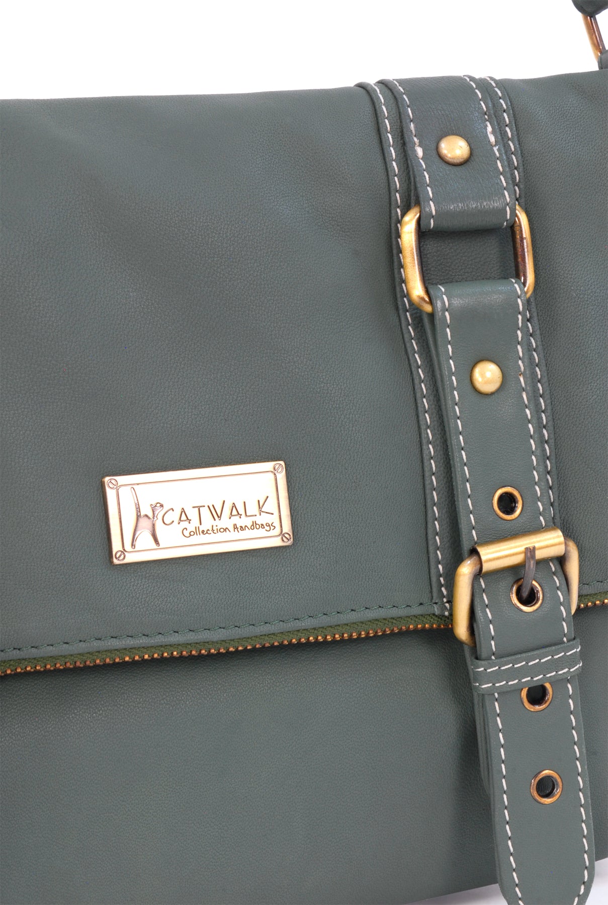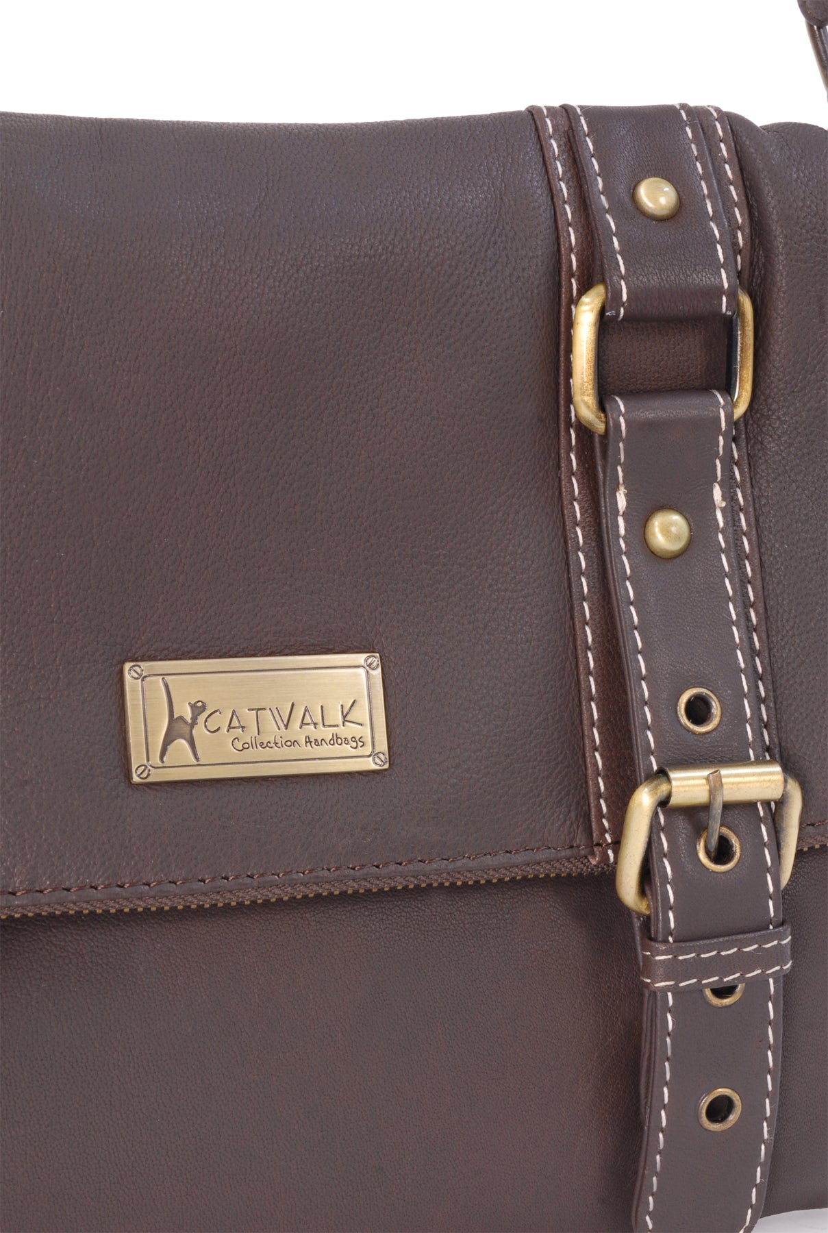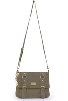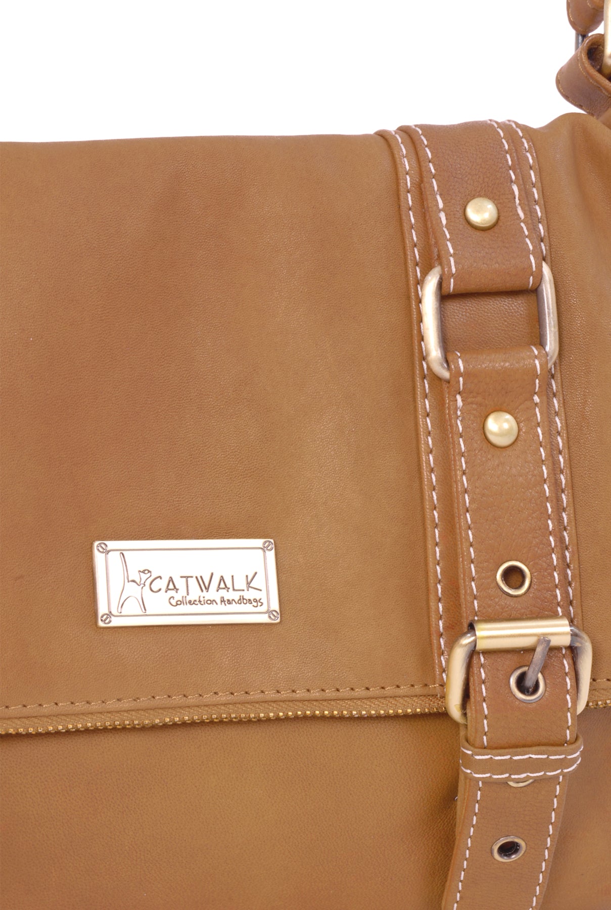 There is a 'secret' zipped pocket on the back of the bag for quick access. The bag fastens securely with a metal zip and the top part folds over and is secured with magnetic snaps beneath decorative buckles. The perfect deterrent for pick-pockets!