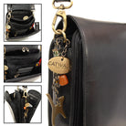 Chunky brass spring clips on the long, adjustable strap make this an absolute must-have bag.