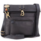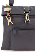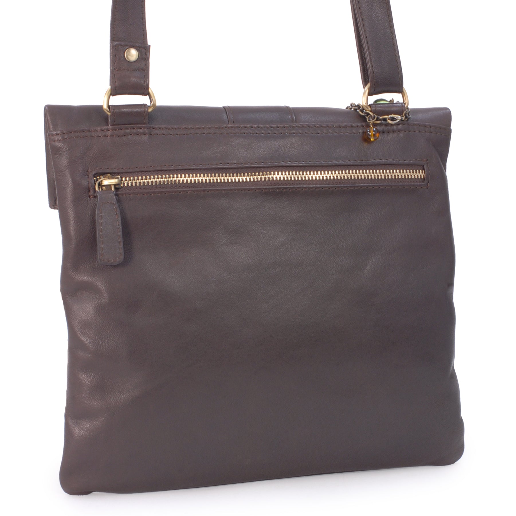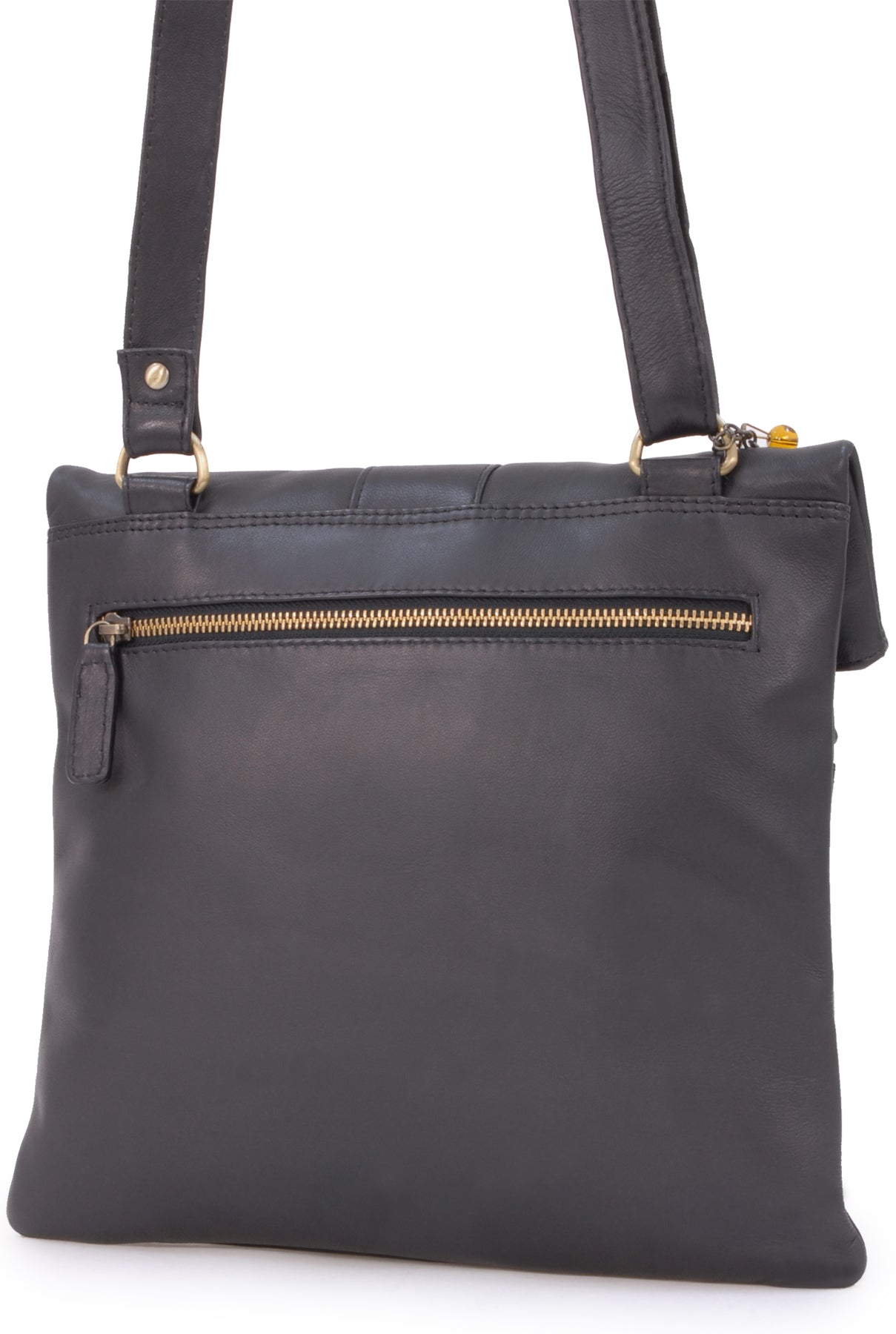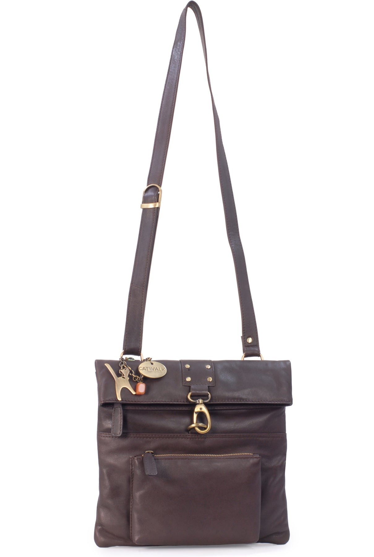 The long strap is fully adjustable with a sliding brass grip for the perfect fit and there are no buckles to snag clothes; wear on the shoulder or hands-free across the body.