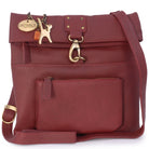 This is a medium sized, slim fitting messenger-style bag which can hold items up to A5 size.
