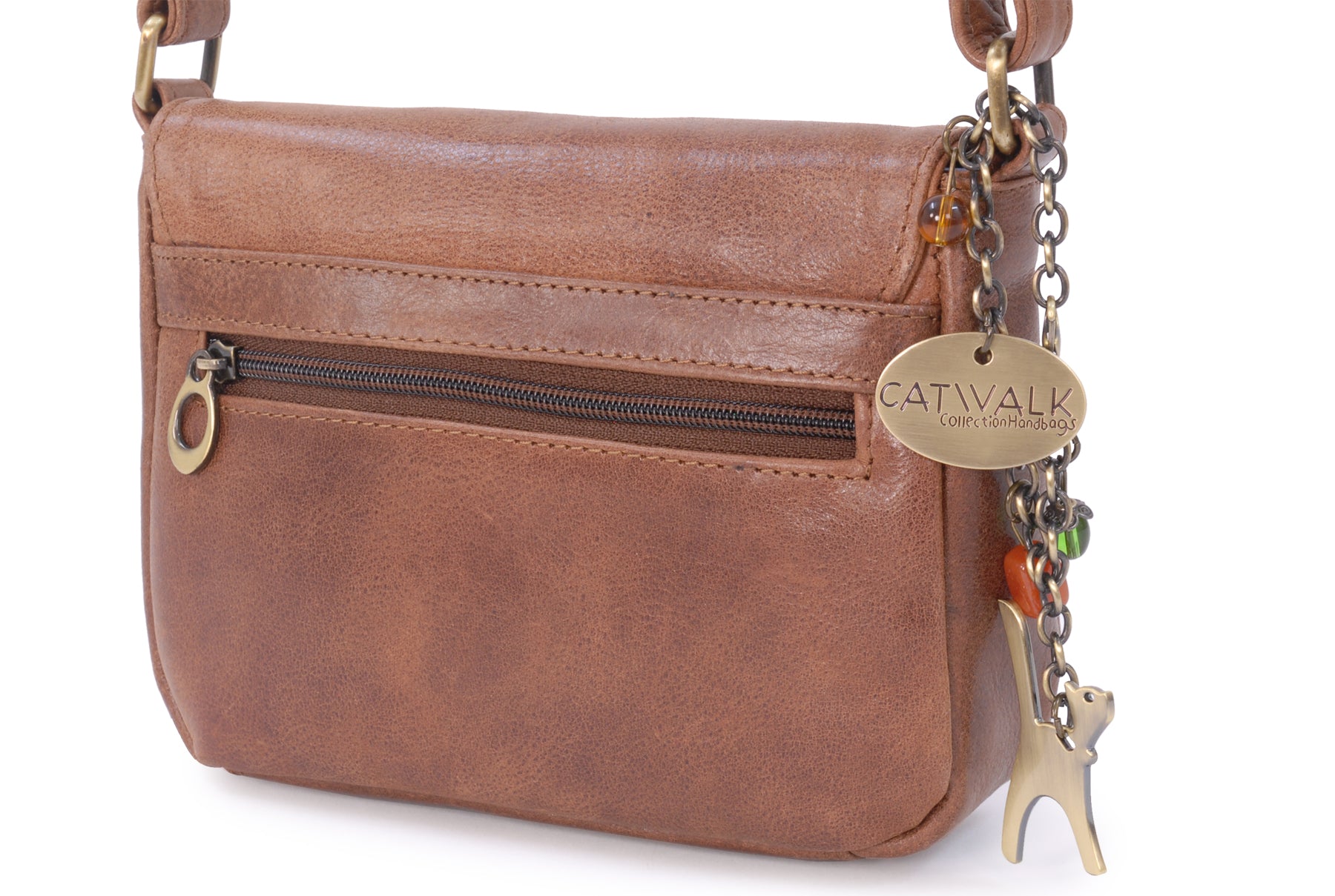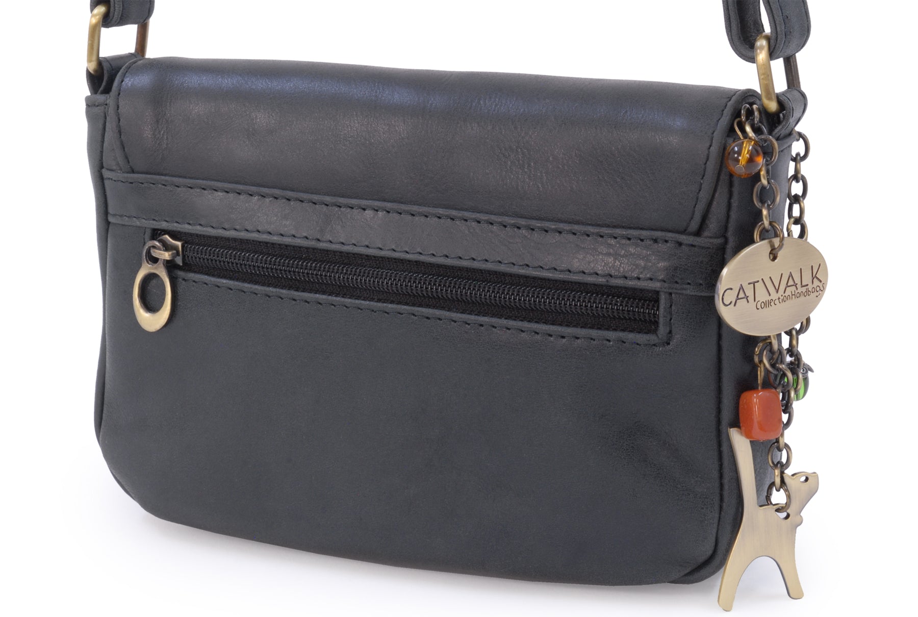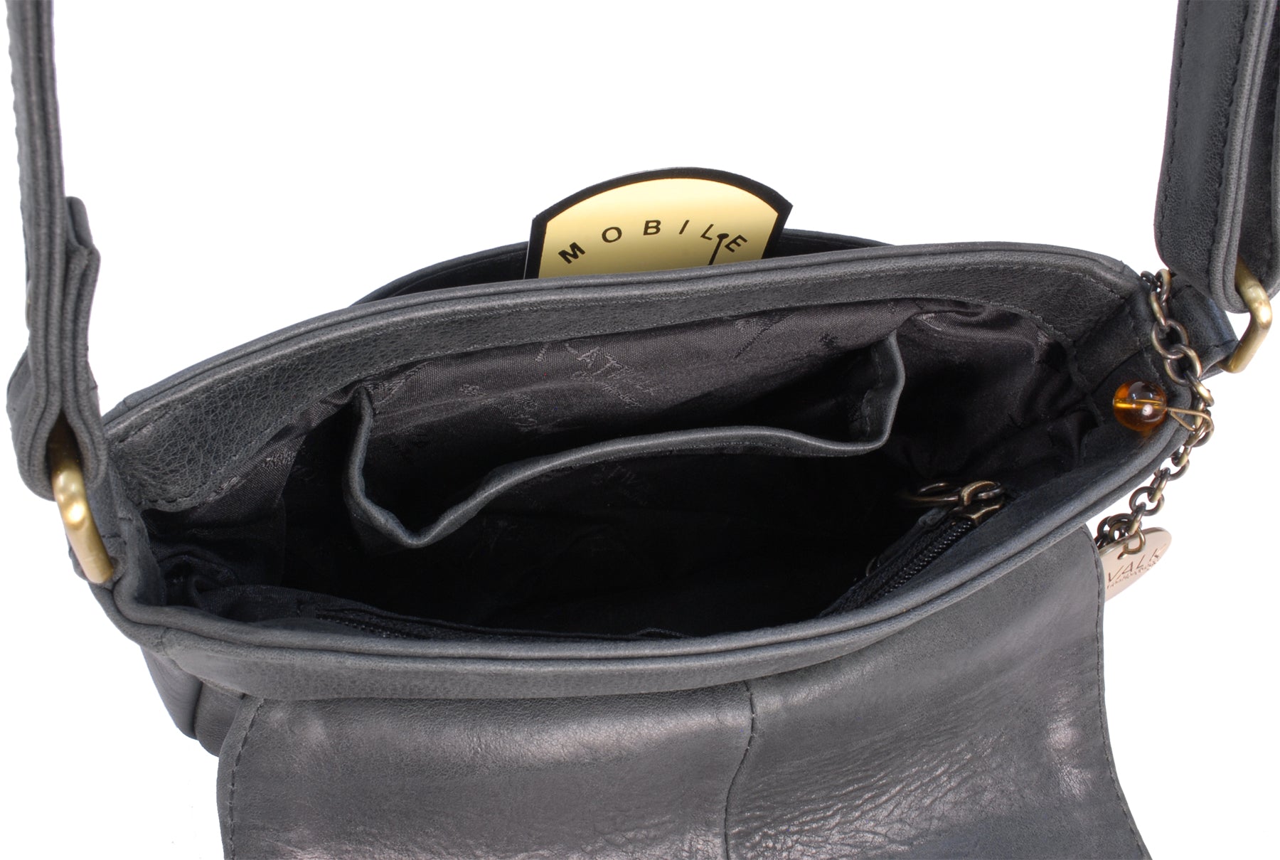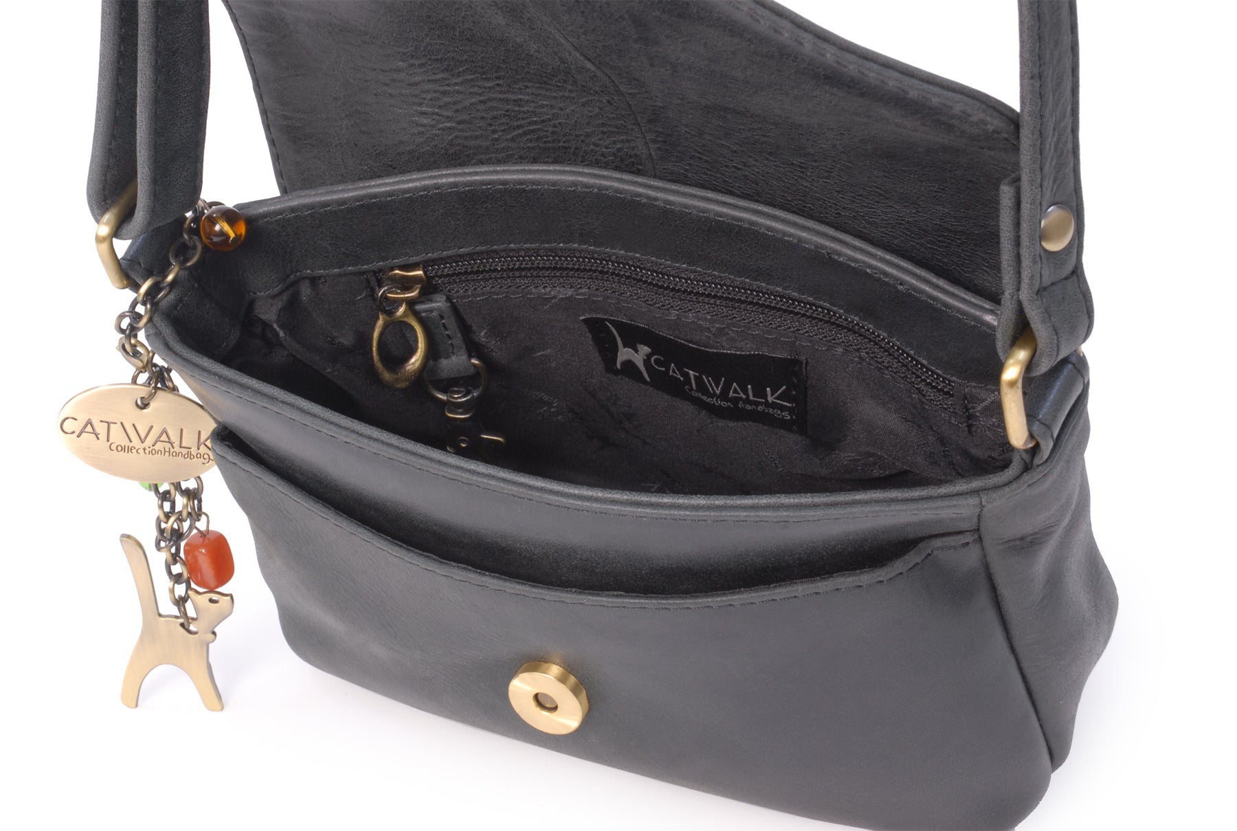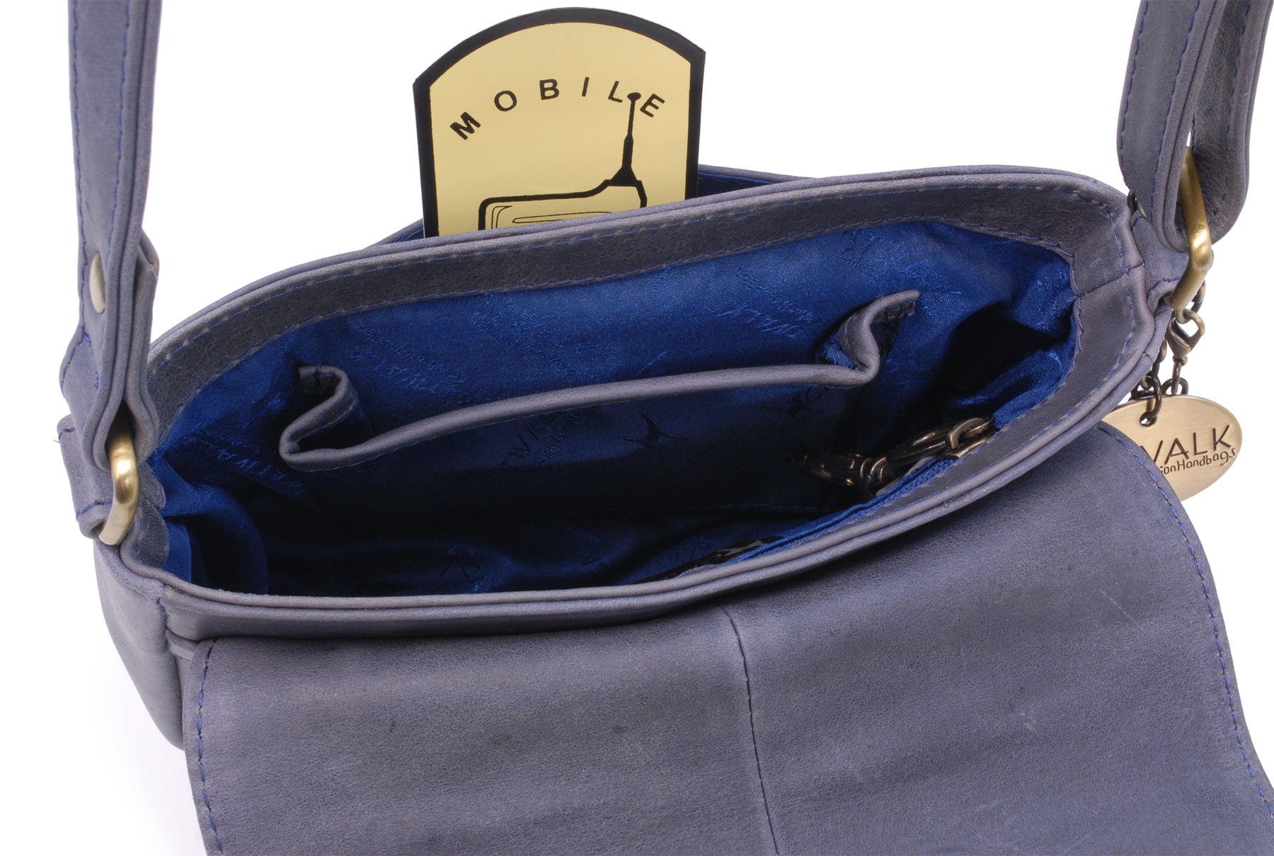 Pockets: 1 Main Compartment + 1 Interior Rear Zipped Pocket + 1 Leather Topped Mobile Phone Holder + 1 Spring Clip Key Fob + 1 Open Front Pocket + 1 Outer Rear Zipped Pocket