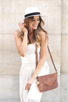 An adjustable leather strap enables the bag to be worn over-the-shoulder or hands-free across-the-body.