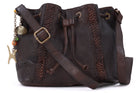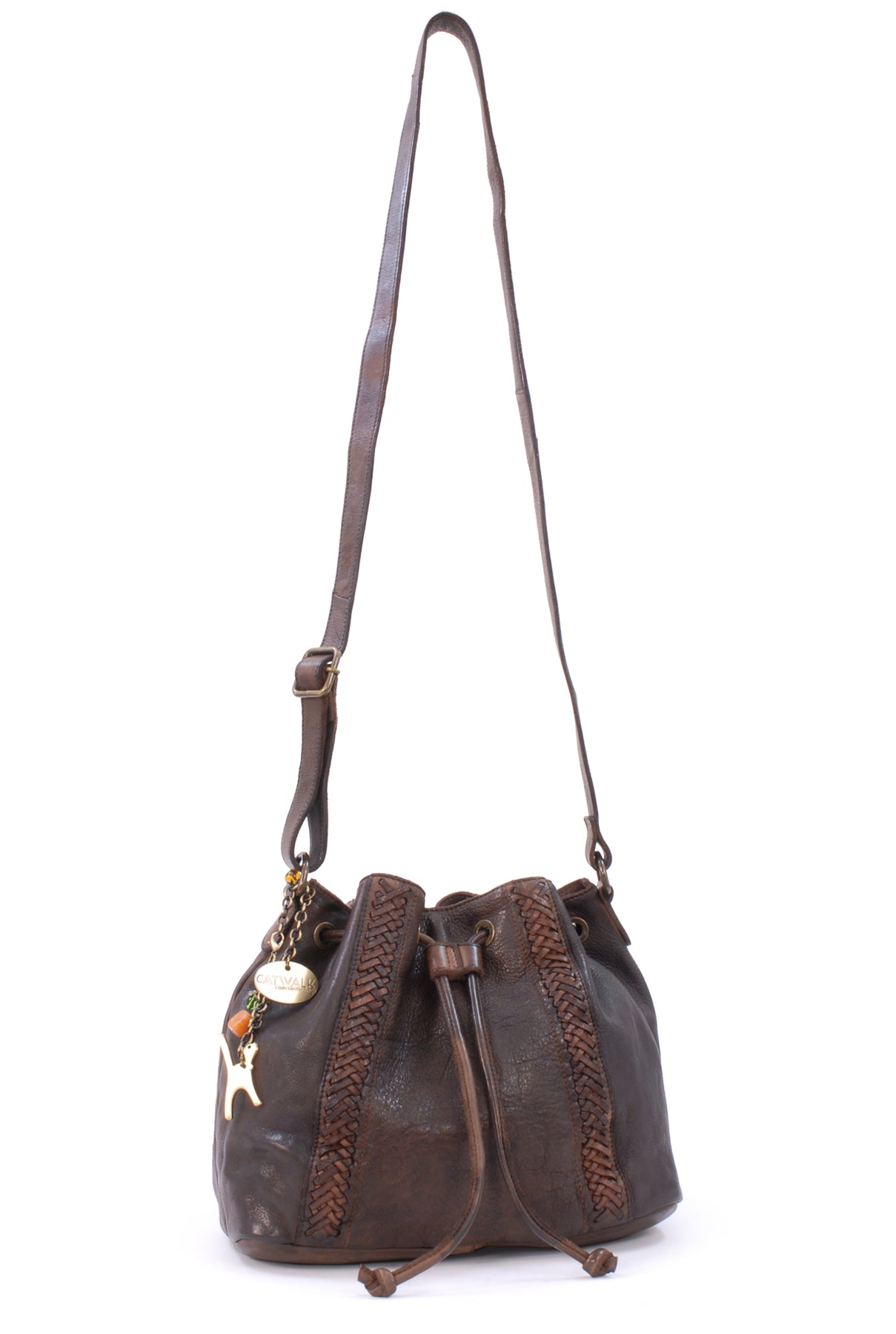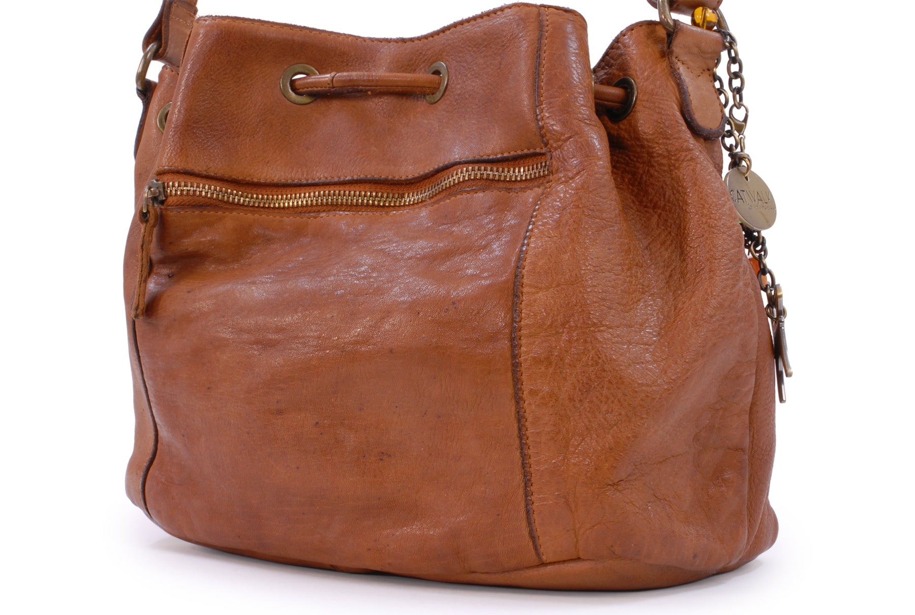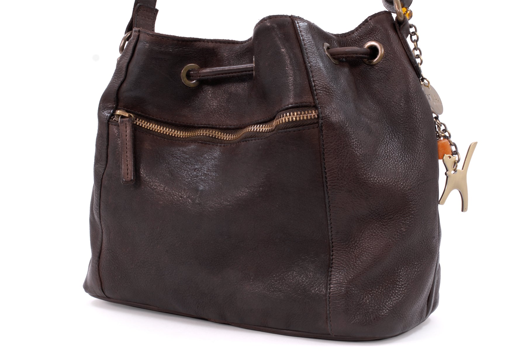Elegant and incredibly chic, this drawstring bucket bag is perfect for shopping trips, evening meals, and everything in between. Features include ruched soft leather, decorative brass eyelets, and a robust leather drawstring.