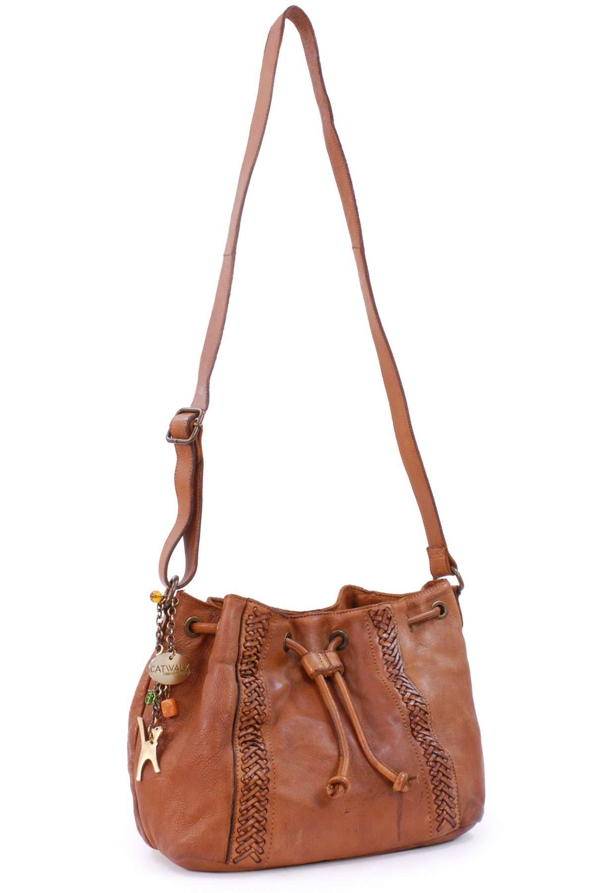 A STYLISH LEATHER CROSS-BODY BAG WITH LONG SHOULDER STRAP