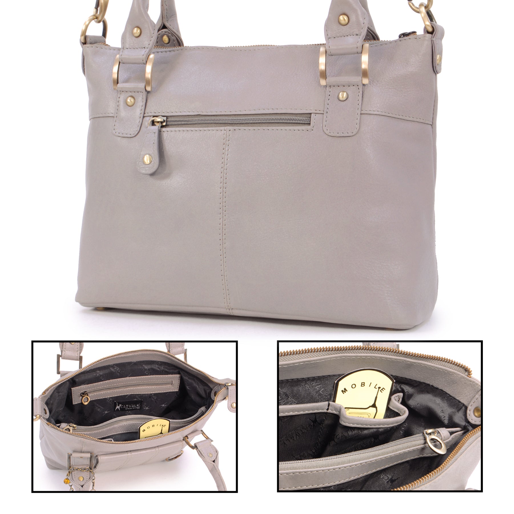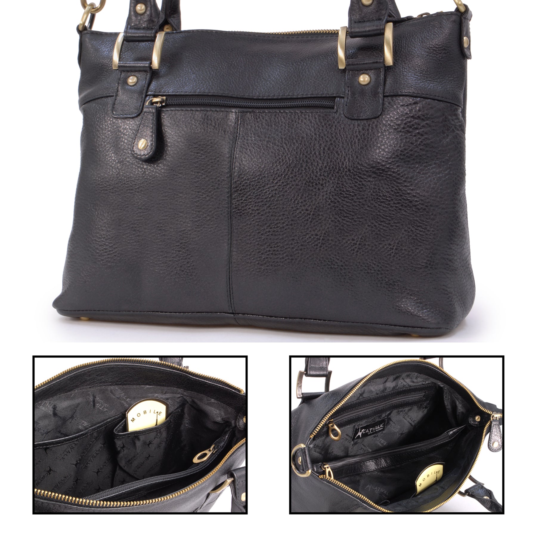 There is a handy zipped outer pocket on the rear of the bag. Handles are elegantly rolled for a comfortable grip in the hand.