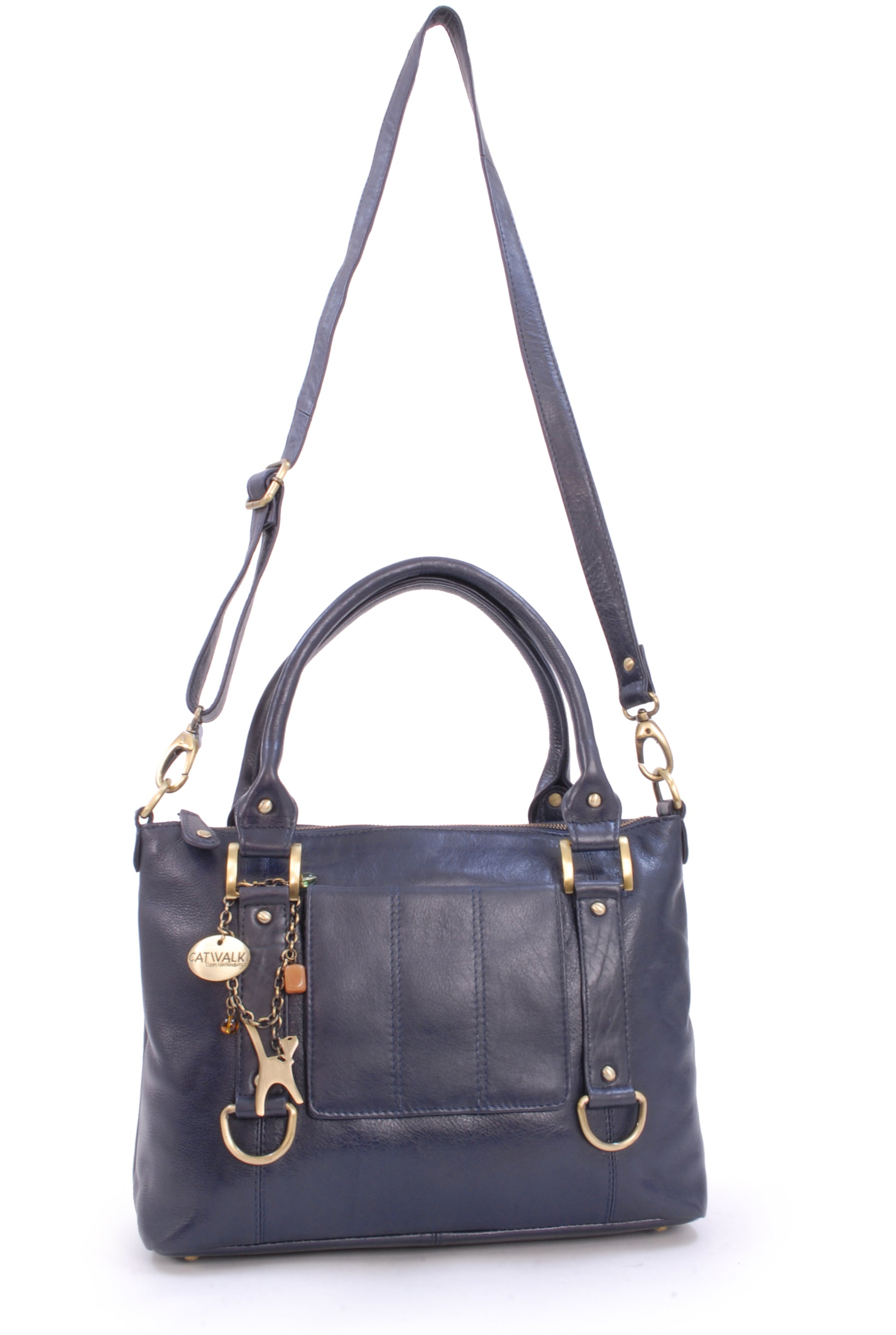The long detachable, adjustable strap is made from leather; wear either over-the-shoulder or hands-free across-the-body.