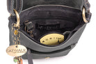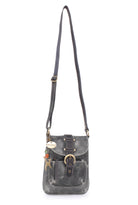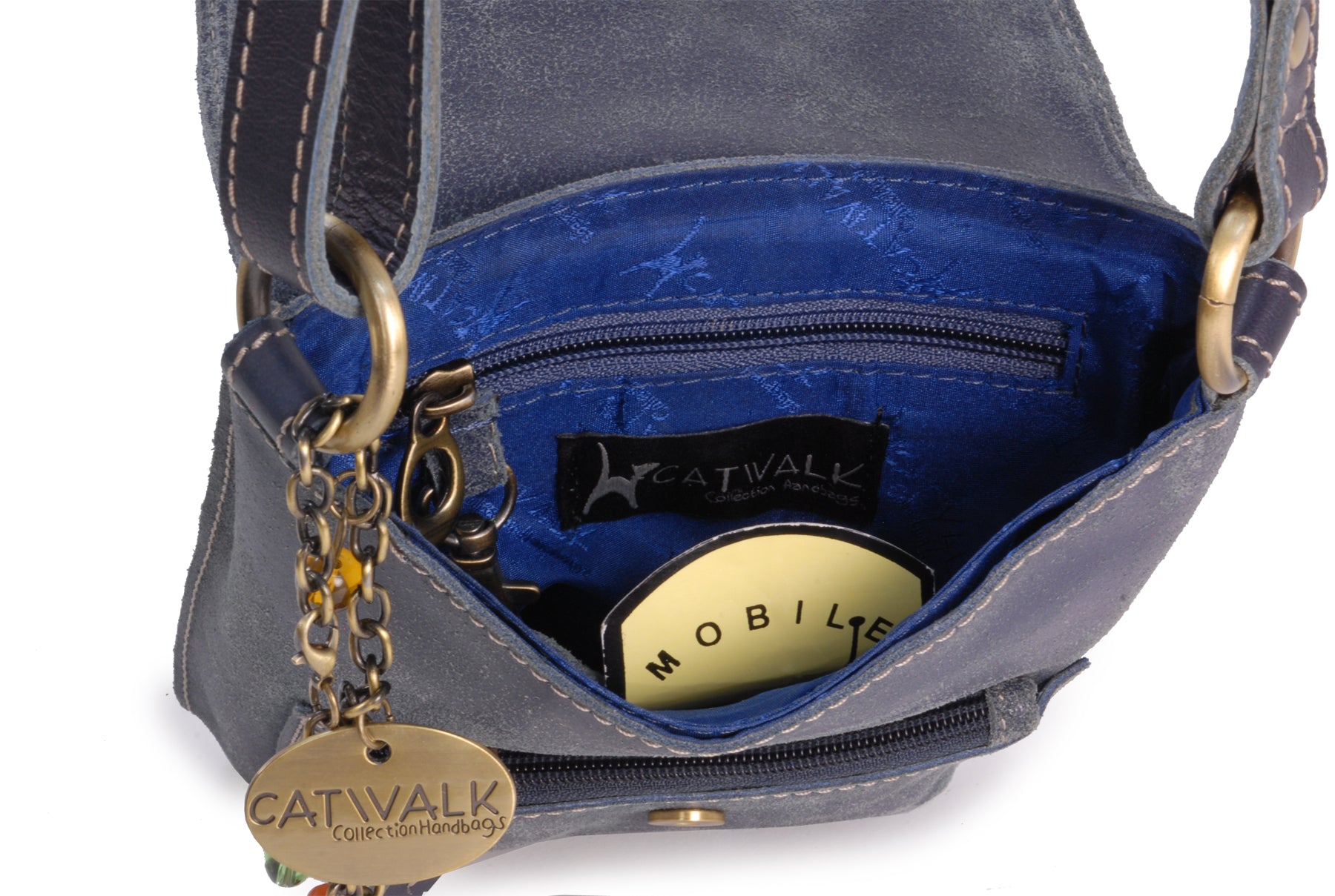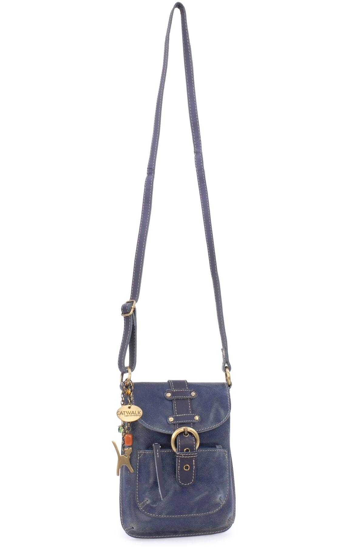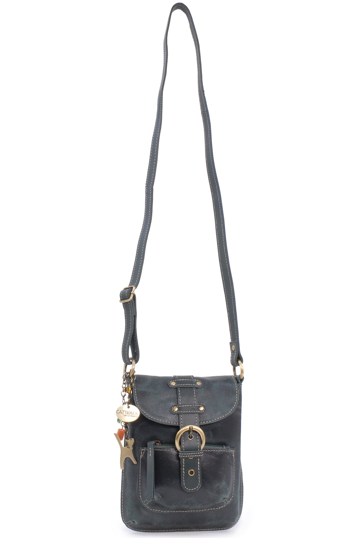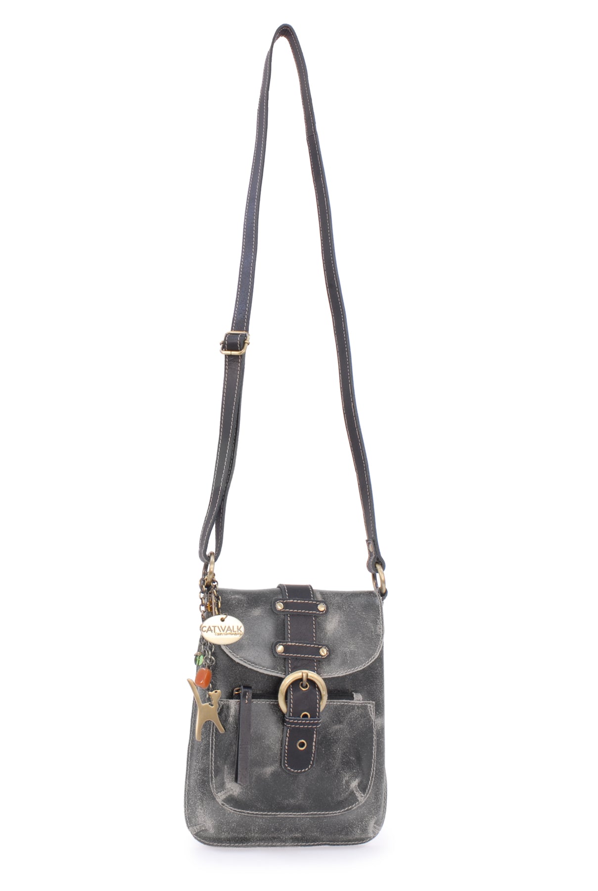 An adjustable leather strap enables the bag to be worn over-the-shoulder or hands-free across-the-body.