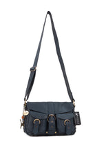 The main compartment is roomy due to the bag having a broad, flat studded base and there are plenty of extra pockets thoughtfully provided to organise coins, pens, store cards, mobile phone, i-Pod and other such knick-knacks.