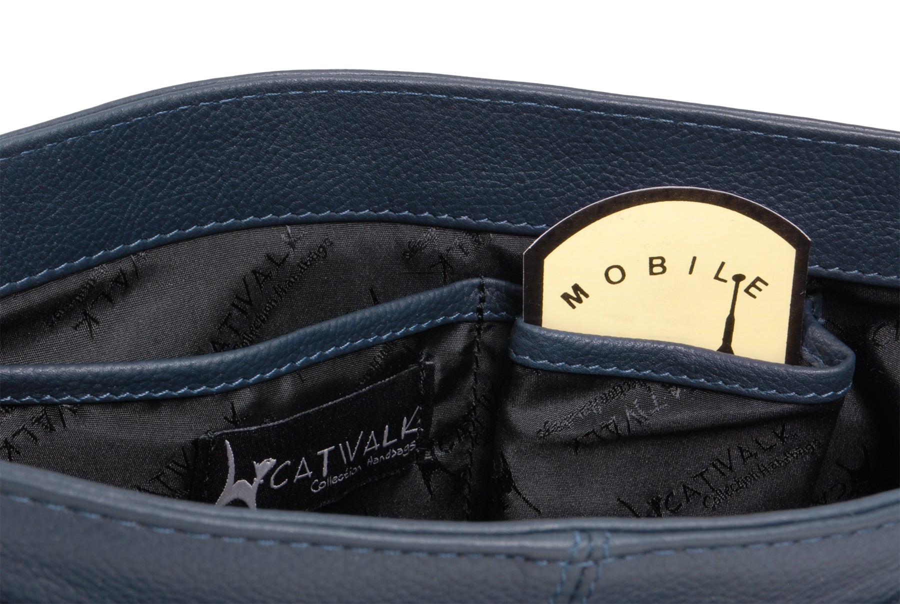 Pockets: 1 Main Compartment + 1 Interior Side Zipped Pocket + 1 Leather topped Mobile Phone Holder + 1 Leather topped Extra Open Pocket + 1 Key Fob + 3 Credit Card Holders + 2 Pen Holders + 1 Zipped Coin Pocket + 2 Outer Front Pockets