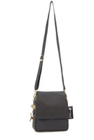 The long adjustable leather strap enables the bag to be worn on the shoulder or hands-free across-the-body. Chunky brass spring clips make this an absolute must-have bag.