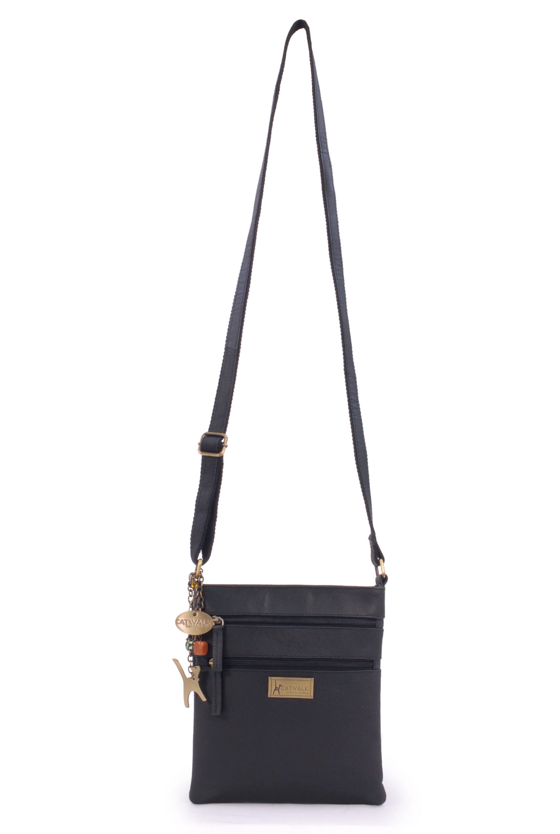 A STYLISH LEATHER CROSS-BODY BAG WITH LONG SHOULDER STRAP