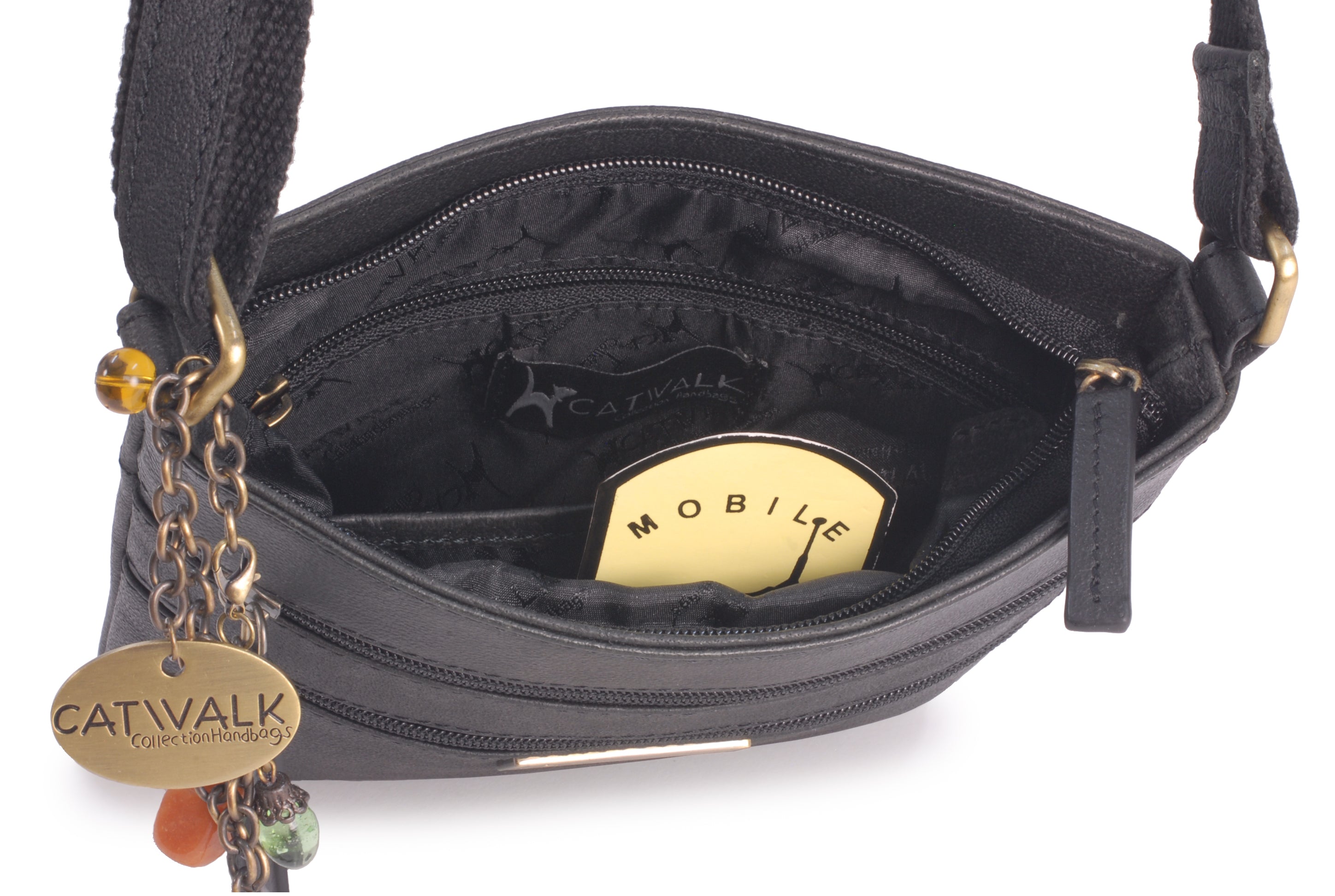 This is a small, slim fitting cross-body bag for those essential items such as purse and make-up.