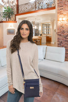 An adjustable hardwearing leather topped, polyester strap enables the bag to be worn over-the-shoulder or hands-free across-the-body. The long strap is fully adjustable with a sliding brass grip for the perfect fit and there are no buckles to snag clothes.