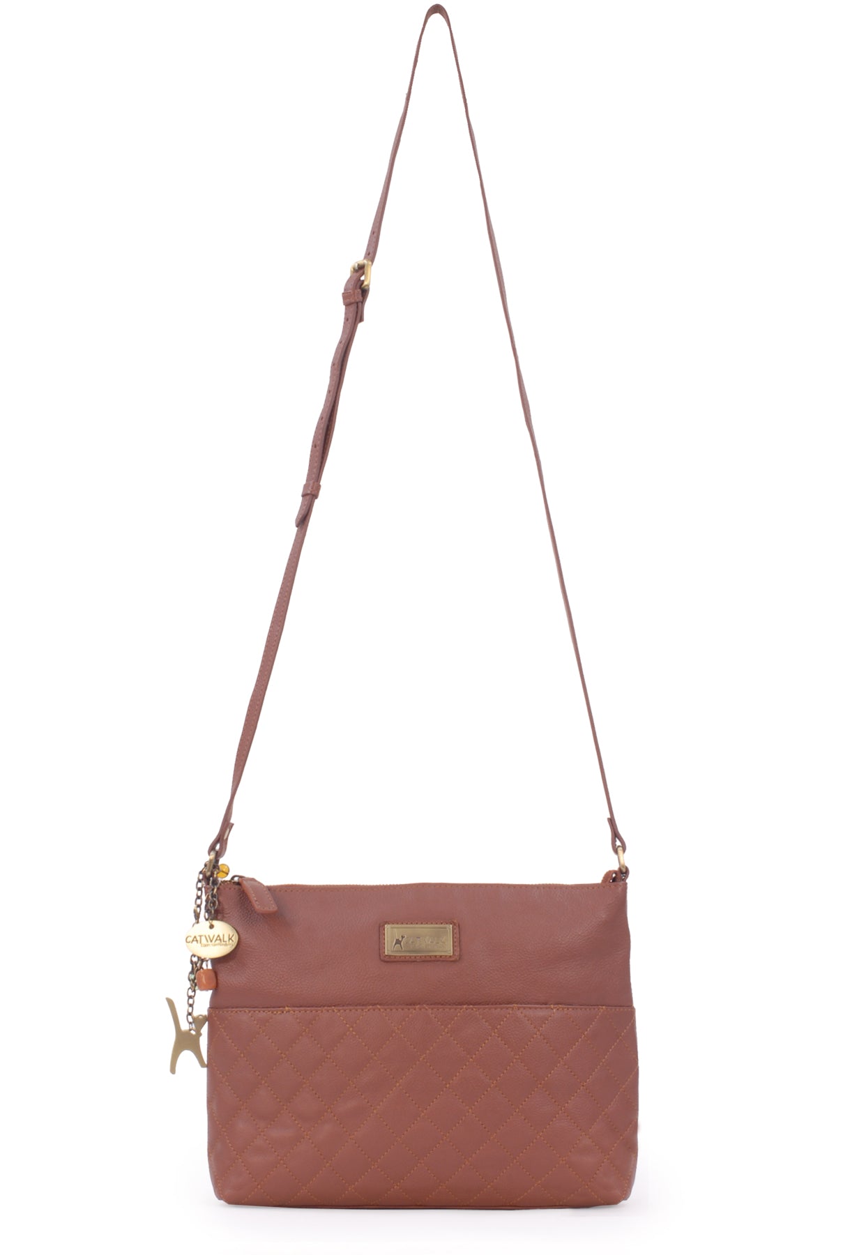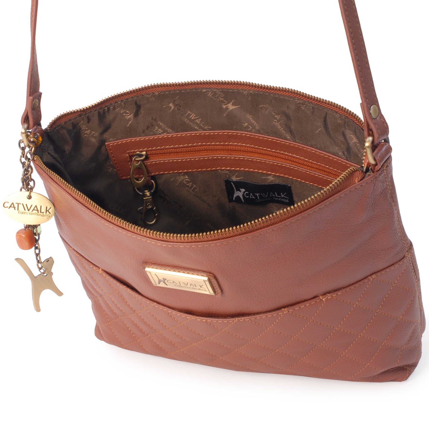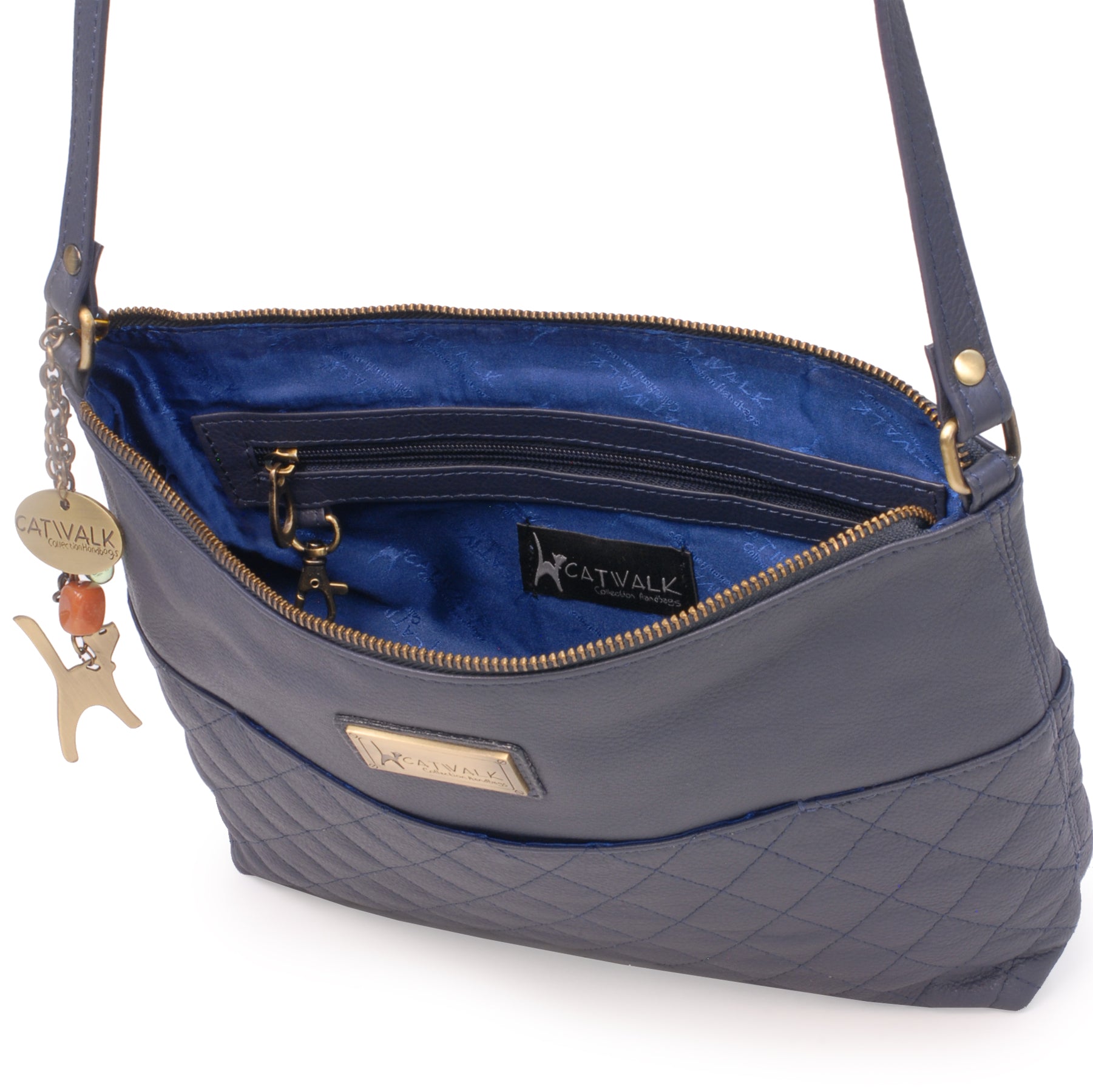An adjustable leather strap enables the bag to be worn over-the-shoulder or hands-free across-the-body.