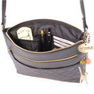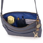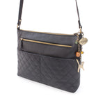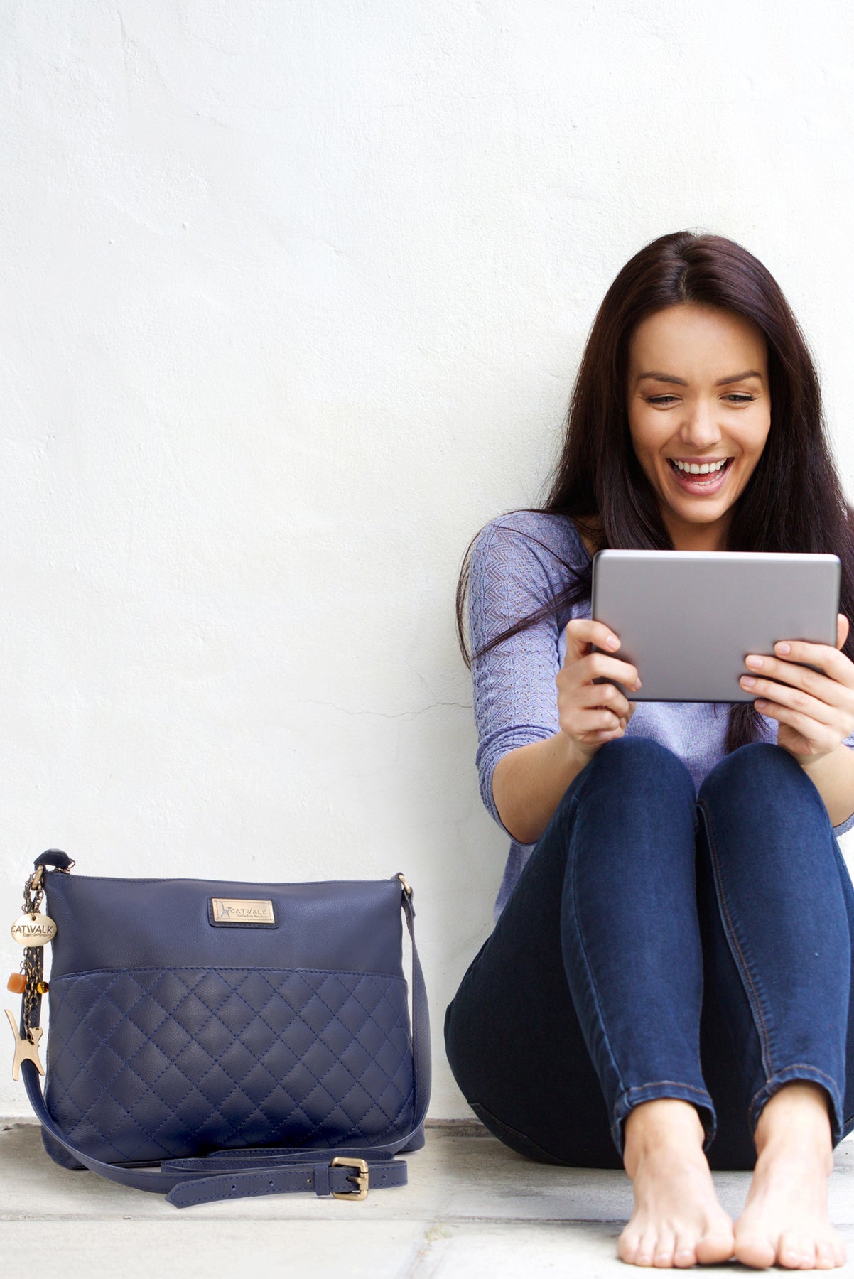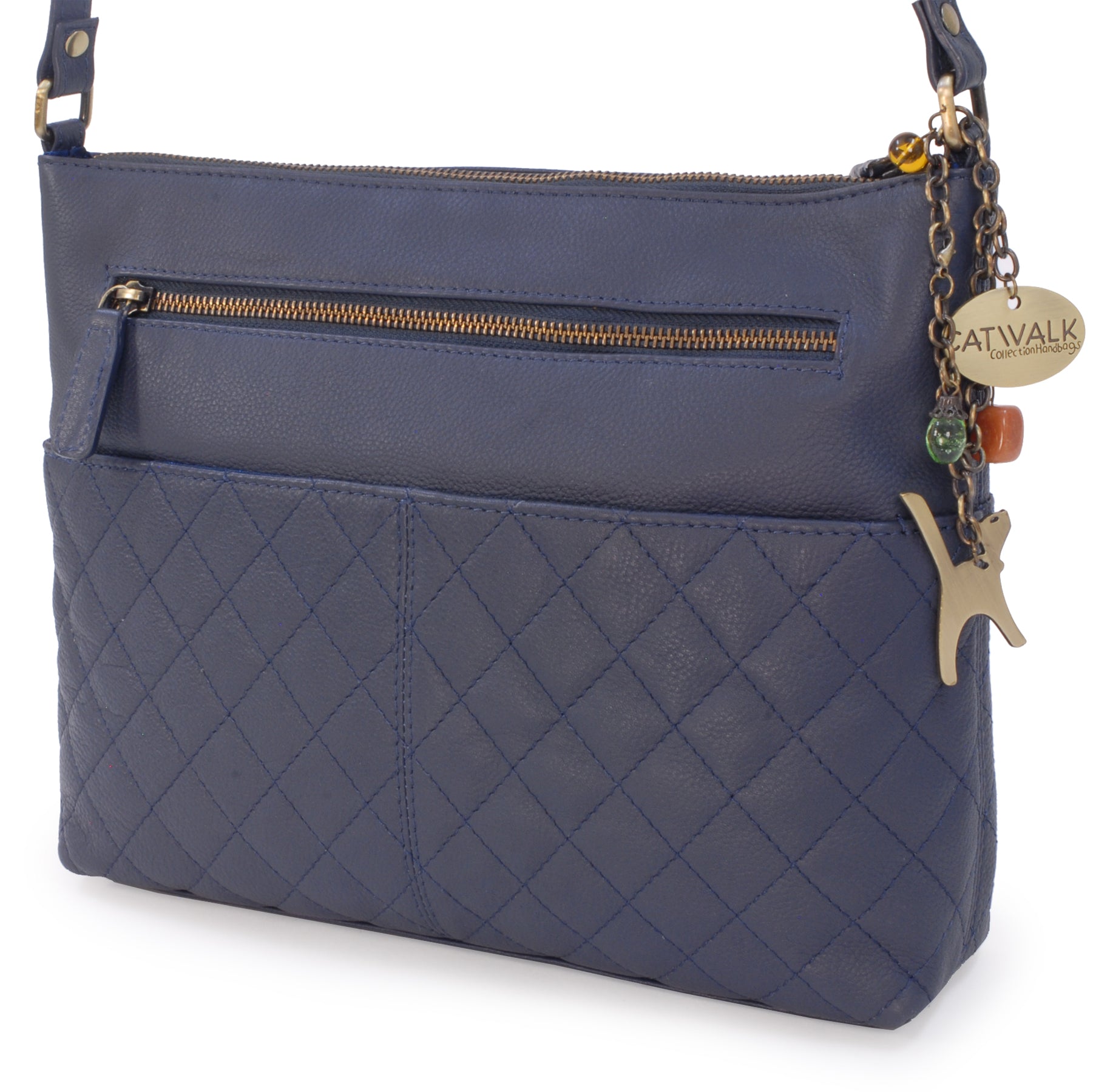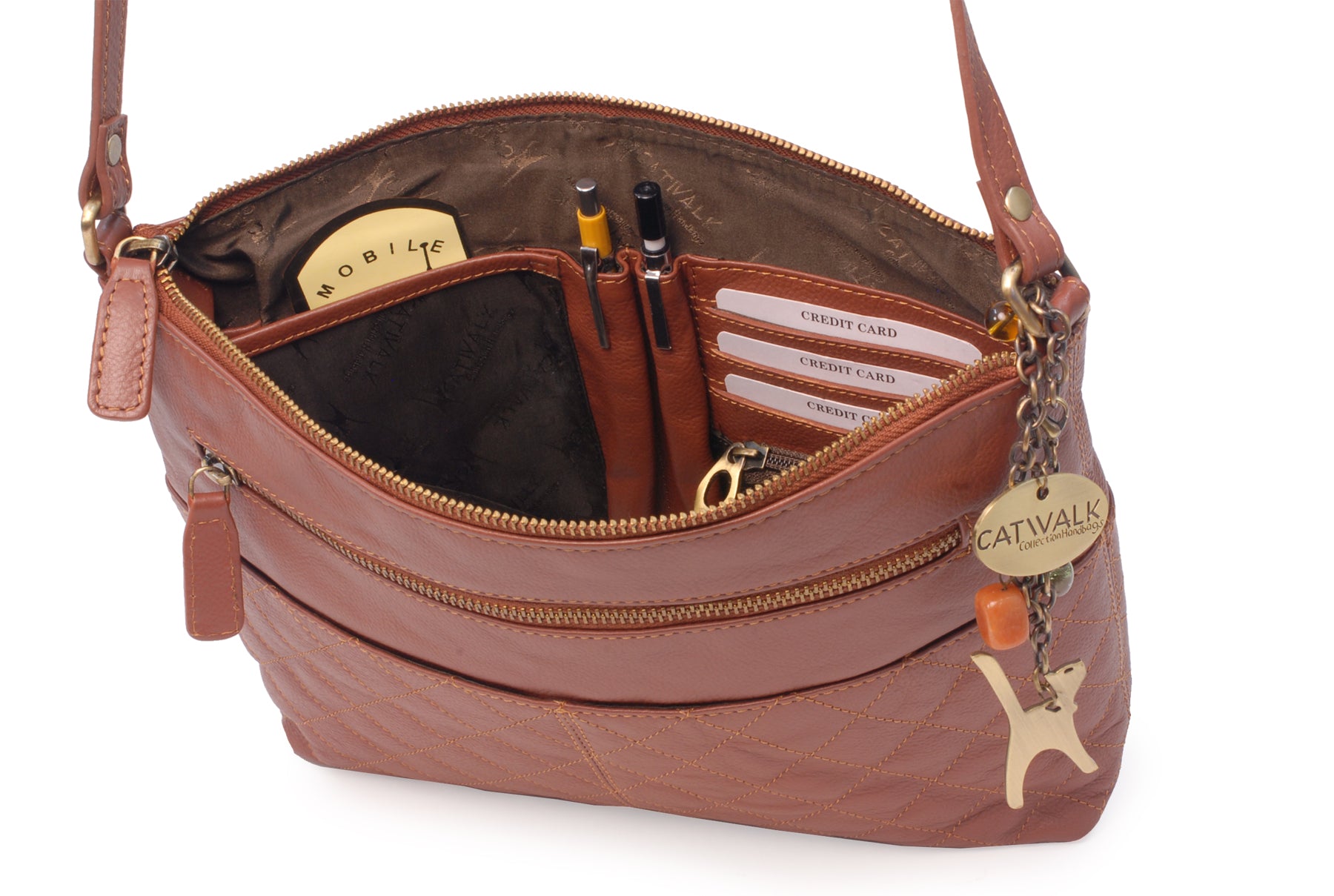 An adjustable leather strap enables the bag to be worn over-the-shoulder or hands-free across-the-body.
