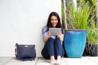 This is a medium sized, slim fitting messenger-style bag. It can accommodate A5 sized diary, purse, make-up case and umpteen other handbag essentials. The interior is beautifully lined with signature fabric. Interior capacity: 27x22x2cms.