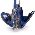 An adjustable, detachable leather strap enables the bag to be worn over-the-shoulder or hands-free across-the-body.