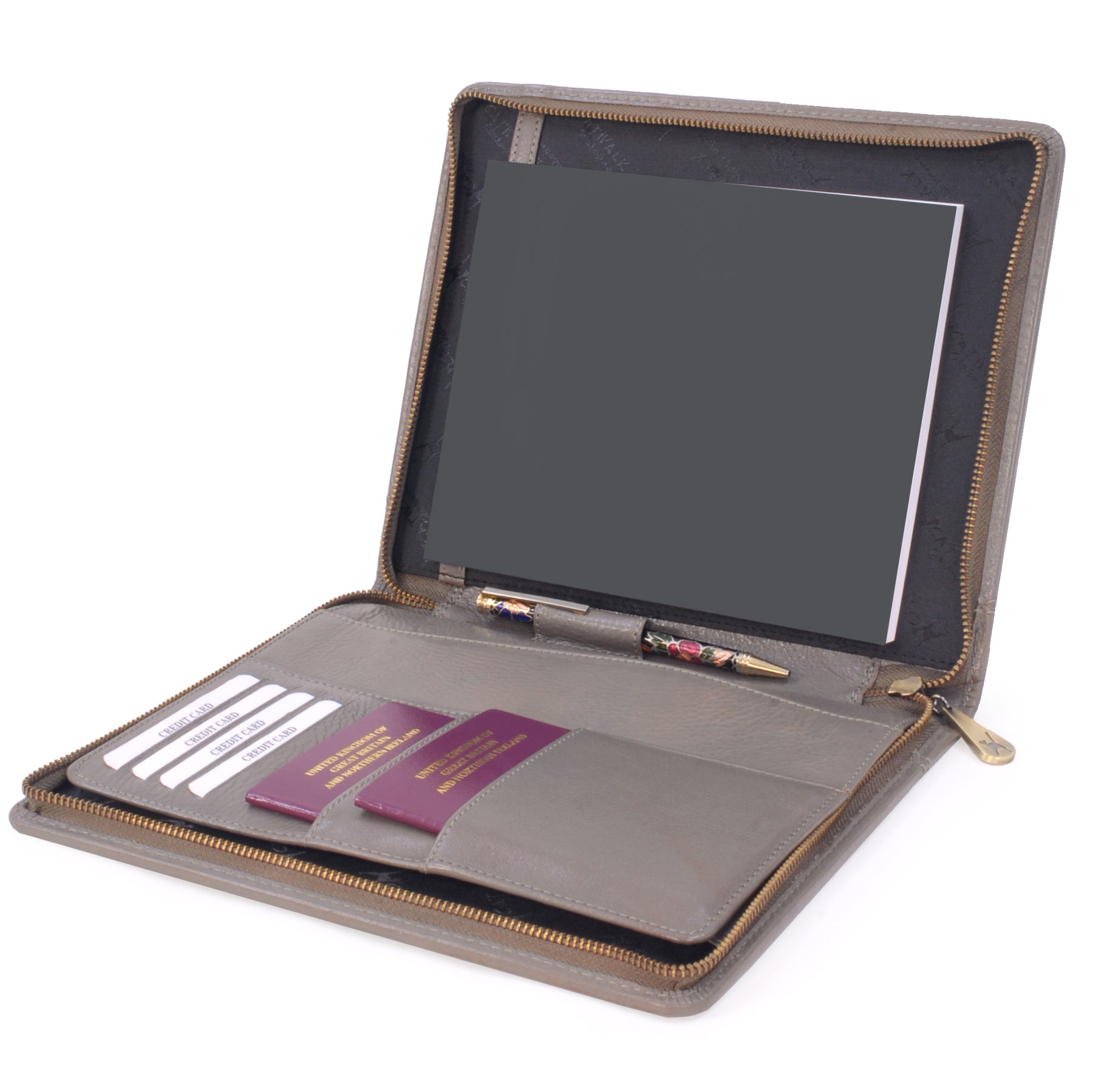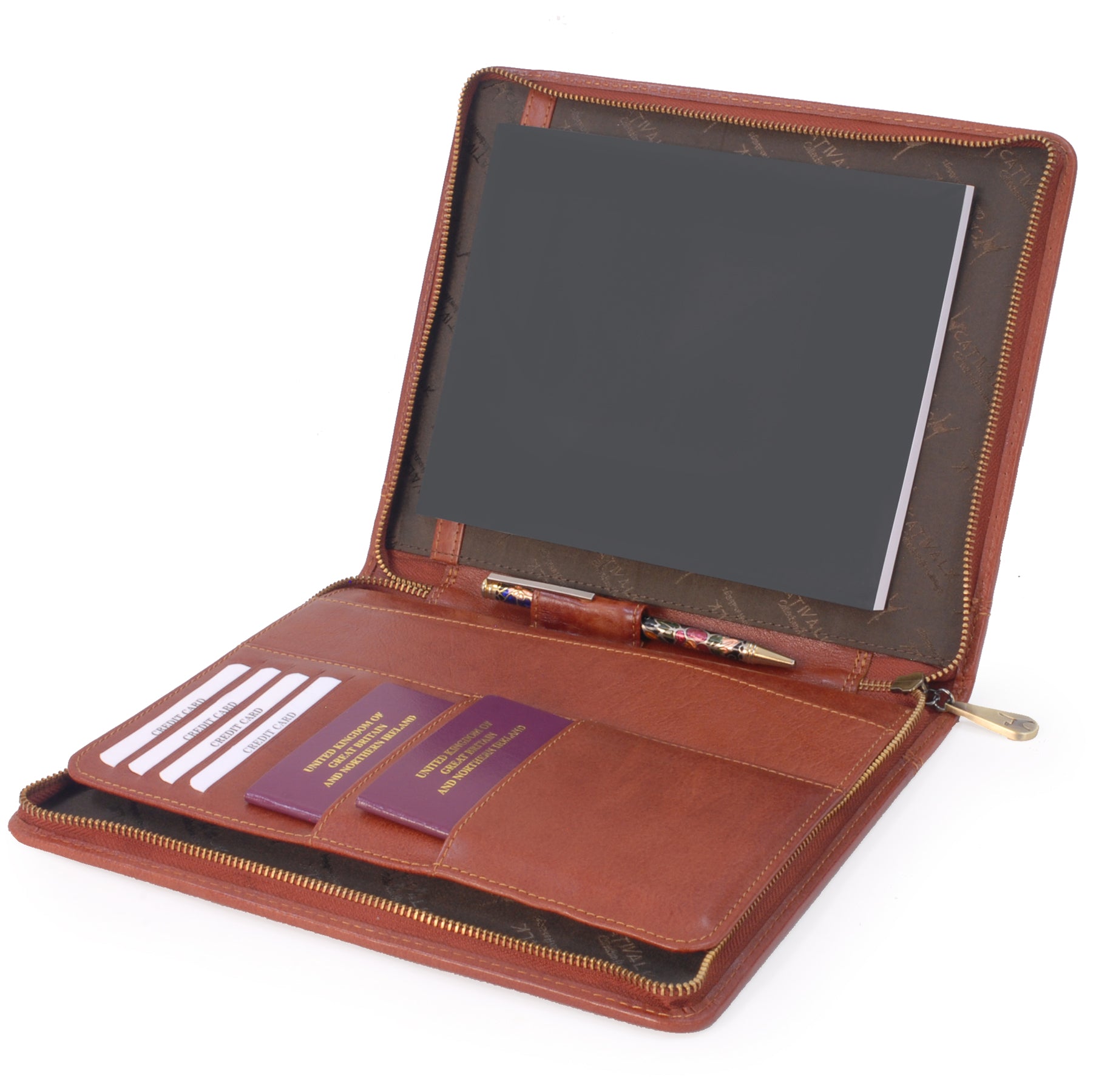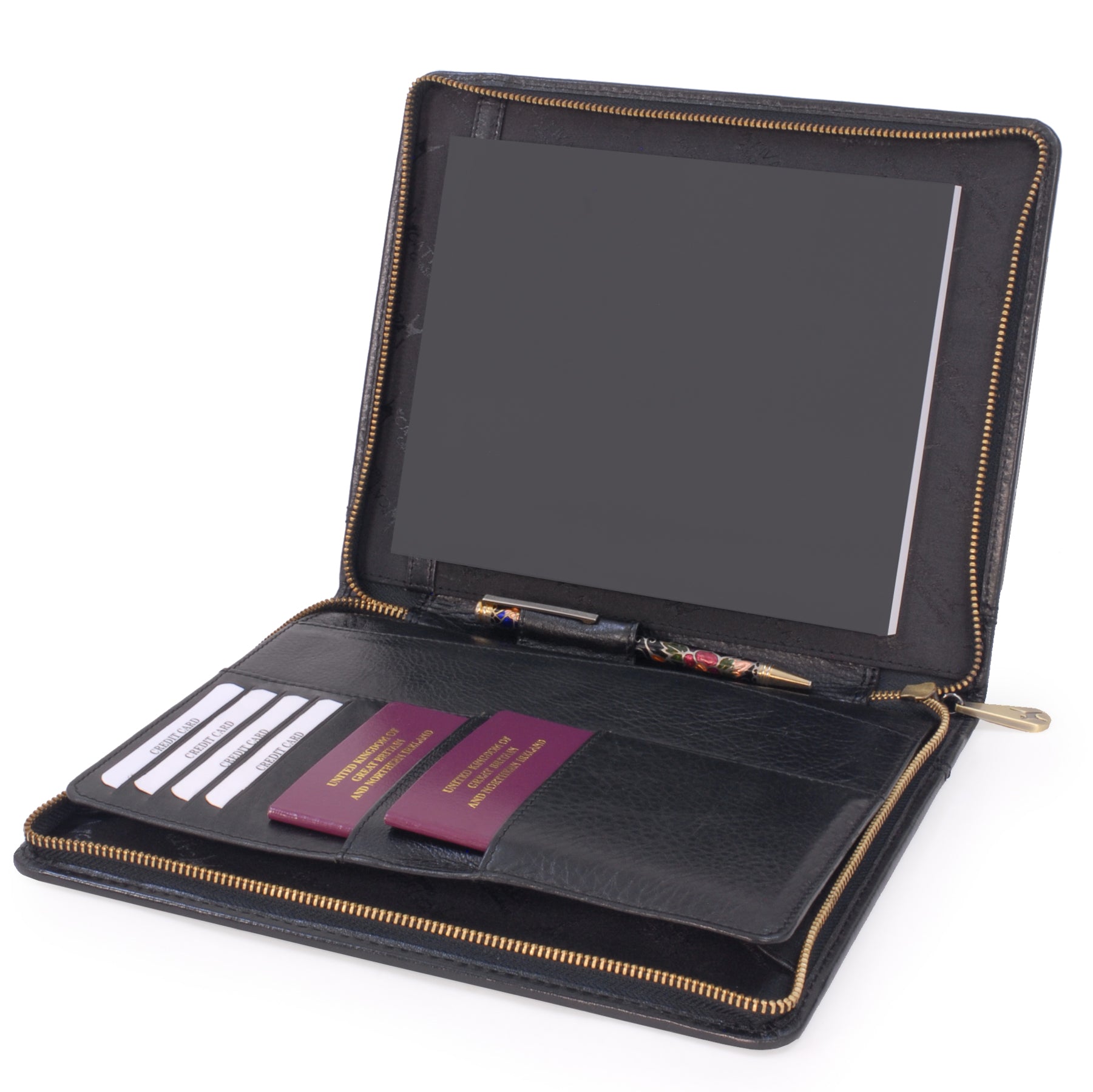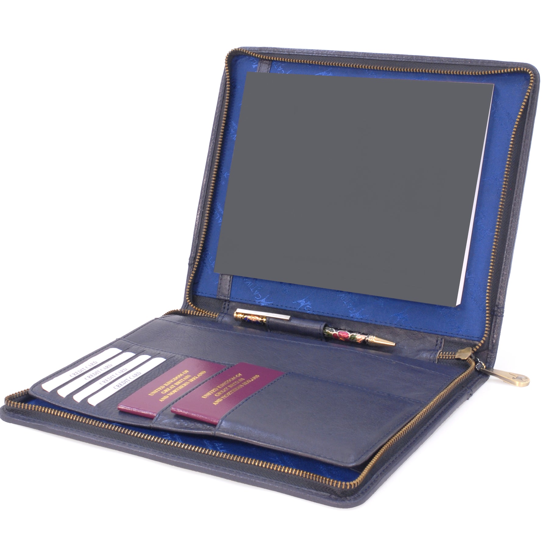 This neat zip folder is designed to be comfortably carried under the arm. Organisational features include pockets for pen, business cards and A5 notepad. You can tuck a tablet behind the interior leather sleeve.Fits: (iPad, iPad Mini, iPad Air, iPad Pro 11”, tablets, Galaxy Tab 3, 4, 5, A etc.)