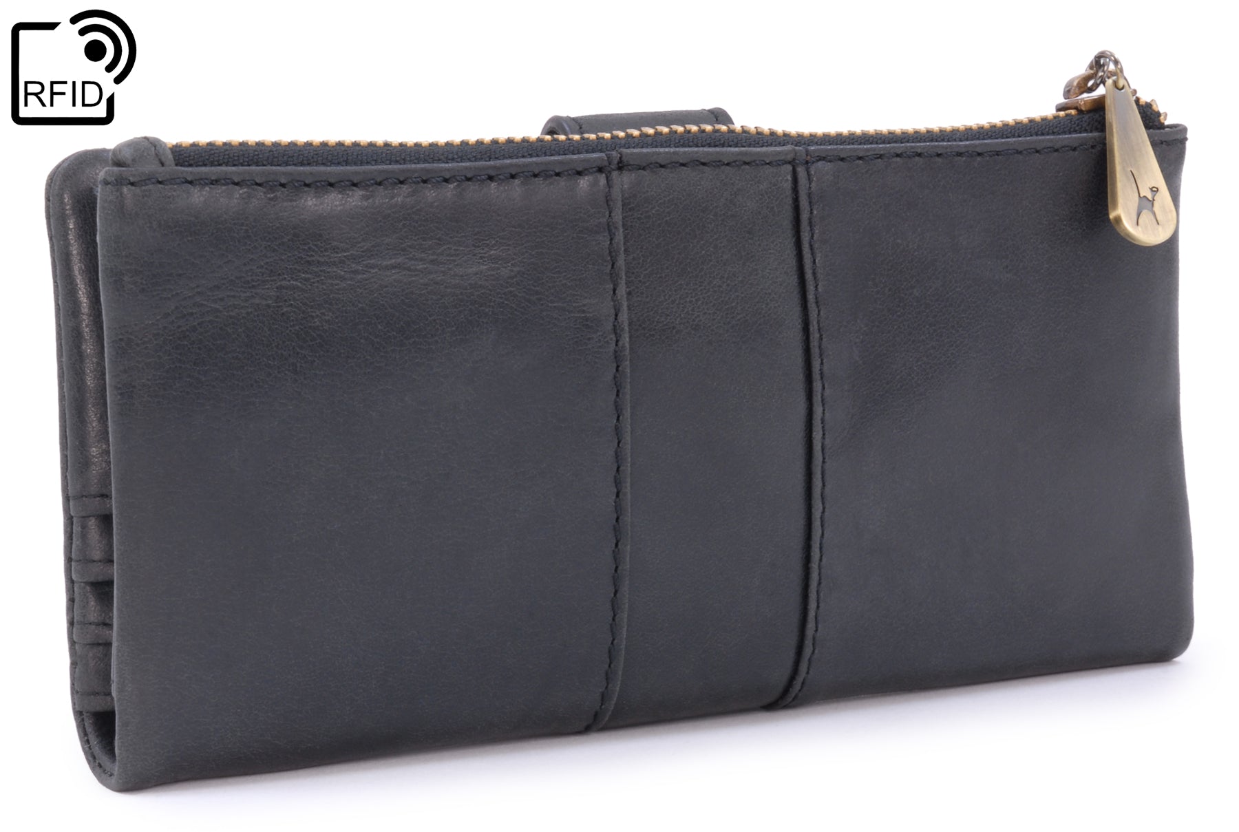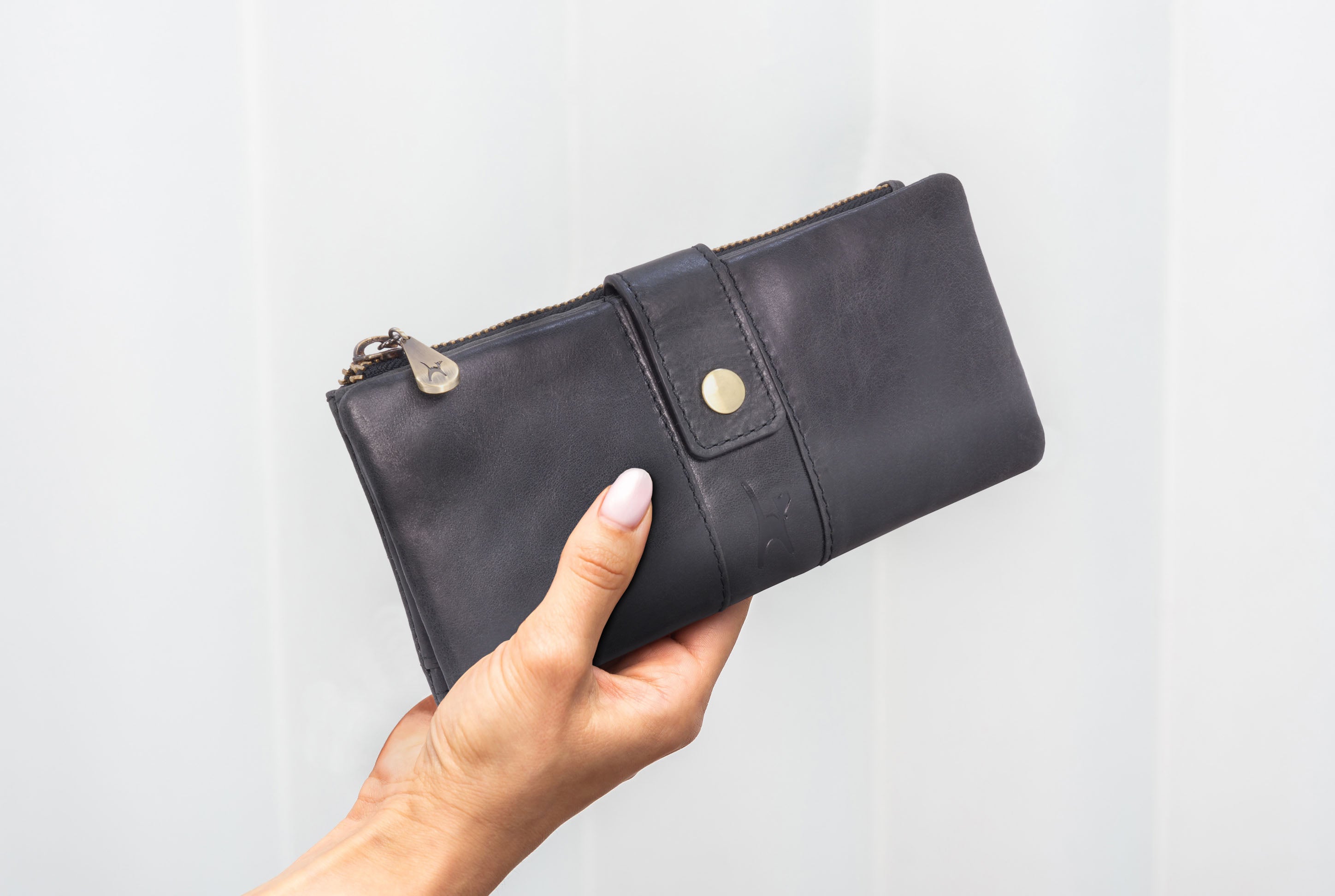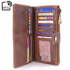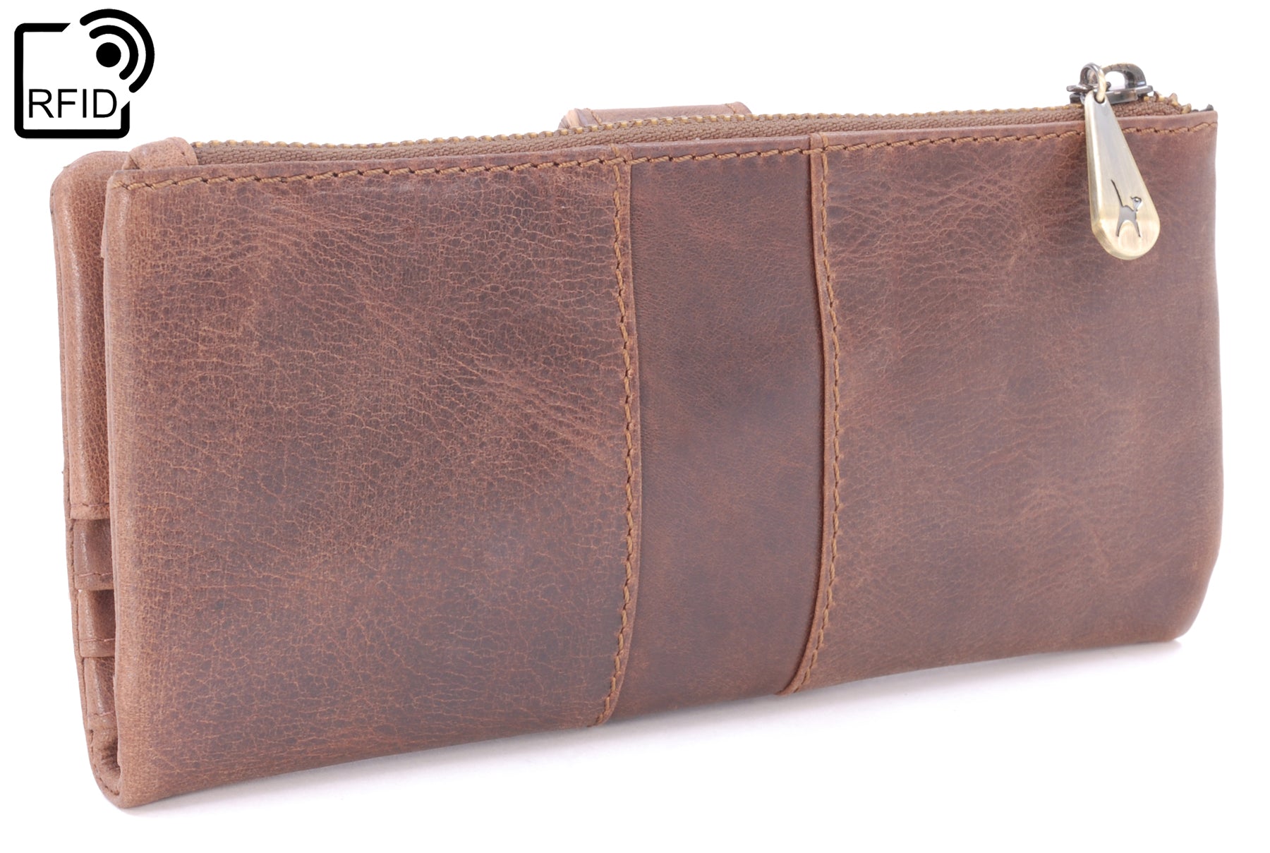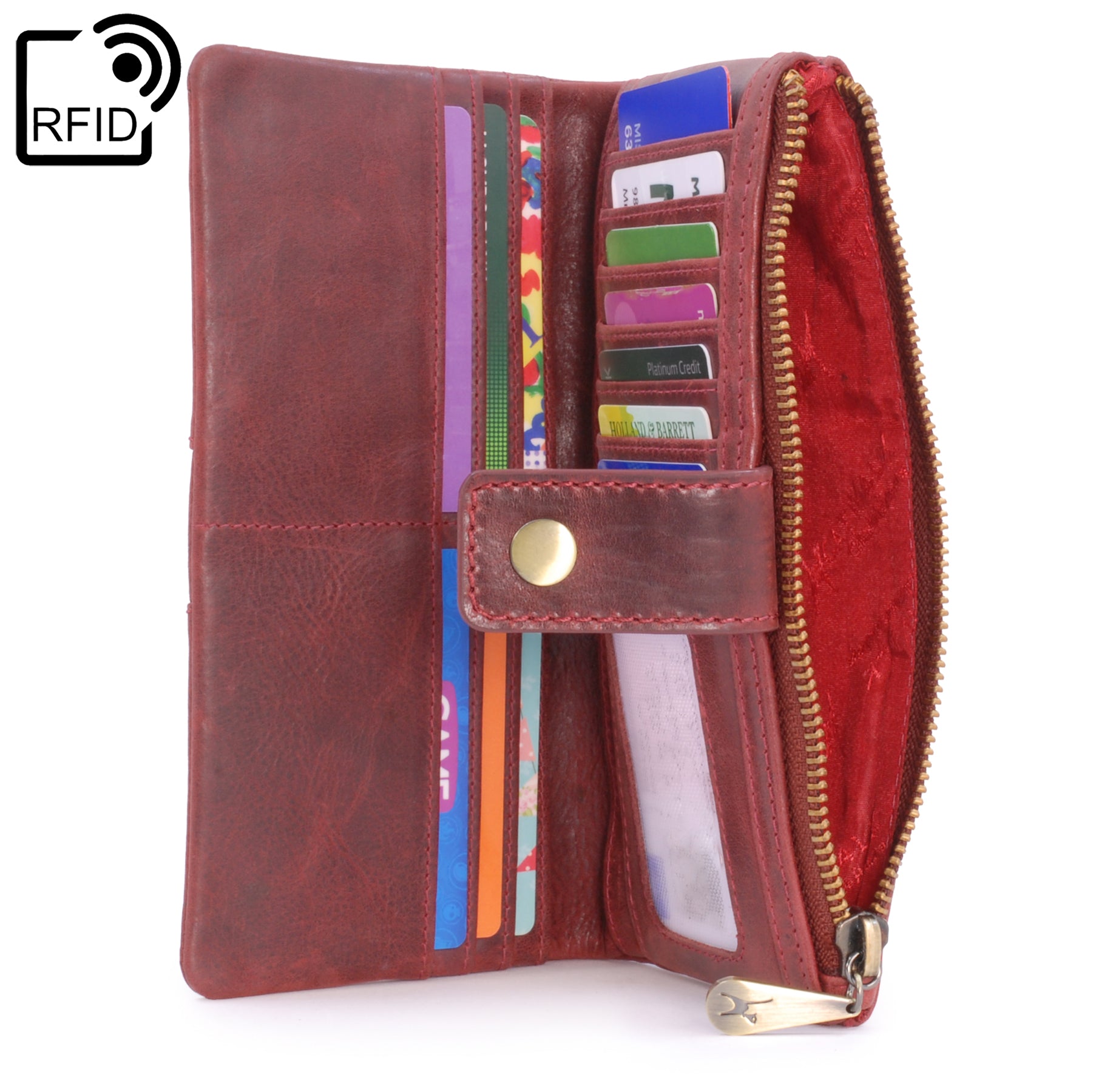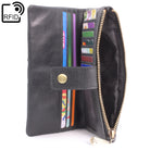 The Fiona large leather purse combines practical design with standout details. This ladies wallet features a distinctive Catwalk Collection Cat Logo imprinted into a solid brass zip pull, with the front panel also embossed with the signature cat logo. The secure metal brass zip coin compartment safely holds loose change. It offers space for 14 credit cards, including an ID window, along with a smart phone pocket measuring 17 x 8.5 cm, making it easy to organise and access your essentials.This purse includes Nationally Accredited RFID Protection to prevent chip readers from accessing data stored in biometric passports and credit cards, helping to protect against identity theft and contactless fraud. The interior is lined with a combination of leather and signature fabric.Each Fiona purse comes in a presentation gift box, suitable as a gift for women on Valentine’s Day, Mother’s Day, Birthdays, or Christmas.