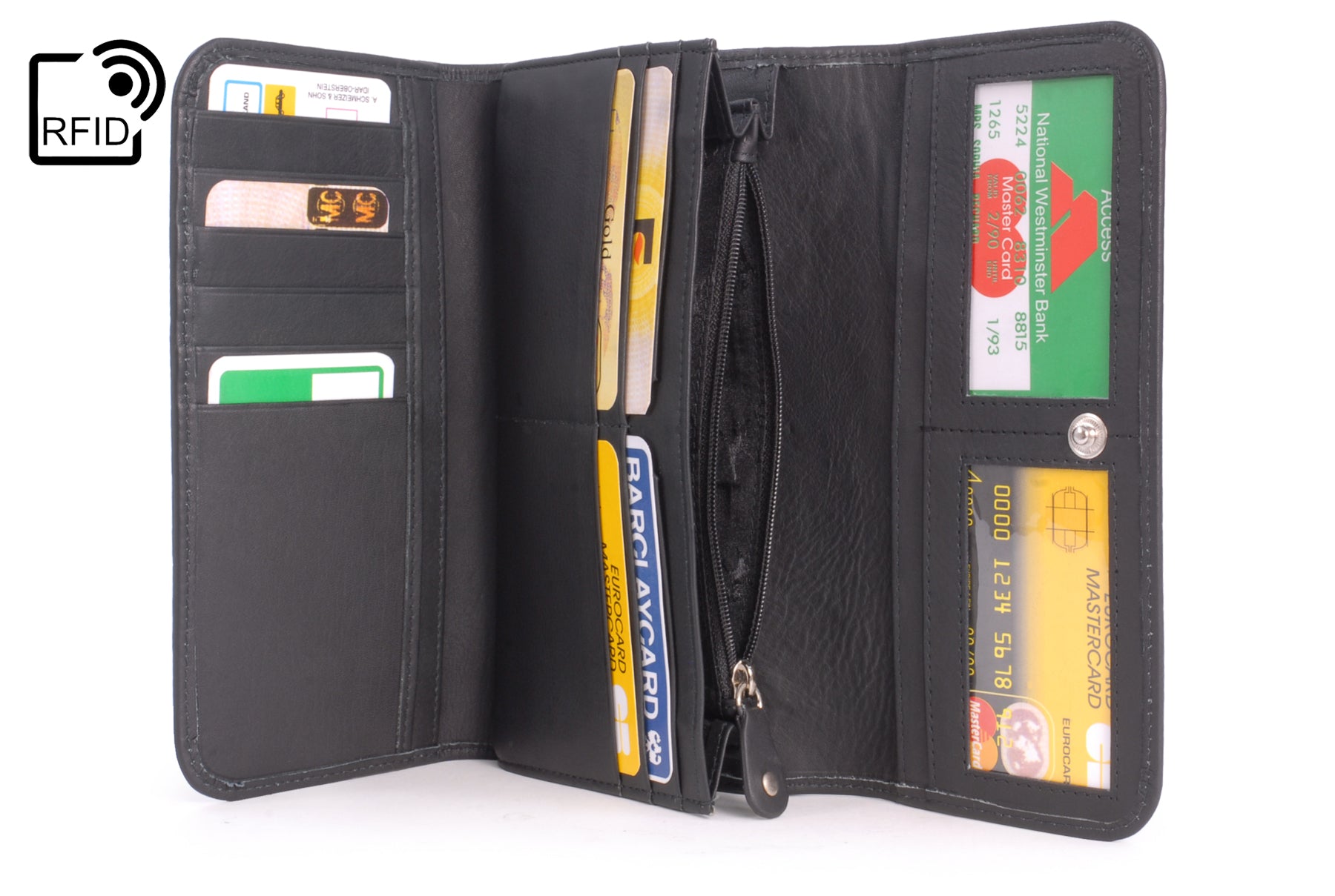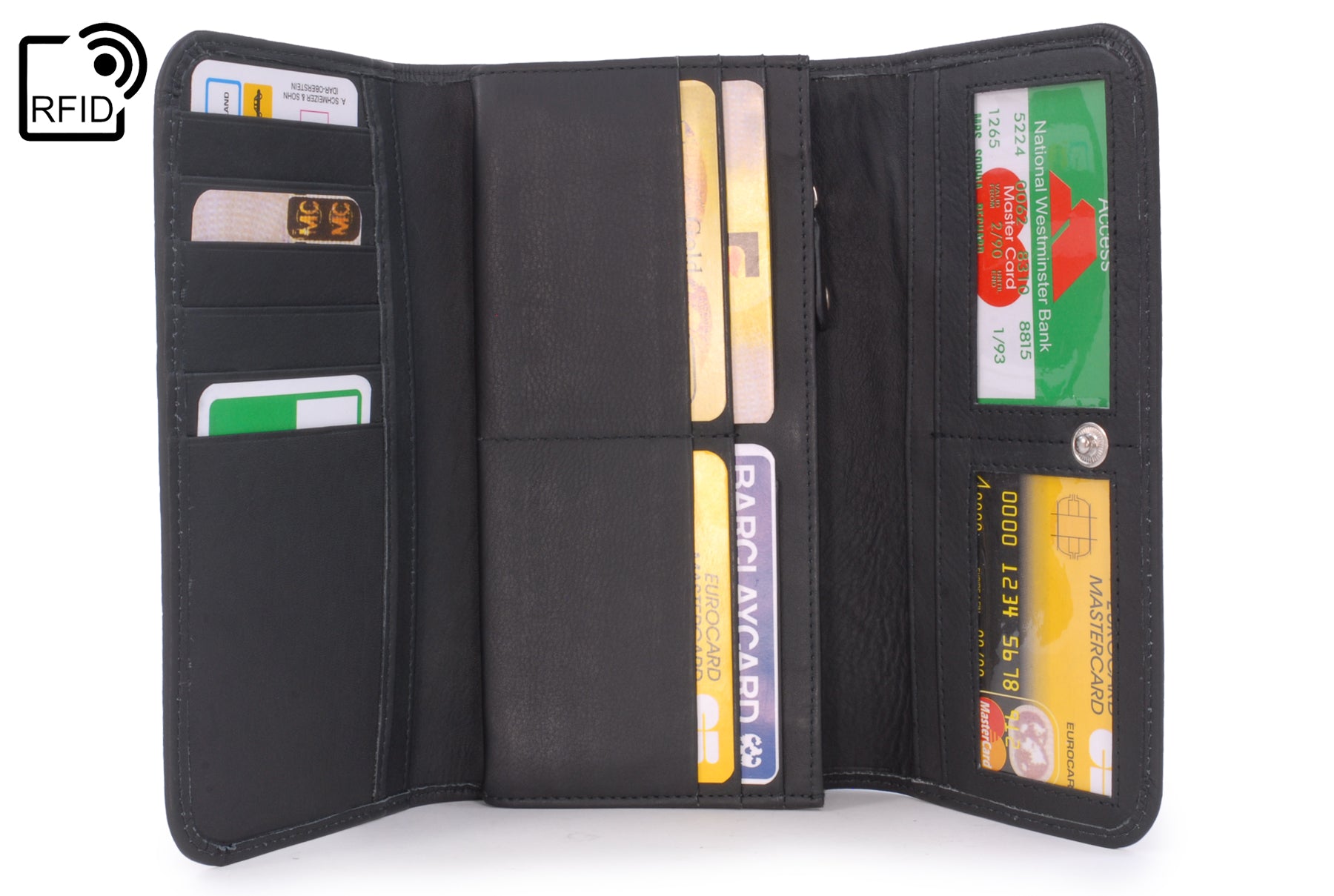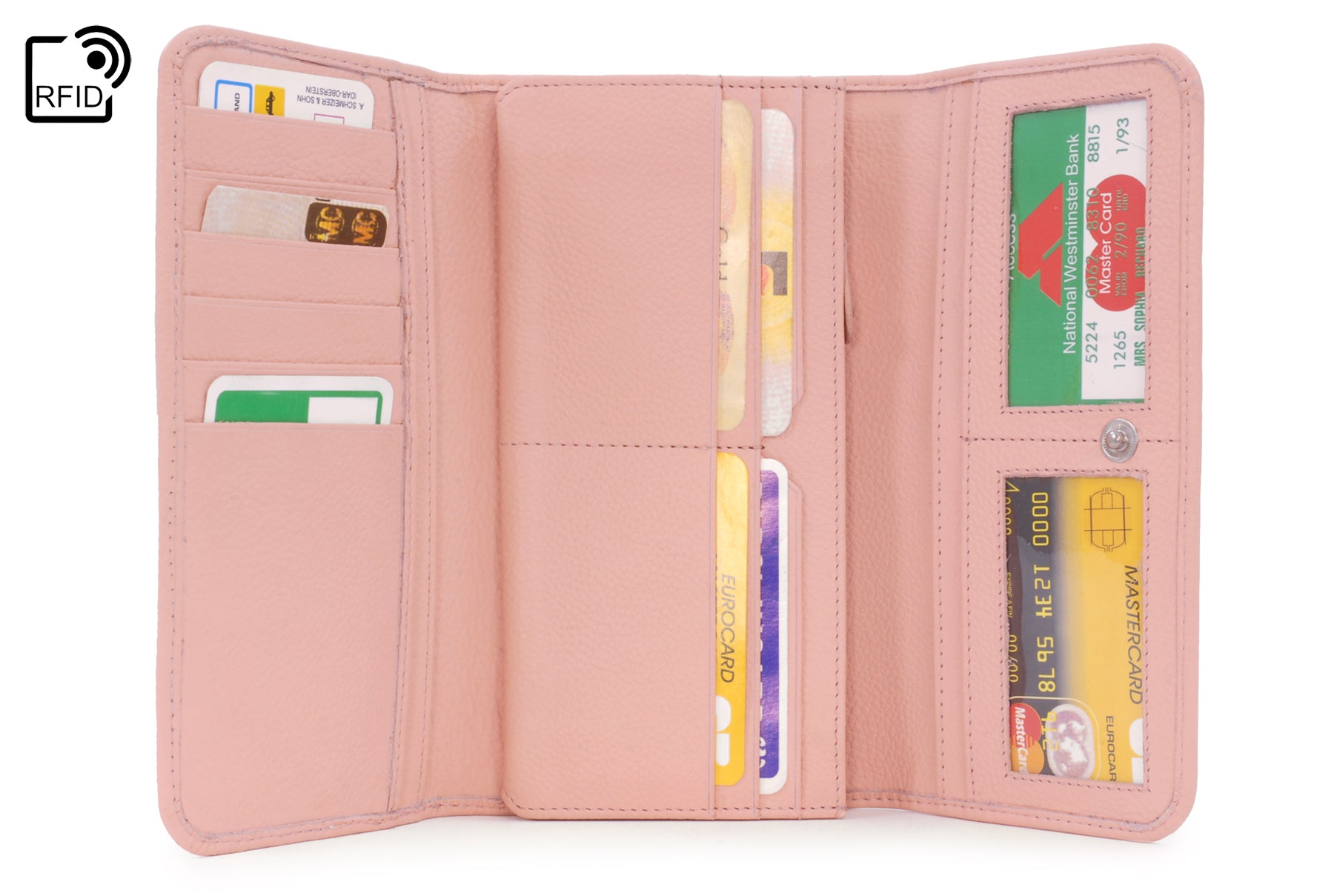 Pockets: 1 Zipped Coin Pocket + 2 Concertina Pockets + 2 Note Sections + 1 Slim Open Pocket + 12 Credit Card Holders + 2 Windows/ID Holders + 1 Outer Rear Zipped Pocket