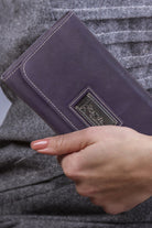 The special-effect Catwalk Collection Washed Leather is gorgeously soft, wonderfully tactile and has a slightly crinkly texture that allows the natural characteristics of each individual hide such as shade, grain, variation and markings to show through which adds to its charm and beauty. This type of leather has a supple, slouchy accent. To care for this type of leather we recommend wiping occasionally with a moist but not wet sponge and drying immediately with a clean, soft cloth. Contrast stitching highlights the purse's fine features.