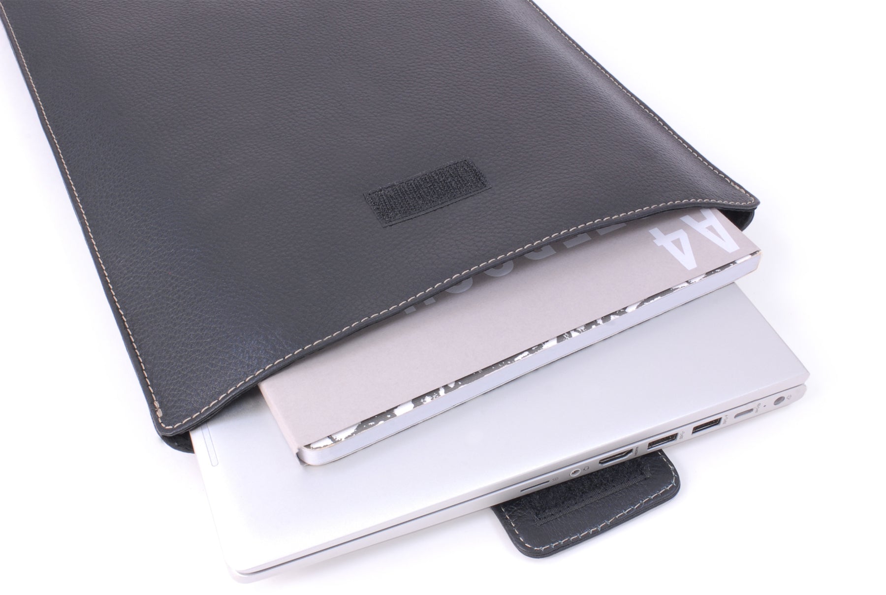 Carry your laptop safely and stylishly with this leather pouch. Our laptop sleeve is designed to accommodate a variety of devices, including tablets and laptops up to 15.6 inches. Interior Capacity: 38 x 26 x 1.8 cm