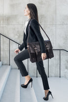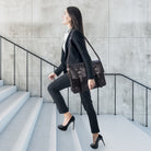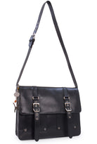 An adjustable leather strap enables the bag to be worn over-the-shoulder or hands-free across-the-body.