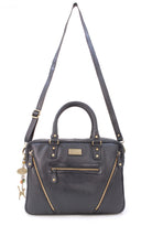 Handles are elegantly rolled for a comfortable grip in the hand. An adjustable, detachable leather strap enables the bag to be worn over-the-shoulder or hands-free across-the-body.