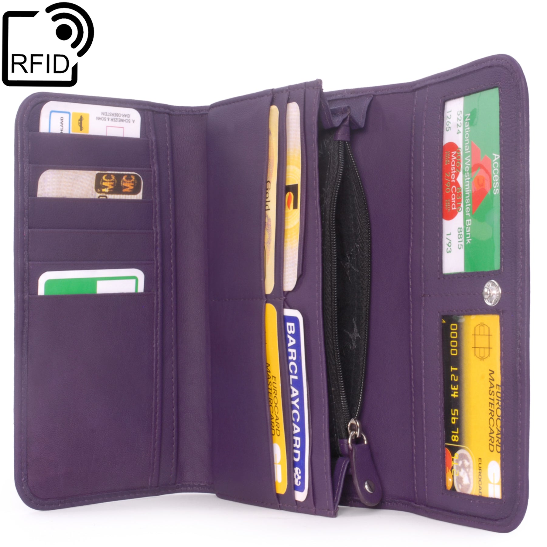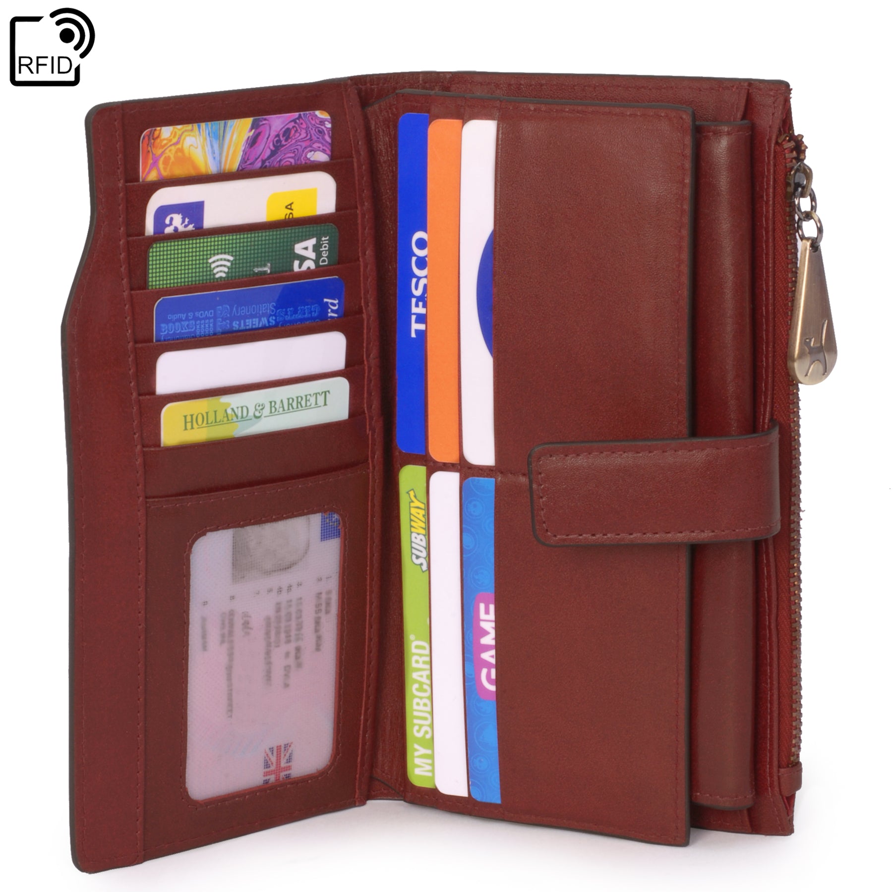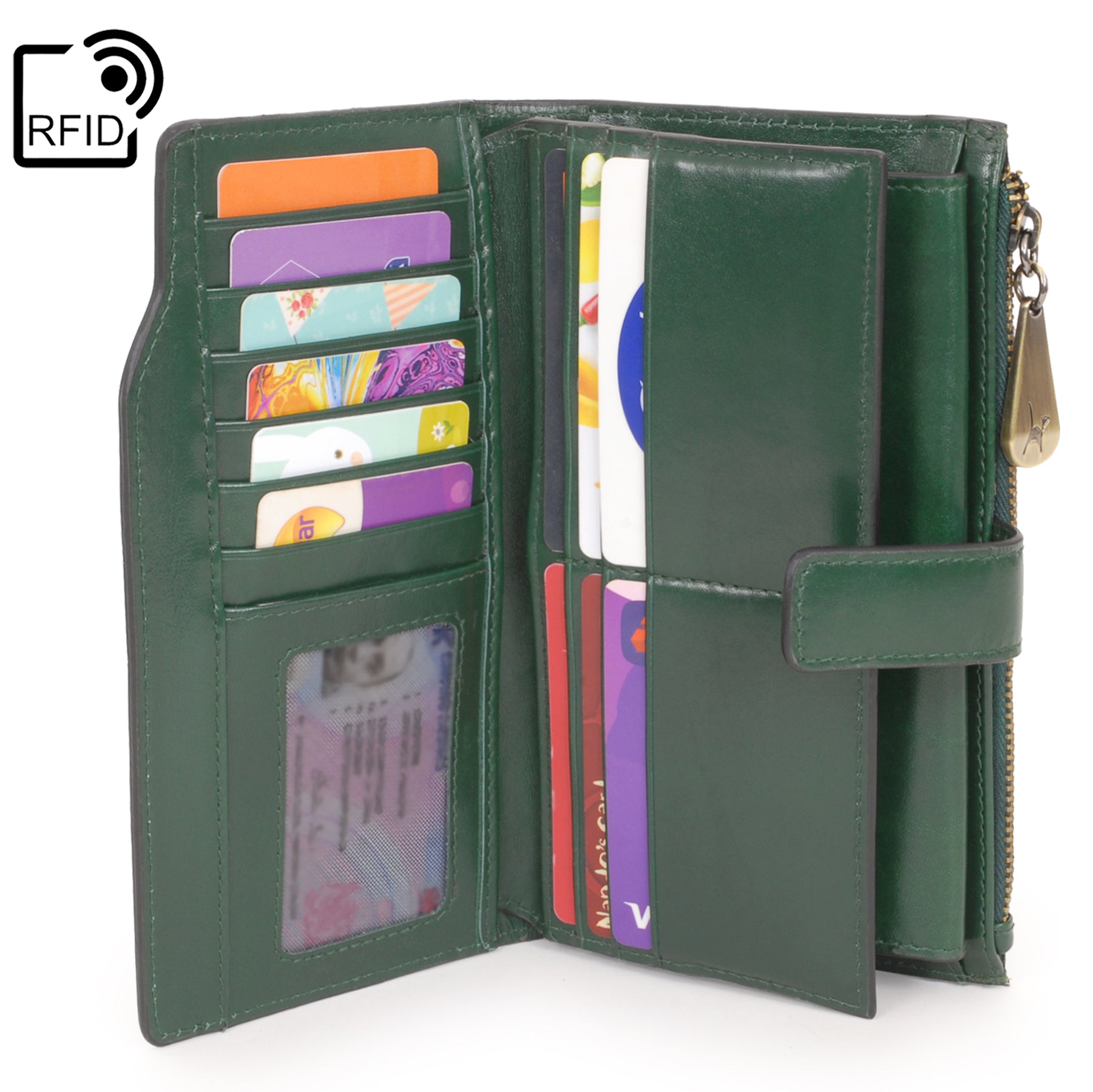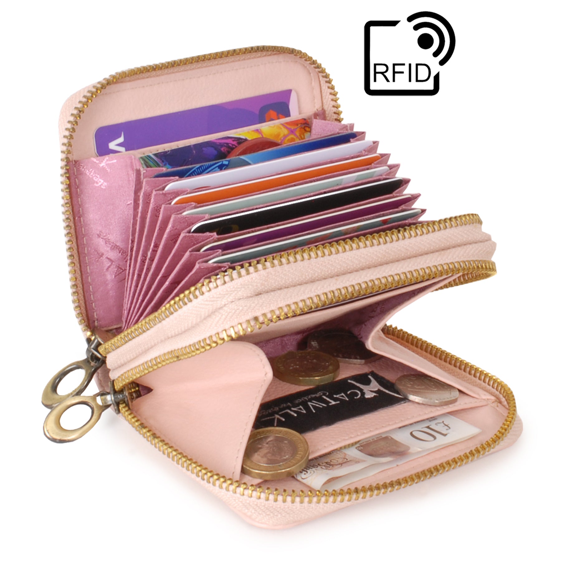 Keep your money safe in our stylish collection of women's purses. All of our purses and wallets feature RFID protection as standard. Choose from colourful coin pouches, zip round purses, to large organiser purses with a phone pocket.